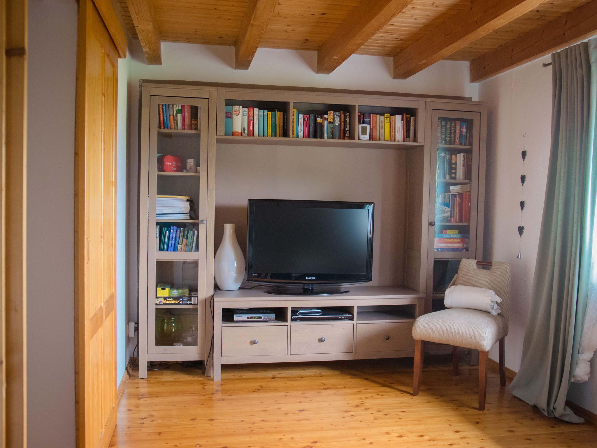 Im Wohnraum gibt es eine Bibliothek und ausreichend Indoor-Kinderspielzeug.