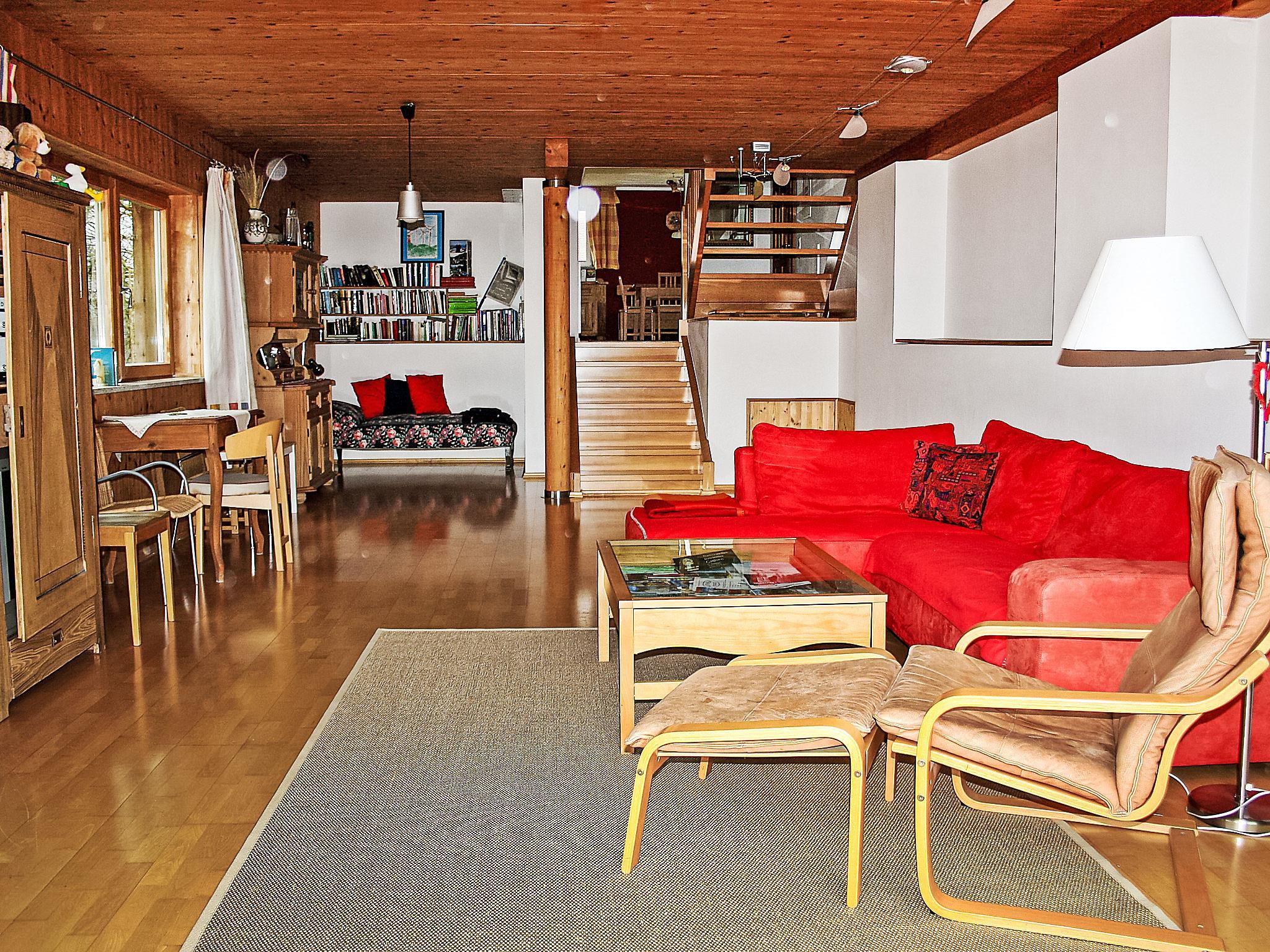 "Große Winten", 5-room semi-detached house 160 m2 on 2 levels. Spacious and bright, partly with sloping ceilings, modern and cosy furnishings: large living room 50 m2 with library, satellite TV and radio. Exit to the terrace. Kitchen-/living room (oven, dishwasher, 4 ceramic glass hob hotplates, microwave, freezer, grill, electric coffee machine) with dining nook. Shower/WC. Upper floor: 1 room with 1 french bed (160 cm). 1 double bedroom with 1 double bed and 1 folding bed. 1 room with 1 sofabed. Bath/bidet/WC, double hand-basin. Top floor: 1 room with 1 pull-out bed. Wood heating, solar energy heating. Terrace 20 m2. Terrace furniture, deck chairs. Beautiful view of the countryside and the forest. Facilities: Internet (WiFi). Please note: non-smokers only. Private entrance. Bookings by companies for employees on request!