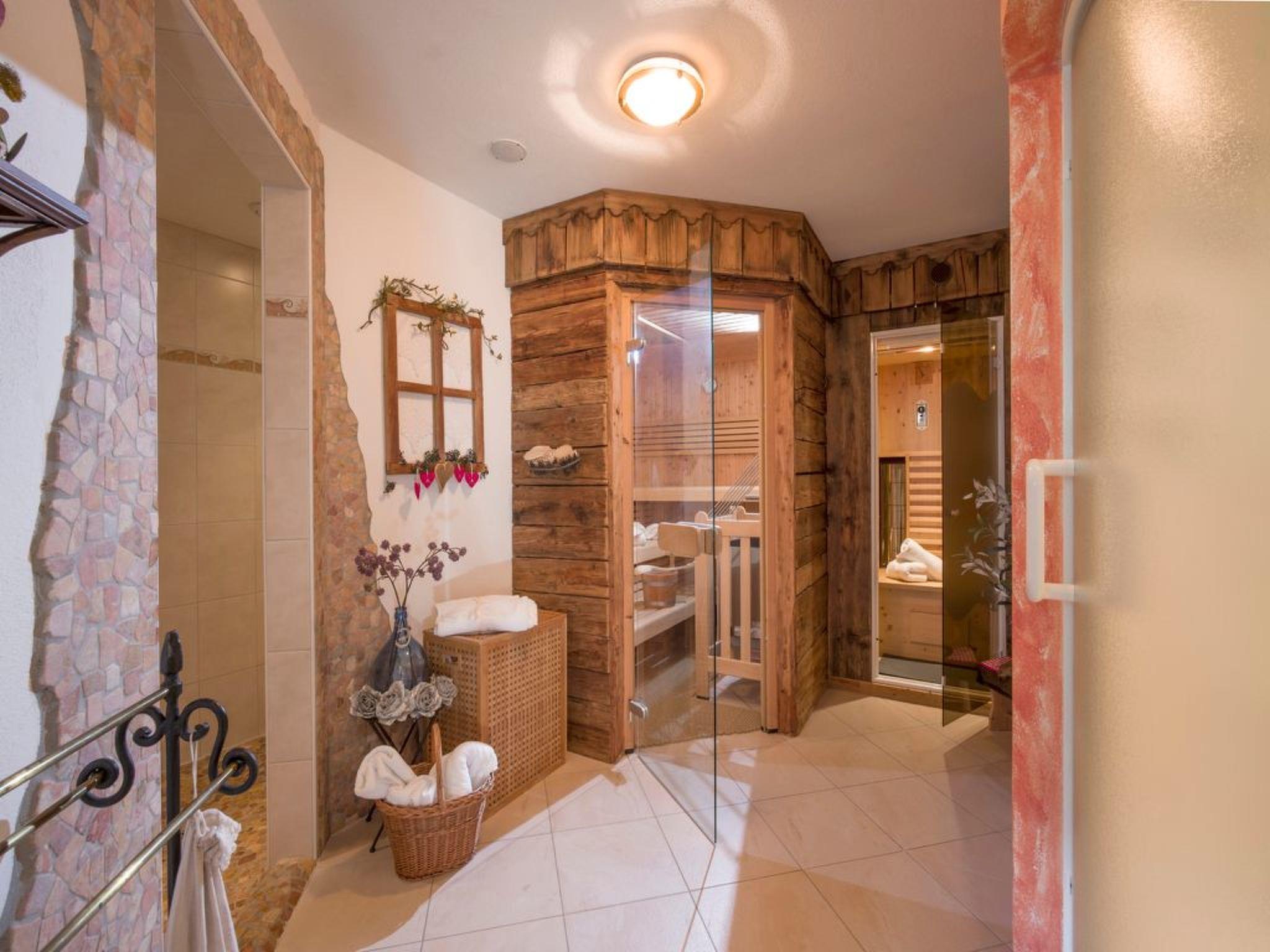 wellness area with sauna, steam bath, infrared cabin and cosy relaxation room, bathrobes and towels,