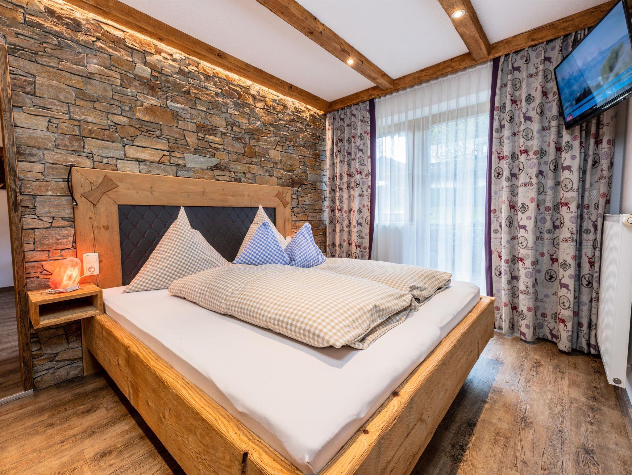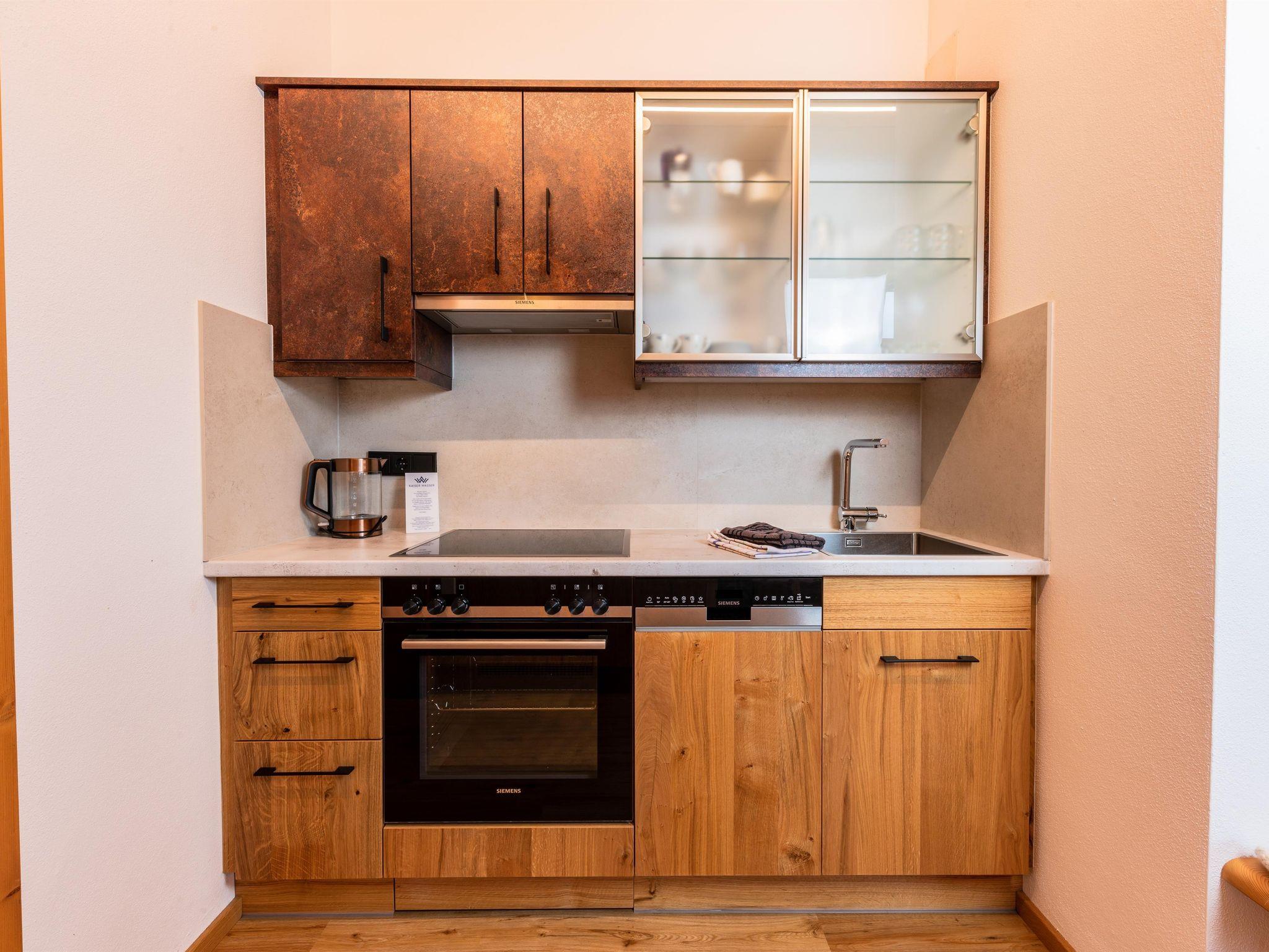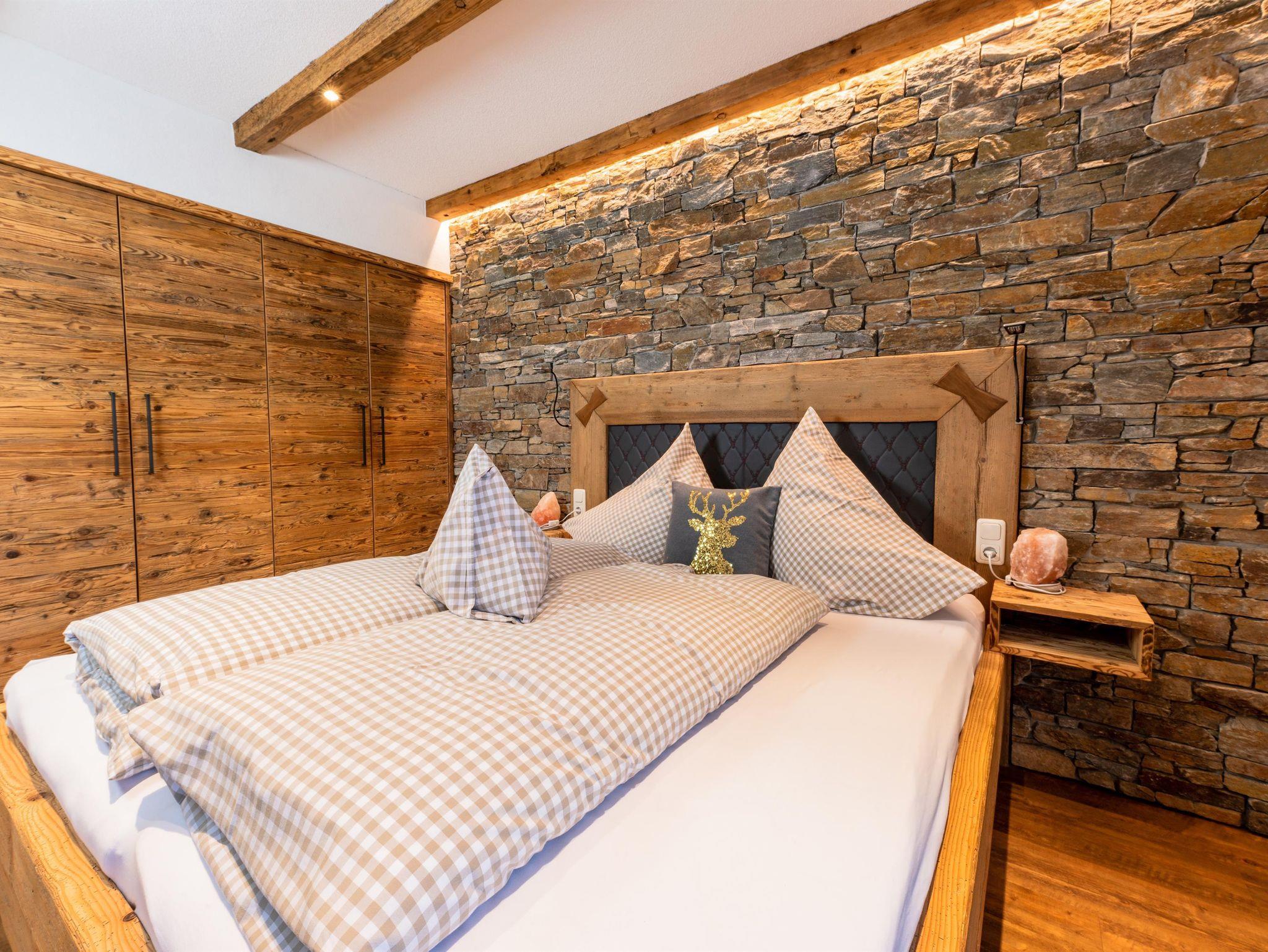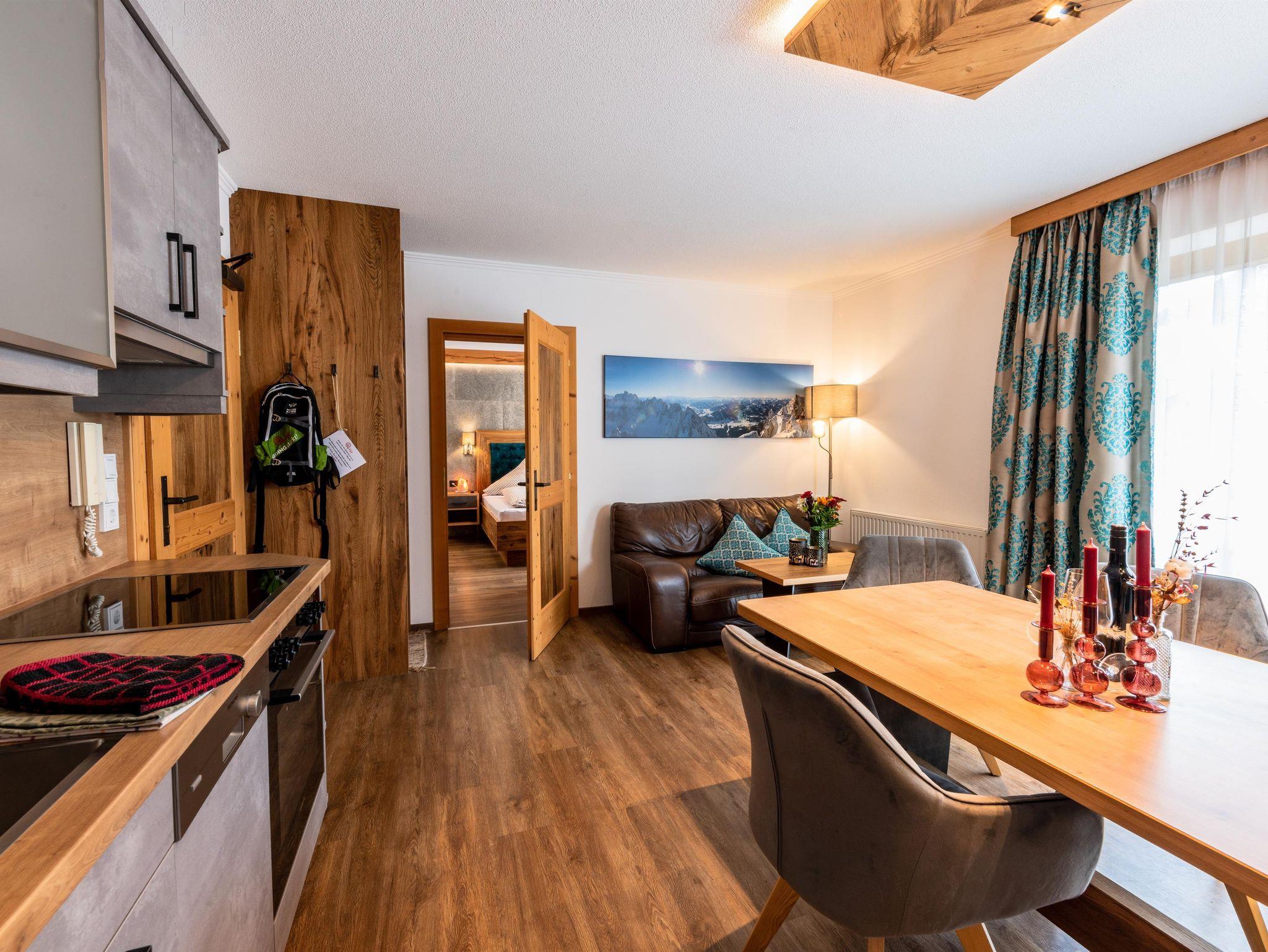 Das im Alpinen Lifestyle ausgestatteten Apartment befindet sich im 1. Stock und ist für Allergiker geeignet. Komfortable, von Tischlerhand auf Maß angefertigte Möblierung. Im Altholz-Schlafzimmer befinden sich ein Einbauschrank sowie ein Badezimmer mit Dusche. Die komplett ausgestattete, offene Küche ist in den Wohn-Essbereich integriert. Der möblierte Balkon ist nach Osten ausgerichtet und bietet einen atemberaubenden Blick au die umliegende Bergwelt.