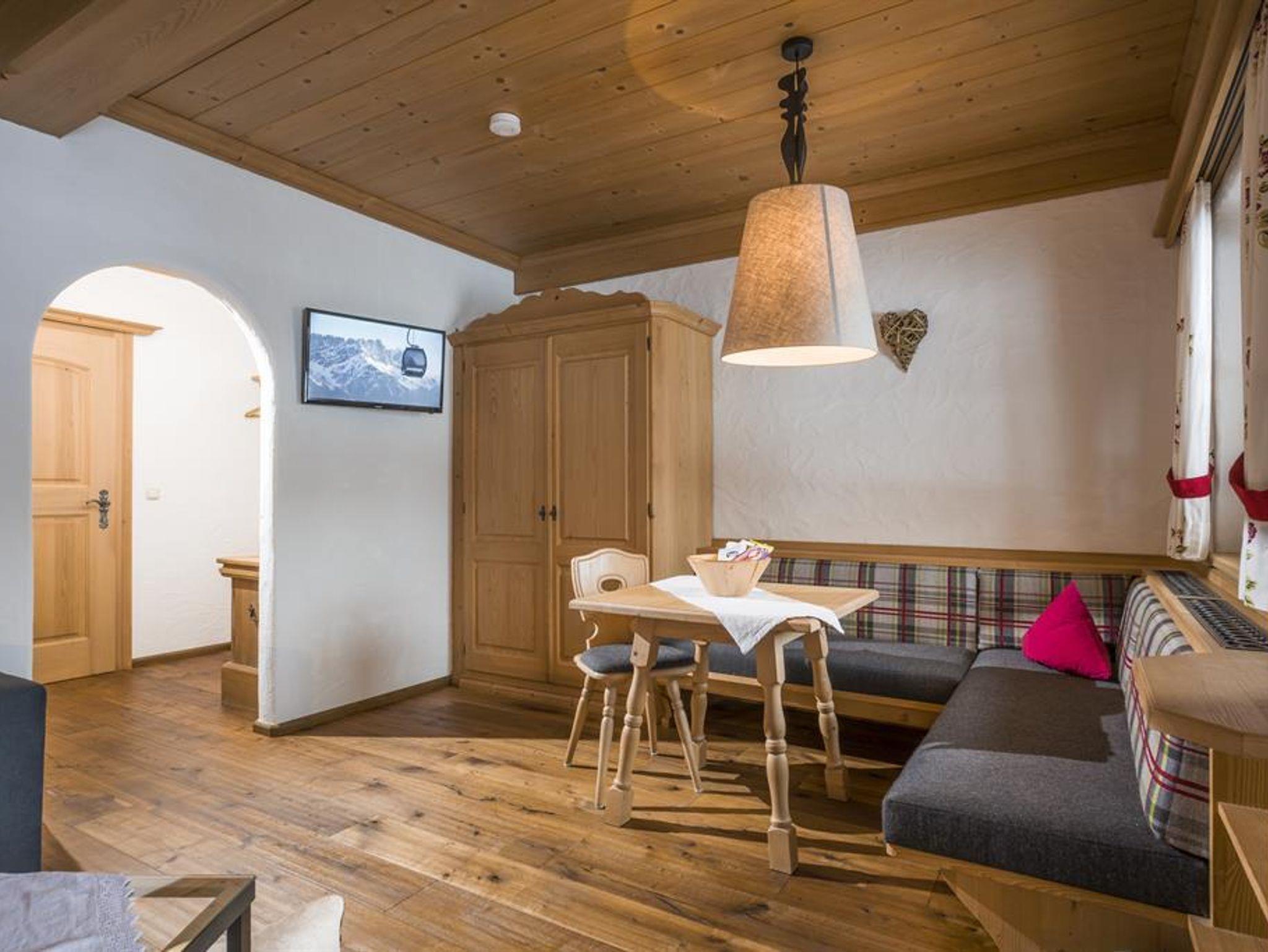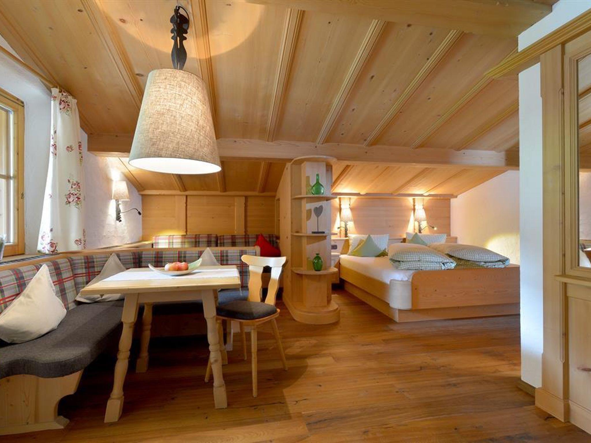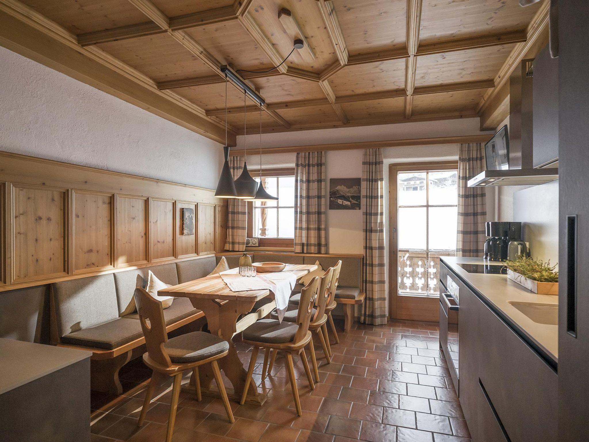 Genießen Sie den Panoramablick und machen Sie es sich gemütlich! Die Wohnung im Koasa Chalet ist mit hochwertigen Holzmöbeln nach Maß und Dielenböden in allen Wohnräumen ausgestattet .
