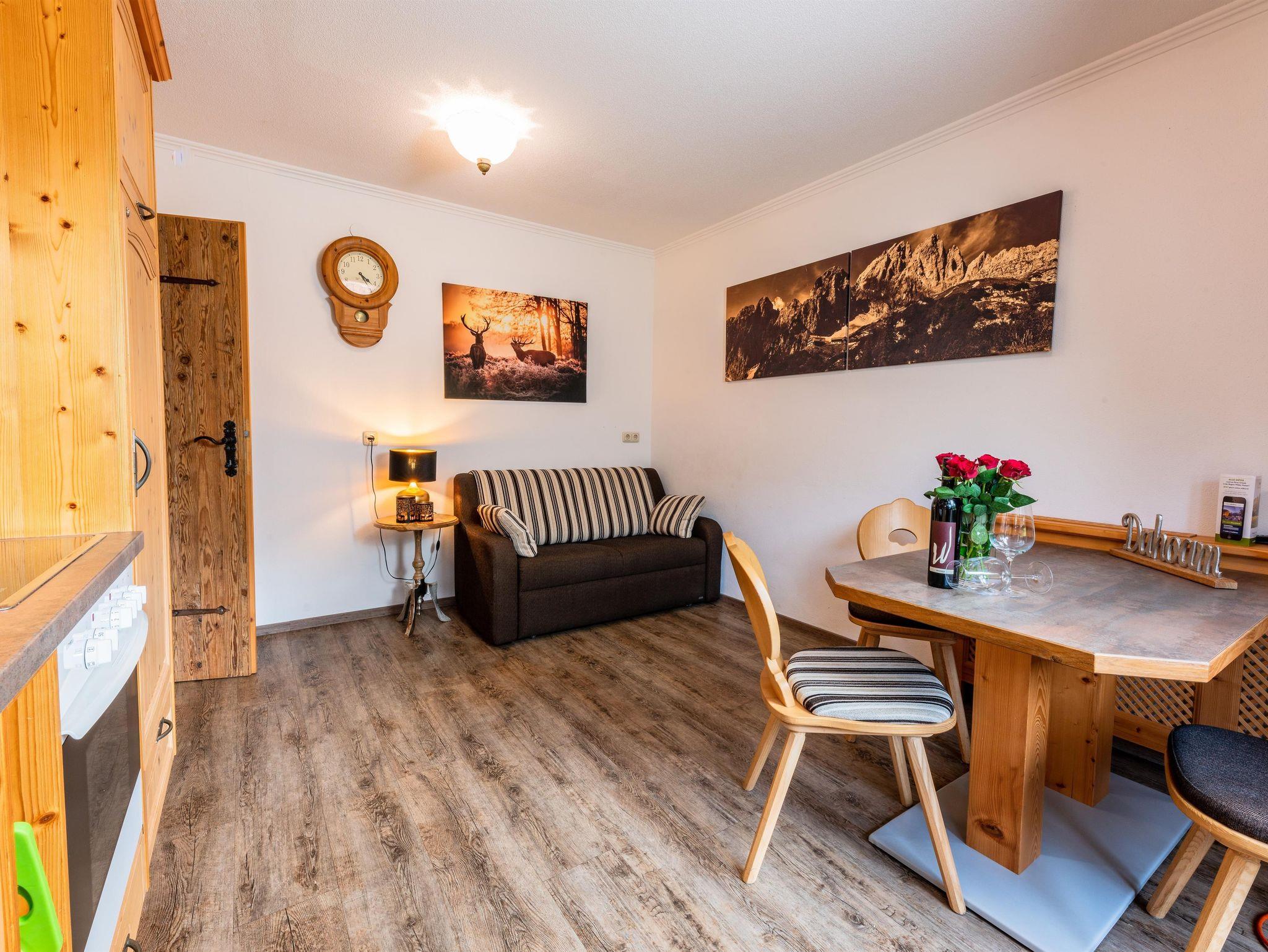Das Appartement befindet sich im Erdgeschoß und hat ca. 45 m2. Belegung von 2 - 4 Personen, 1 Schlafzimmer und ein Wohnschlafraum, außerdem verfügt das Apartment über eine Terrasse mit Blick Richtung Dorfplatz und auf den Wilden Kaiser. Unser Apartment ist ausgestattet mit einer großen komplett eingerichteten Wohnküche und einer gemütlichen, ausziehbaren Schlafcouch.