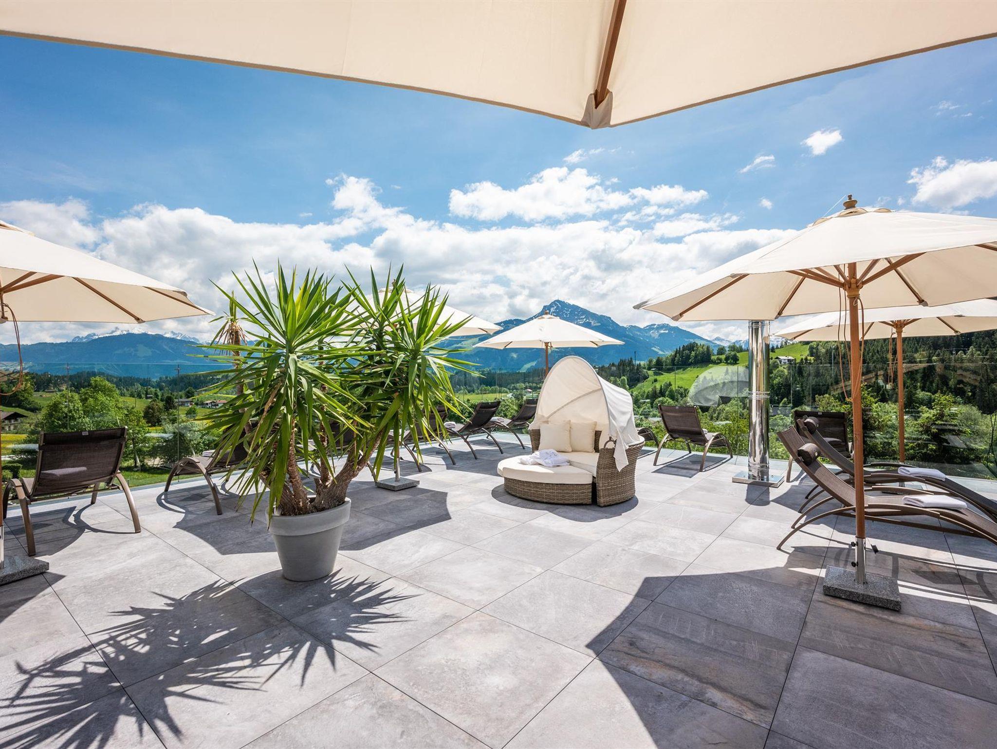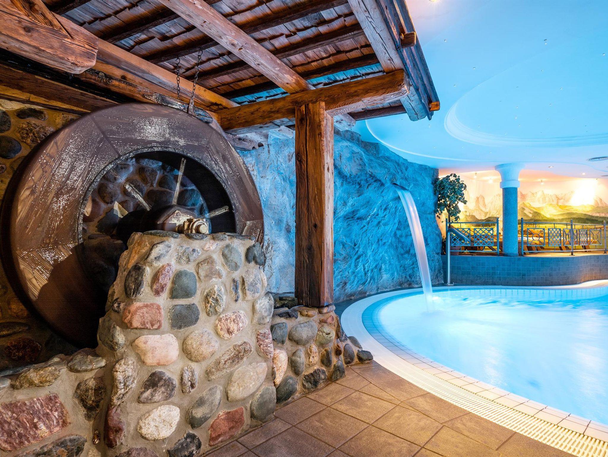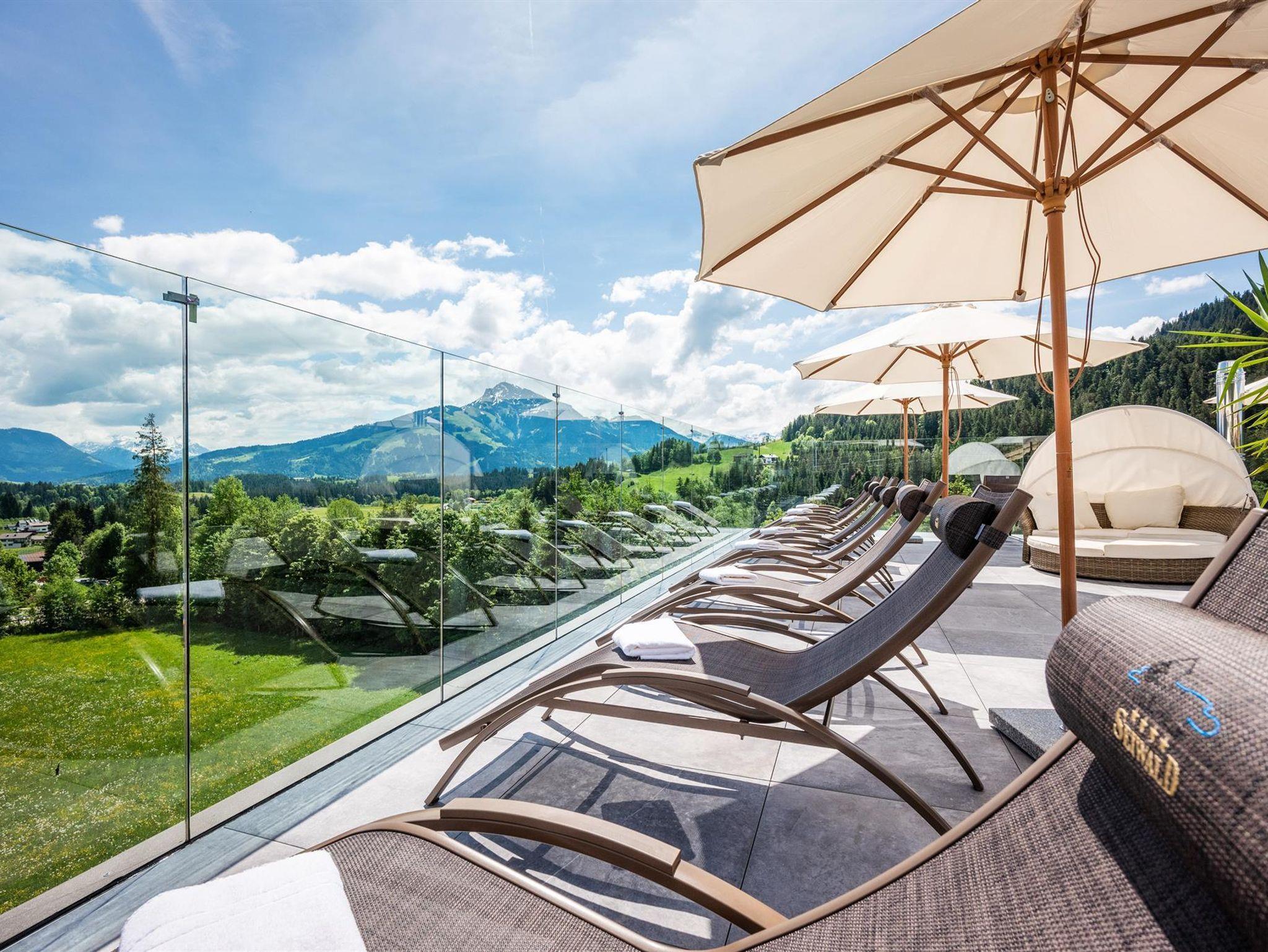 Herzlich willkommen im Familien-Wellnessresort Seiwald! Die Hotelanlage liegt sonnig und ruhig, in bester Lage von Going, 200m oberhalb vom Hotel Stanglwirt im Ortsteil Prama. In unserem familiär geführten Hotel, dem Kaiserschlöss'l und dem gegenüberliegendem Chalethotel können mehr als 100 Gäste unvergessliche Urlaubstage erleben. 10 Gehminuten ins Ortszentrum. Der kostenlose Skibus hält direkt am Hotel. Der berühmte Goinger Badesee, eine Reithalle, der Eislaufplatz und die Langlaufloipen sind vom Hotel in nur 5 Gehminuten erreichbar. Bei Schönwetter lädt der beheizte Außenpool zum Verweilen ein. Sollte Petrus mal streiken können Sie unser großes Erlebnis-Hallenbad genießen. Auf über 2.000 m² Wellnessbereich erwarten sie das Hallenbad mit Whirlpool, Sprudelbank und Luftsprudel, umgeben von einem sagenhaftem Bergbauerndorf mit Mühlrad mit Blick auf Going. Weiters ein großes Saunadorf mit türkischem Dampfbad, Sauna-Schwitzstube, Tepidarium, Solegrotte, Kneippstrasse in den Ötzikäteraum im Felsen, Infrarot-Wärmekabine sowie eine Schönheitsfarm mit Massage und Kosmetik.