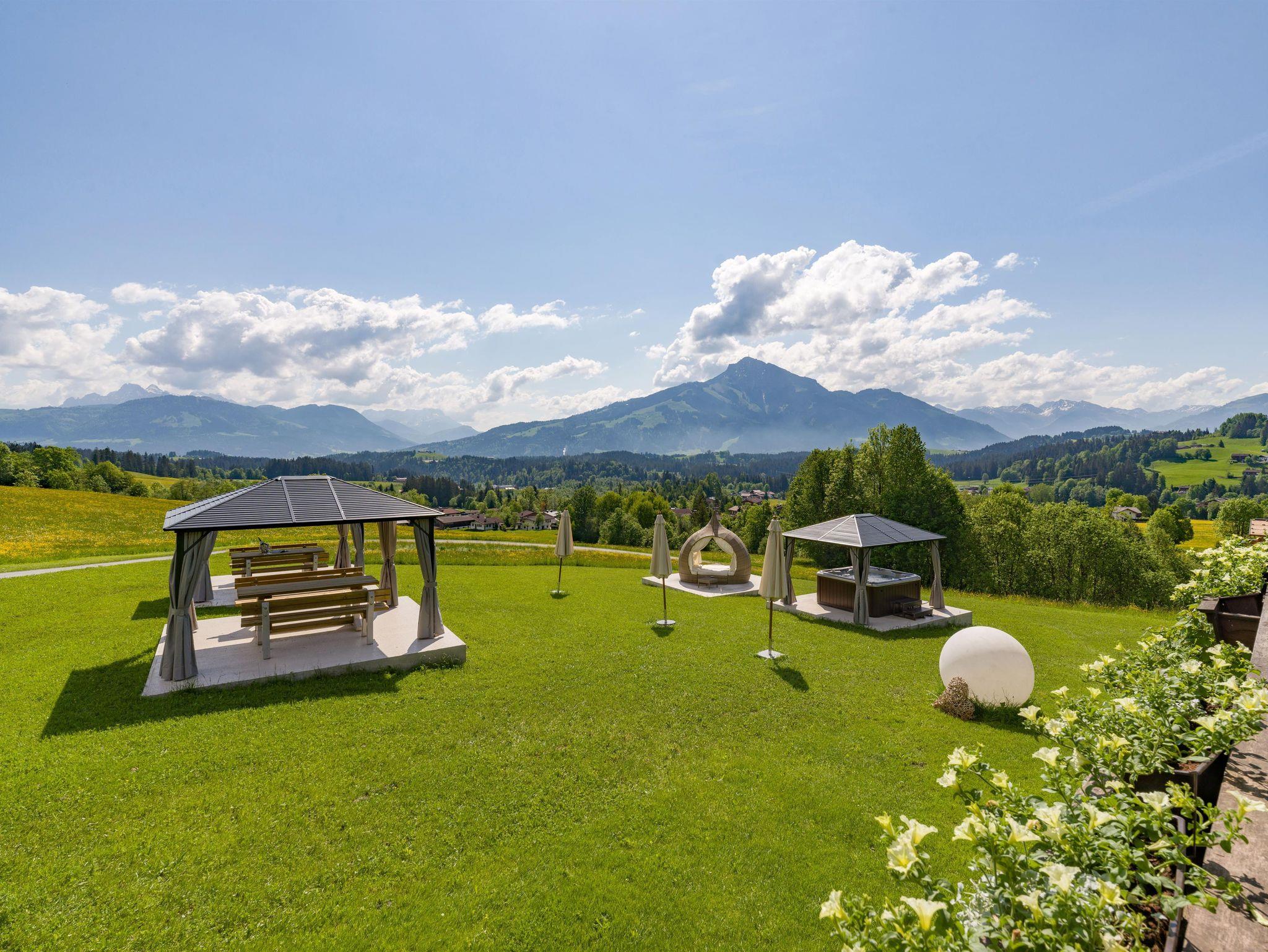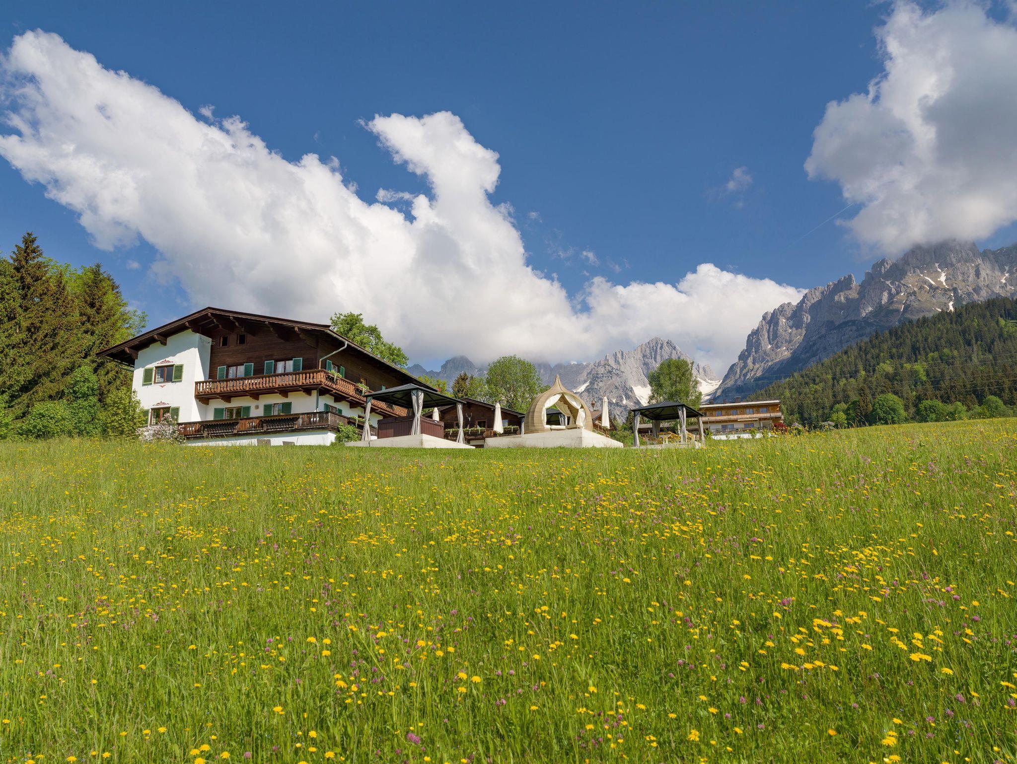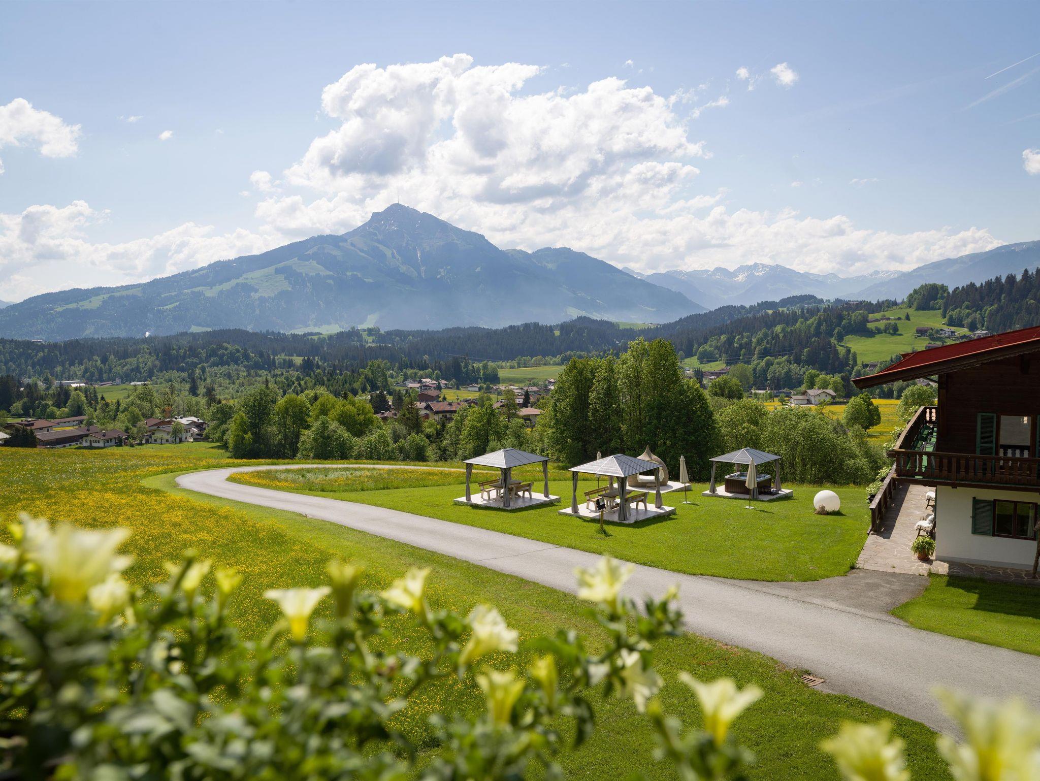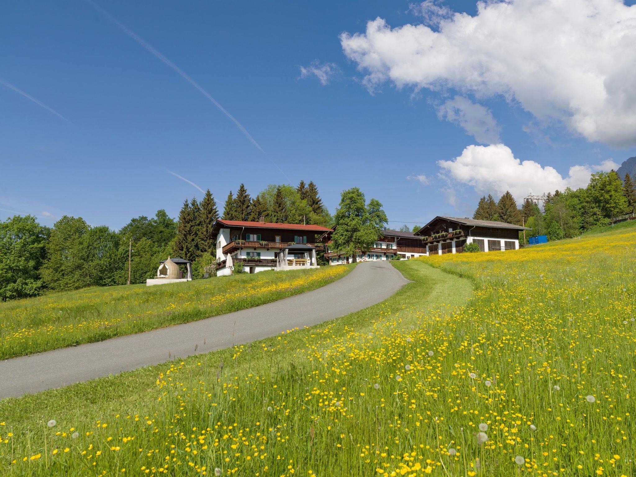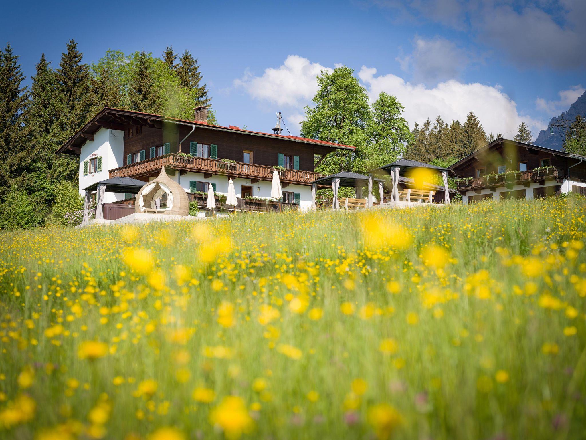 Das Appartement Weitblick thront in idyllischer Alleinlage auf einem Sonnenplateau oberhalb des Goinger Badesees – ein Ort der Stille und Entspannung, an dem Sie die ungestörte Ruhe der Bergwelt in vollen Zügen genießen können. Umgeben von majestätischen Gipfeln erwartet Sie ein Panorama, das im Norden vom Wilden Kaiser, im Süden vom Kitzbüheler Horn und im Osten von den Steinbergen eingerahmt wird – ein traumhafter Rückzugsort, der die Natur in ihrer reinsten Form erlebbar macht.