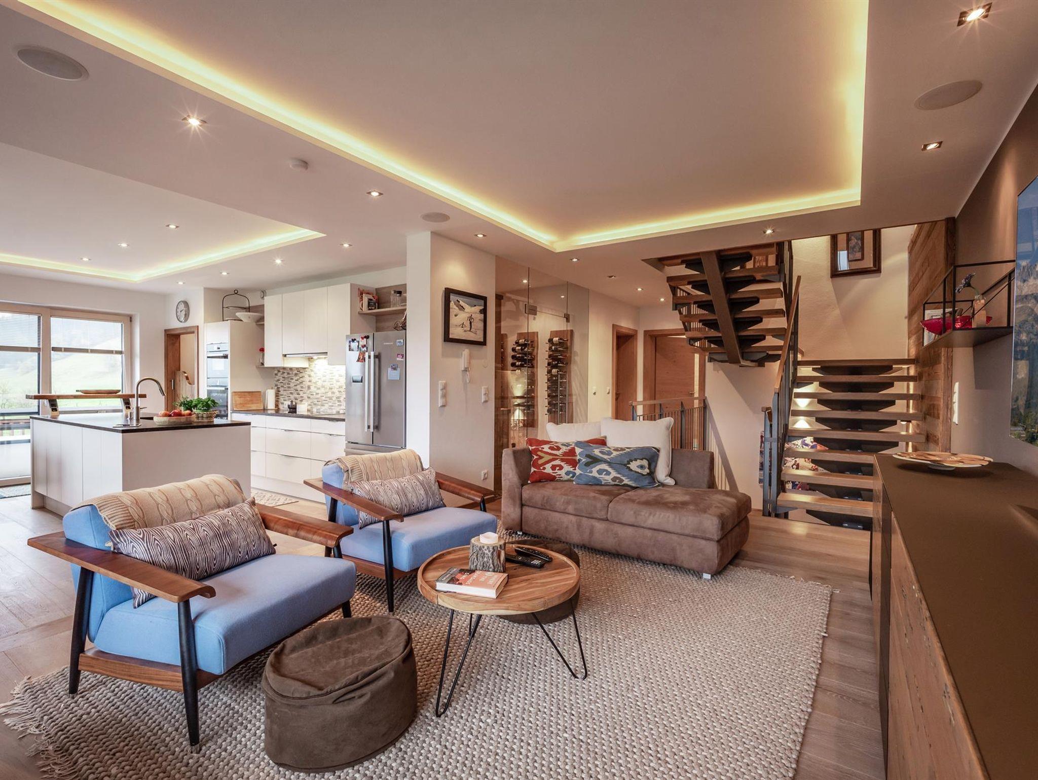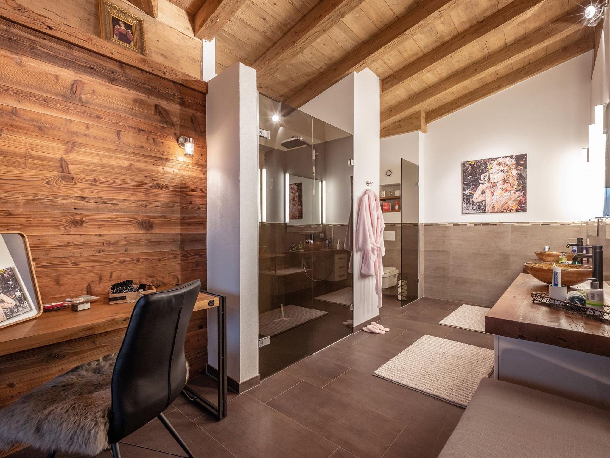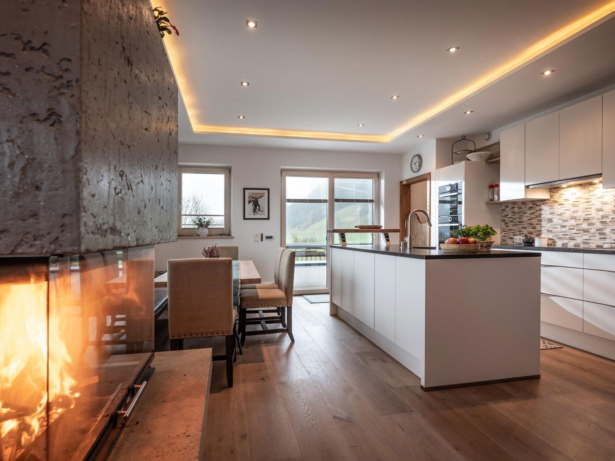 Wir bieten Ihnen ein gemütliches Haus in Toplage mit 3 Schlafzimmer, 3 Badezimmer, offener Wohnraum mit Kamin, Gourmetküche und modernen E-Geräten, LED Fernseher im Wohnzimmer und im Master Schlafzimmer, Altholzverkleidung in Schlafzimmern und im schwebenden Stiegenhaus, grosser Balkon und Terrasse, Fussbodenheizung, massiv Eiche Landhausdielen Fussboden, Doppelgarage, Waschraum mit Waschmaschine und Trockner, Schidepot mit Schischuhwärmer und Wohnraumlüftung.