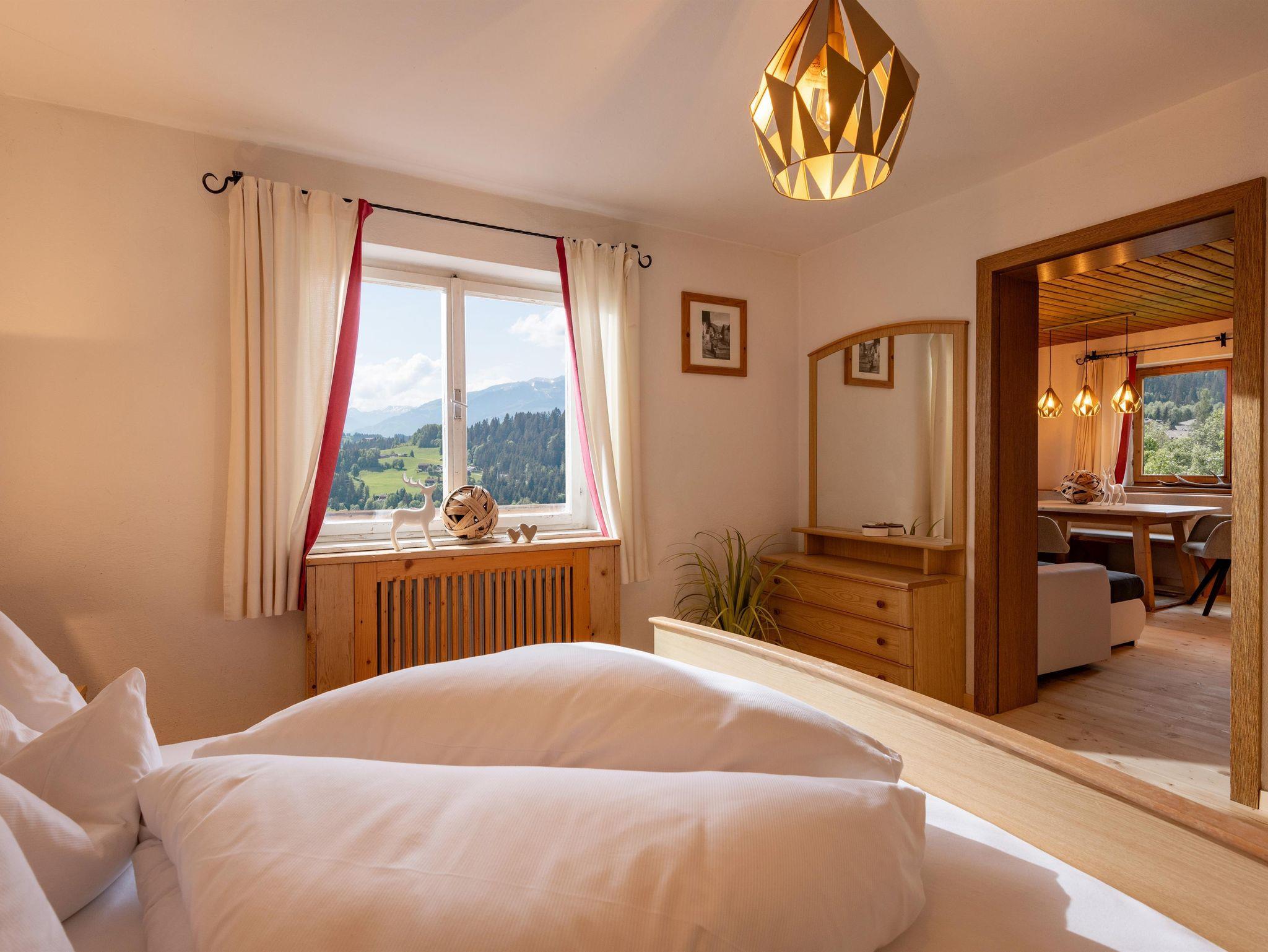 Das ca. 40 m² große Appartement verfügt über eine kleine, gut ausgestattete Küche mit einer gemütlichen Sitzecke, Flat-TV und einer ausziehbaren Schlafcouch, ein Badezimmer mit Dusche und WC sowie ein Schlafzimmer. Da diese Ferienwohnung ebenerdig ist, gelangen Sie mit nur wenigen Schritten zur Terrasse. Urig, einfach & charmant – ein altes Tiroler Haus mit Herz und Ecken. Kein Luxus, aber grandiose Aussicht & echte Persönlichkeit. Ganzjährig kostenloser Whirlpool auf der Wiese.