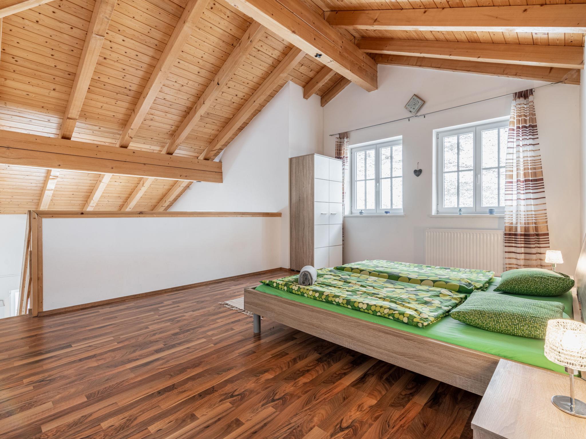 "Grün", 2-room maisonette 70 m2 on 1st floor. Spacious, wooden furniture furnishings: living/dining room with dining nook and satellite TV (flat screen). Exit to the balcony. Open kitchen (oven, dishwasher, 4 ceramic glass hob hotplates, microwave). Shower/WC. Upper floor: 1 open large room with 1 double sofabed and 2 double beds. View of the countryside. Facilities: children's high chair, baby cot for up to 3 year olds. Internet (WiFi, free). Please note: non-smokers only. Smoke alarm. 50410-000116-2020