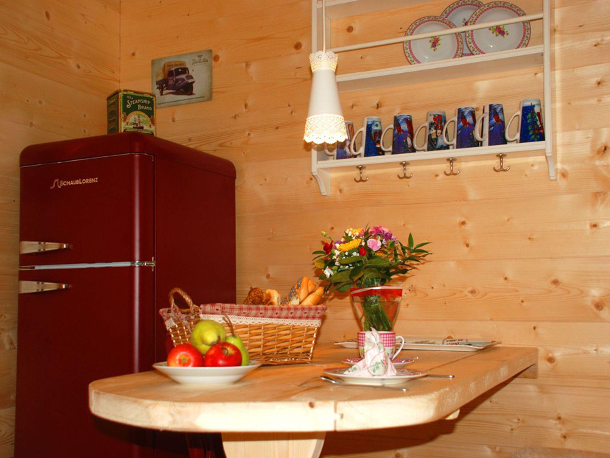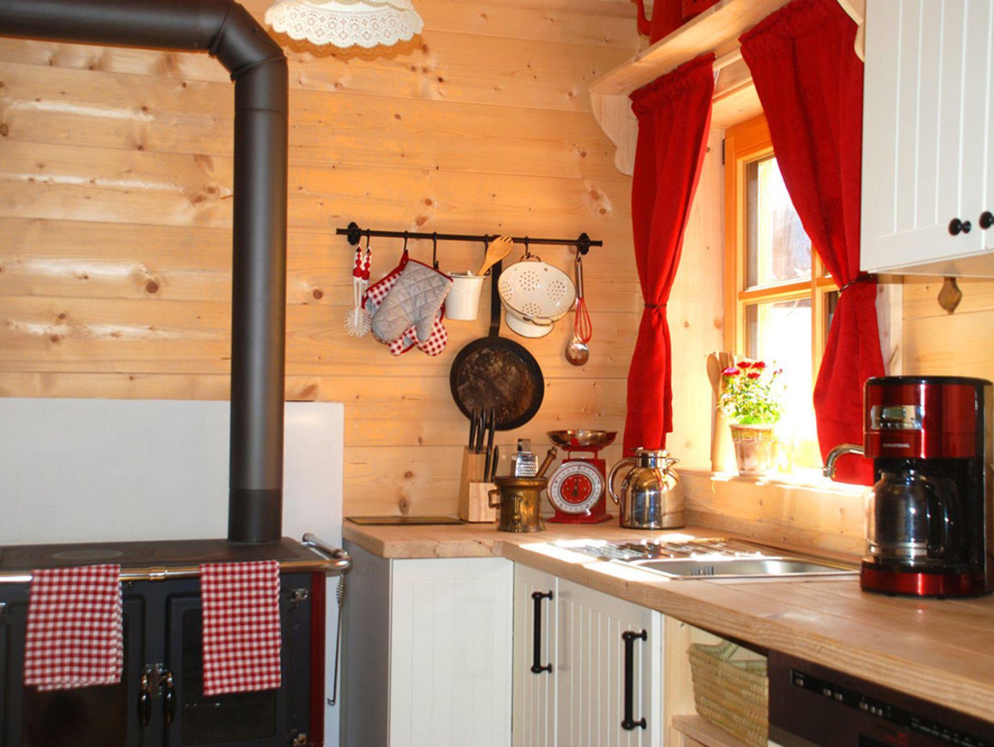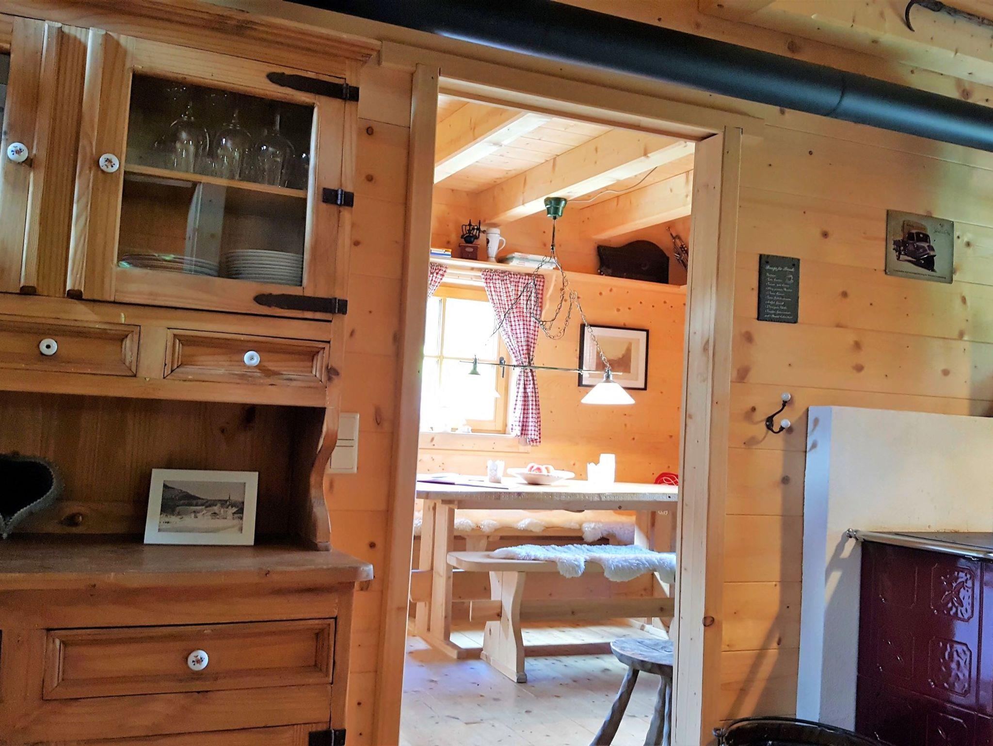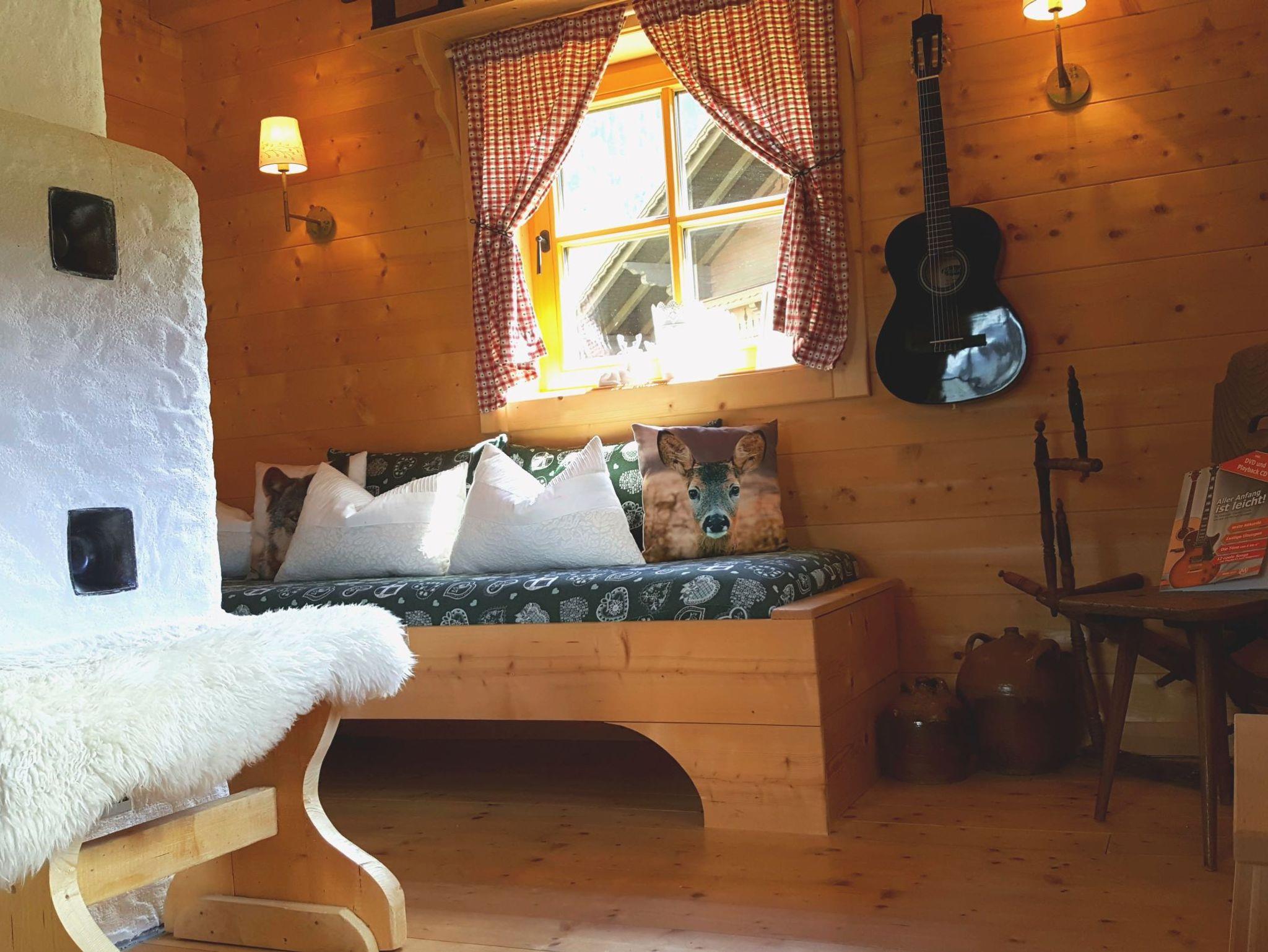 Das Ferienhaus mit traditioneller Holzofen, Holzkamin und alte Bauernmöbel vermittelt ein authentisches Alpenflair, auf moderne Küchentechnik wird trotzdem nicht verzichtet. In der Hütte befinden sich zwei komfortable Badezimmer mit Wellness- Dusche, Badewanne und Sauna, die keine Wünsche offenlassen. Drei Schlafzimmer mit je einem Doppelbett bieten genügend Raum für bis zu 6 Erwachsenen und einem Kleinkind (unter 2 Jahre im Zustellbettchen). Die Küche ist ausgestattet mit einem urigen Holzofen mit Backrohr jedoch auch ein elektrokochherd und Ofen, Kaffeemaschine, Toaster, Heißwasserkocher, Spülmaschine und einem Retrokühlschrank.