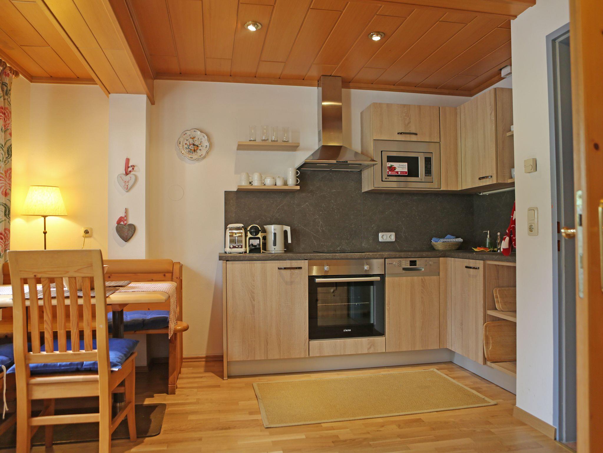 Apartment 'Buche' im Erdgeschoß des Hauses, 38 qm, für 2-3 Gäste geeignet. Ein Schlafzimmer mit Doppelbett. Wohnzimmer / Essbereich mit Bettsofa, SAT TV, Stereo-DVD Player. Küchenzeile mit Kochherd, Ofen, Kühlschrank, Mikrowellenherd, Wasserkocher, Nespresso Kaffeemaschine, Geschirrspüler, Geschirr, Besteck. Badezimmer und WC getrennt. Bademantel, Shampoo/Waschgel, Seife. Handtücher und Bettwäsche sind vorhanden.