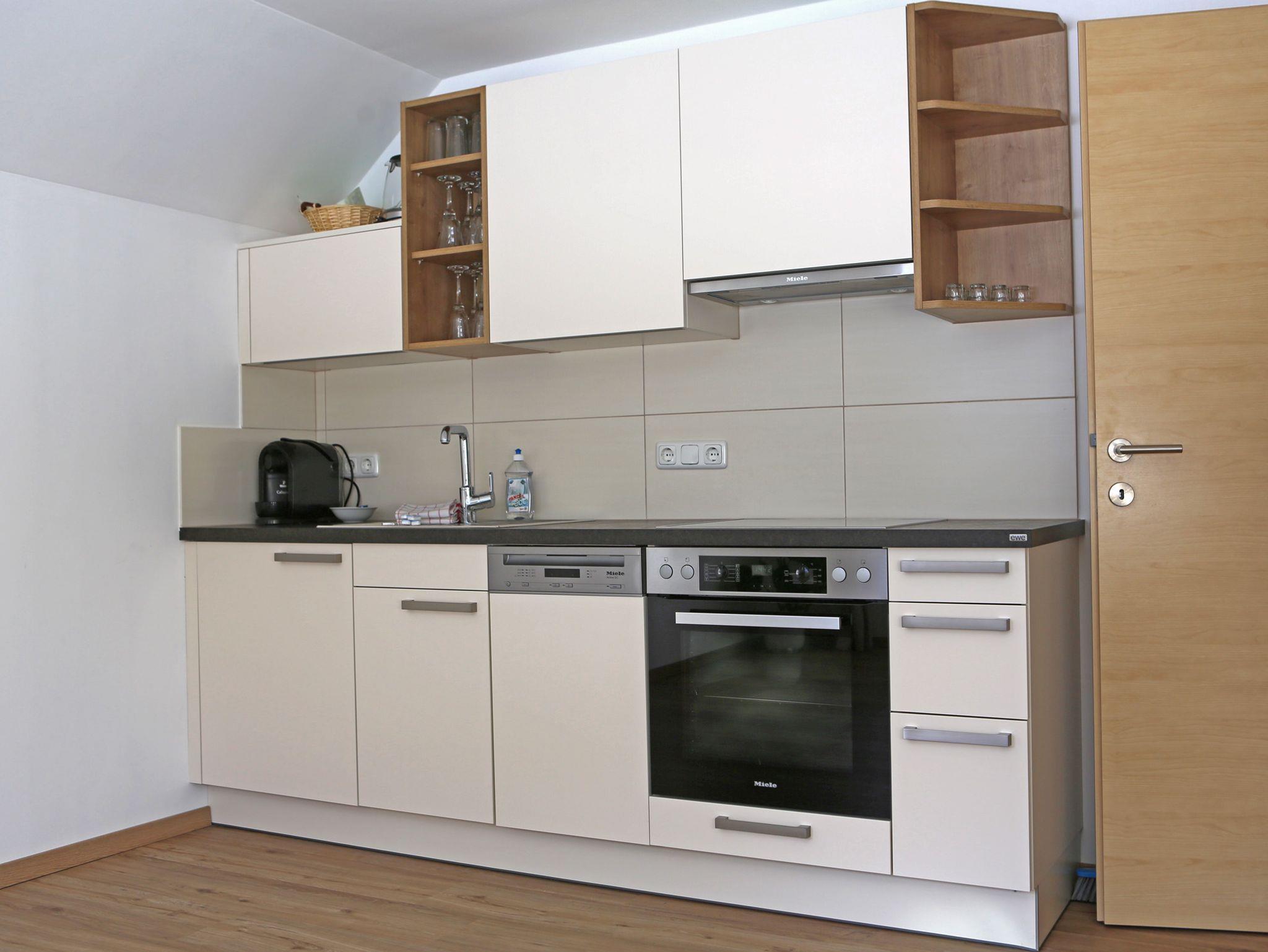 Im Wohnbereich finden sie eine Sitzcouch mit Schlafmöglichkeit und einer Küchenzeile (Kühlschrank, Geschirrspüler, Backrohr, Ceran-Kochfeld, Wasserkocher, Tschibo Cafisimo Kaffeemaschine) vor.