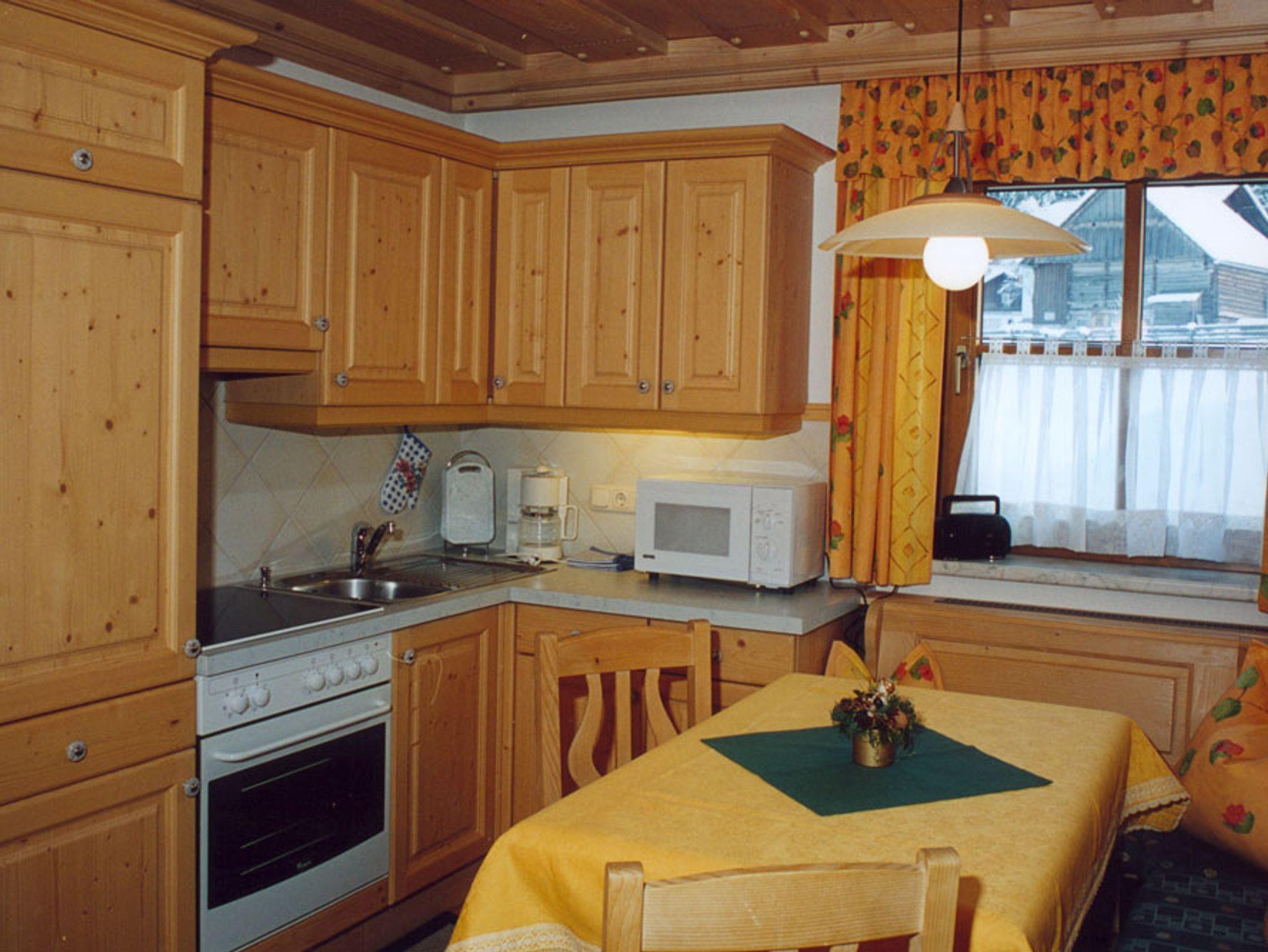 Die helle, freundliche Gestaltung unserer Appartements vermittelt Ihnen ein behagliches Wohngefühl. Vom Balkon aus haben Sie den einzigartigen Ausblick auf den wunderschönen Gosaukamm, wo Sie die letzten Sonnenstrahlen eines erlebnisreichen Tages genießen können. Die Küchen der Wohnungen sind mit Mikrowelle, Cerankochfeld, Kühlschrank mit Gefrierfach, Wasserkocher, Toaster, Bügeleisen, Bügelauflage, Handstaubsauger, Küchenwaage, Mixer und großteils mit Geschirrspüler ausgestattet. Bettwäsche, Handtücher und Geschirrtücher sind ausreichend vorhanden und müssen nicht vom Gast mitgebracht werden. Kinderbett und Hochstuhl werden bei Bedarf gerne bereitgestellt.