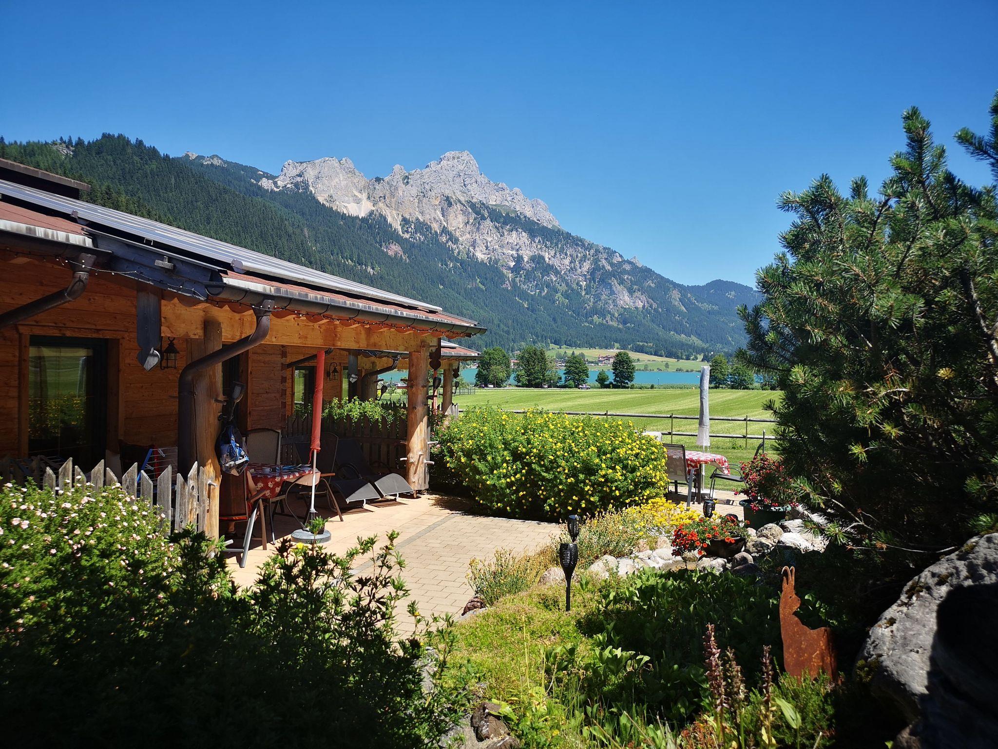 Unser wunderschönes Wellness-Chalet befindet sich direkt im Almdorf Tirol und bietet den vielleicht schönsten Blick auf den Haldensee.