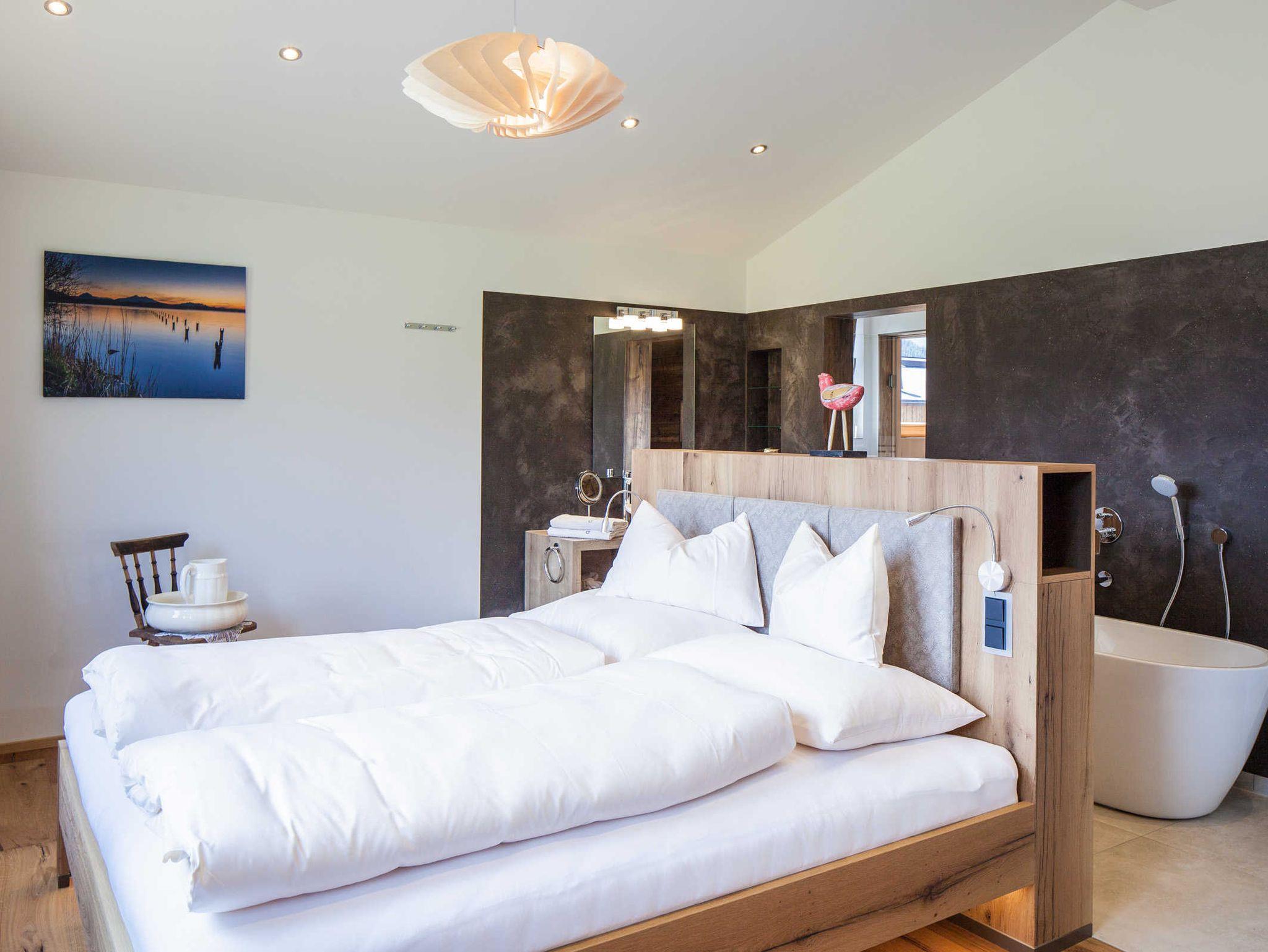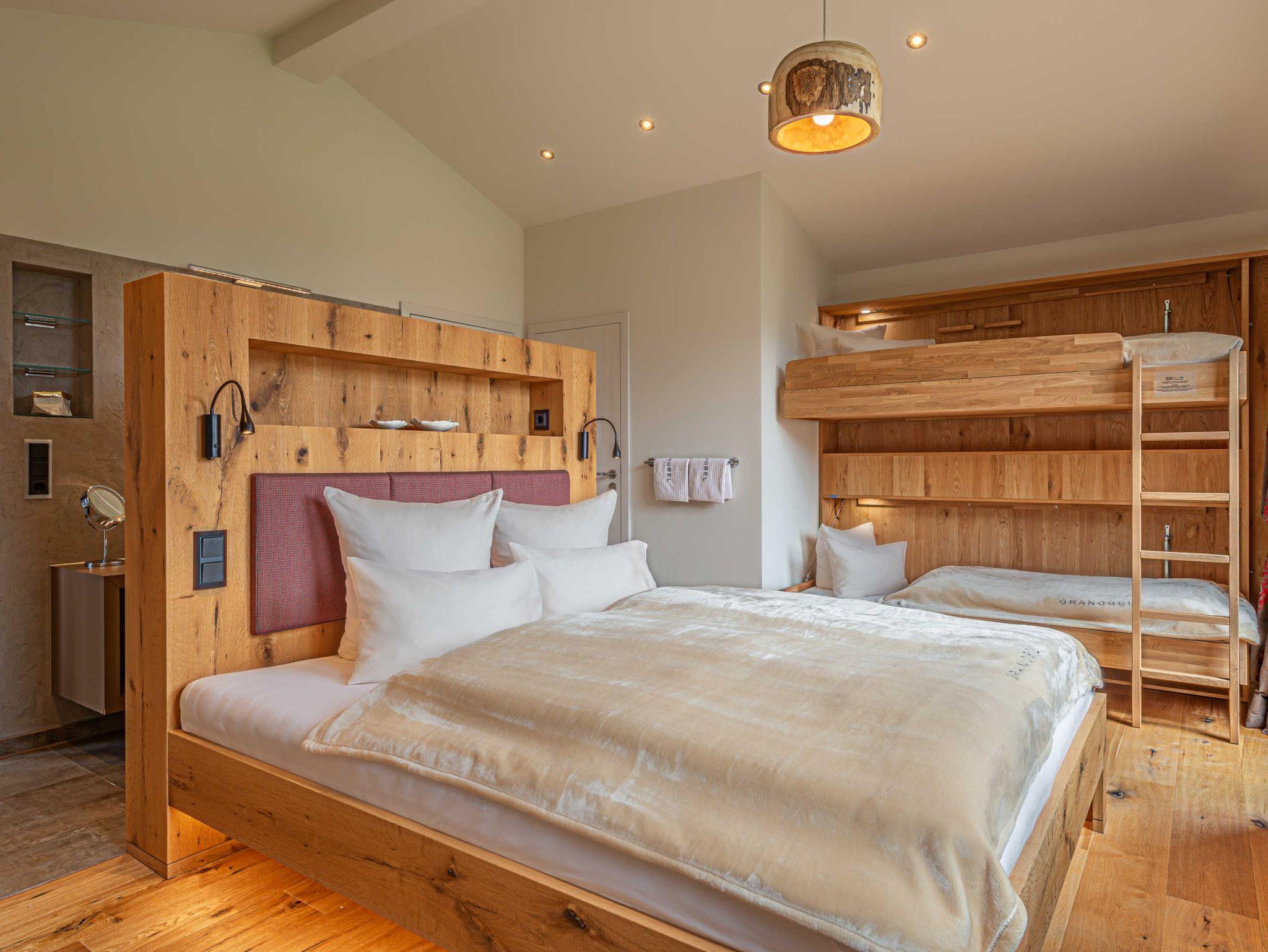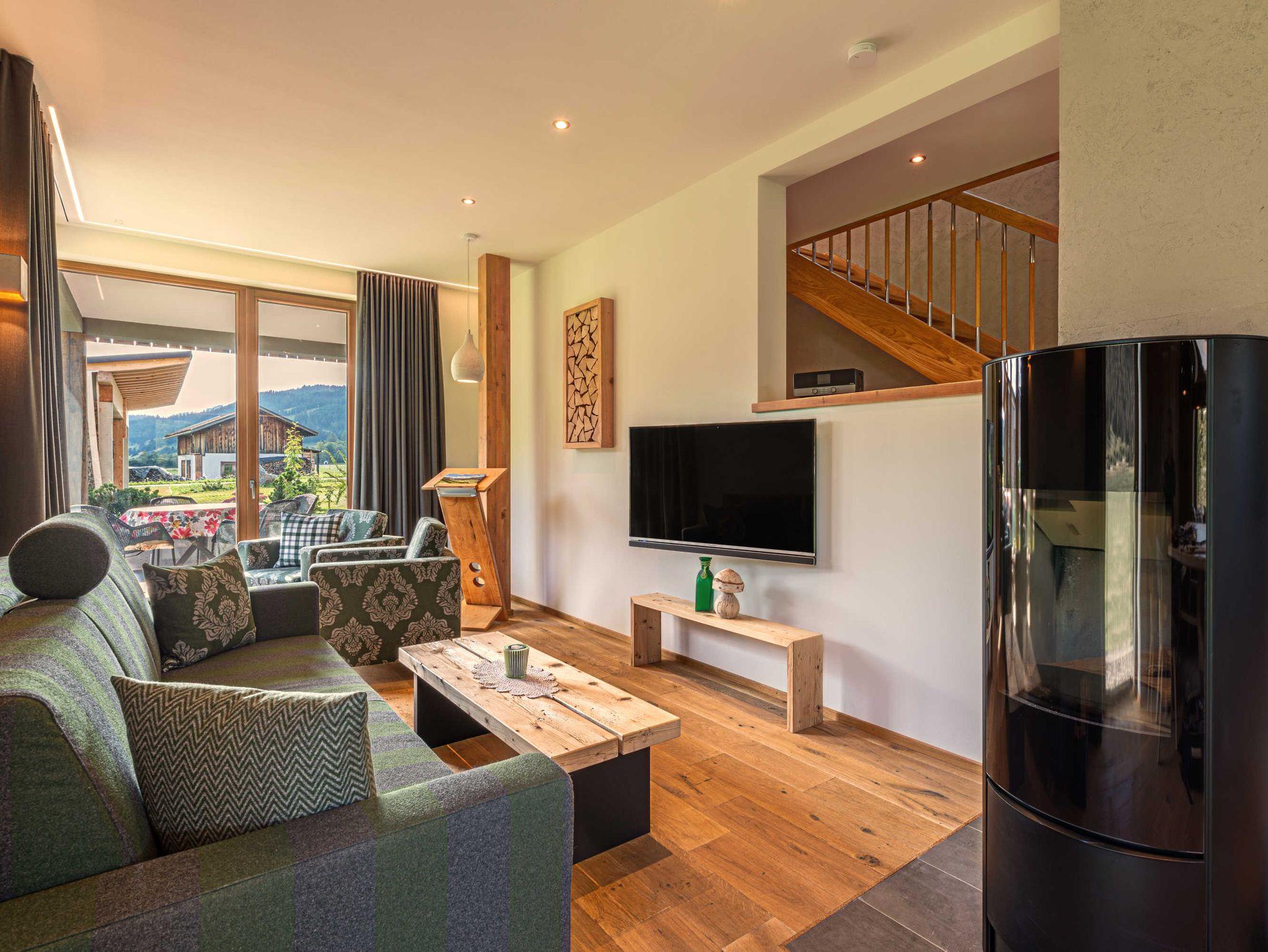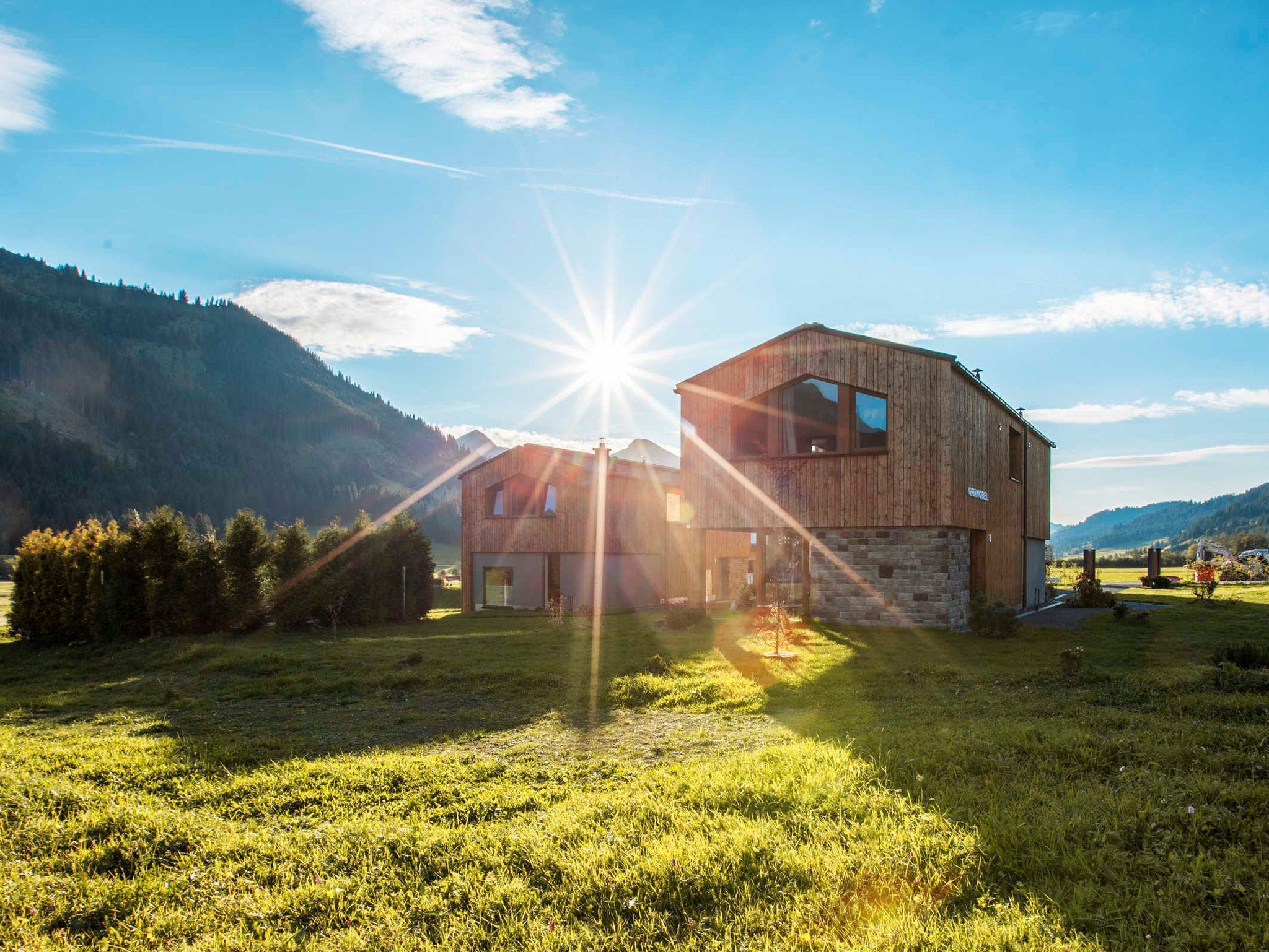 Chalet mit ca. 130 m2 für 2 - 8 Personen, 2 Schlafzimmer, Schlafsofa, 2 Etagenbetten, 2 Regenduschen, Badewanne und eigener Sauna, vollausgestattete Küche mit Esszimmer, Wohnbereich mit Kaminofen und Terrasse sowie Dachterrasse, Vorraum für Skier, Fahrräder mit E-bike Ladestation, Schuhtrockner, E-Auto Ladestation