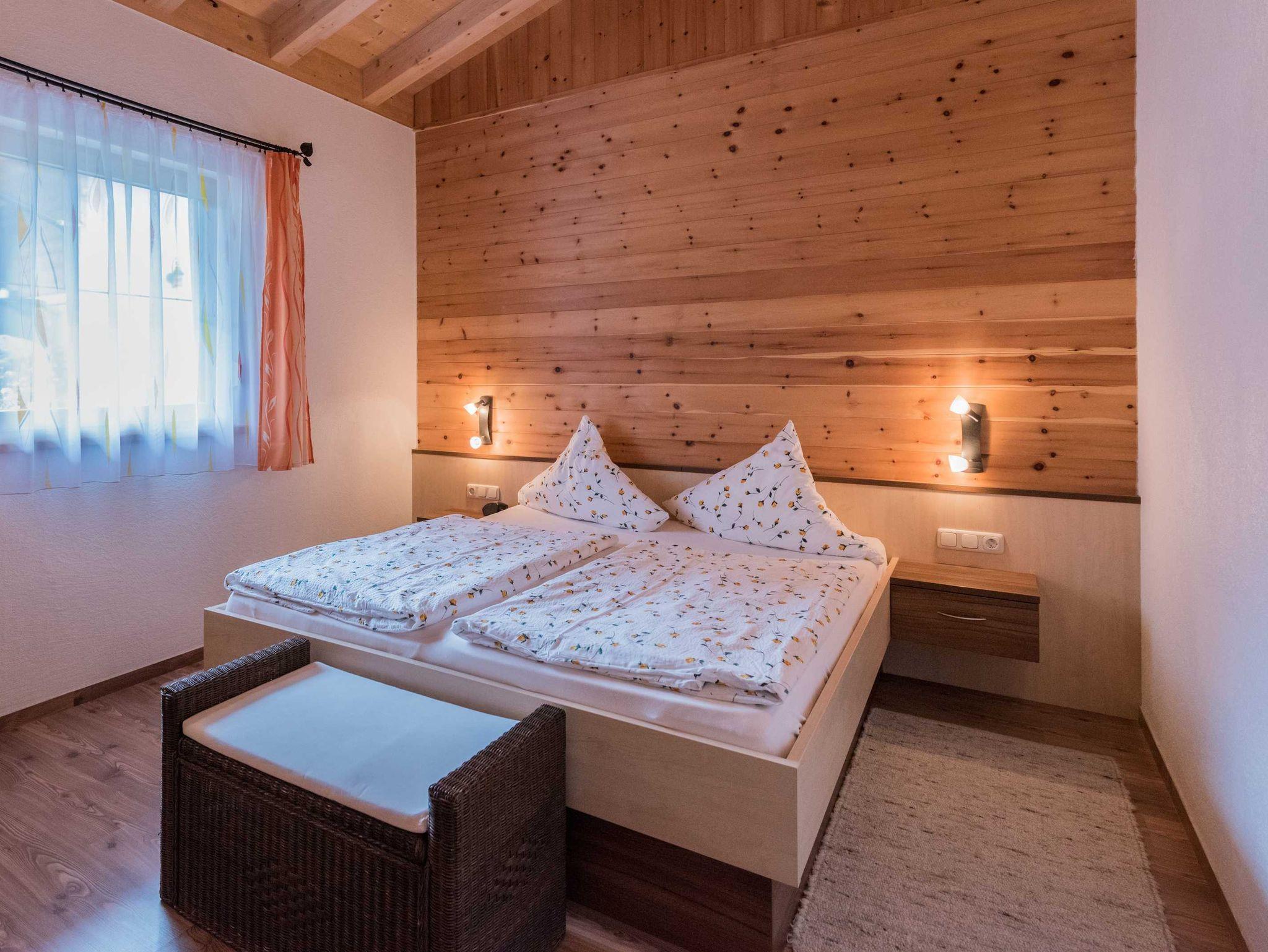 Schlafzimmer sind in Zirbenholz eingerichtet wo für gesunden Schlaf sorgen.