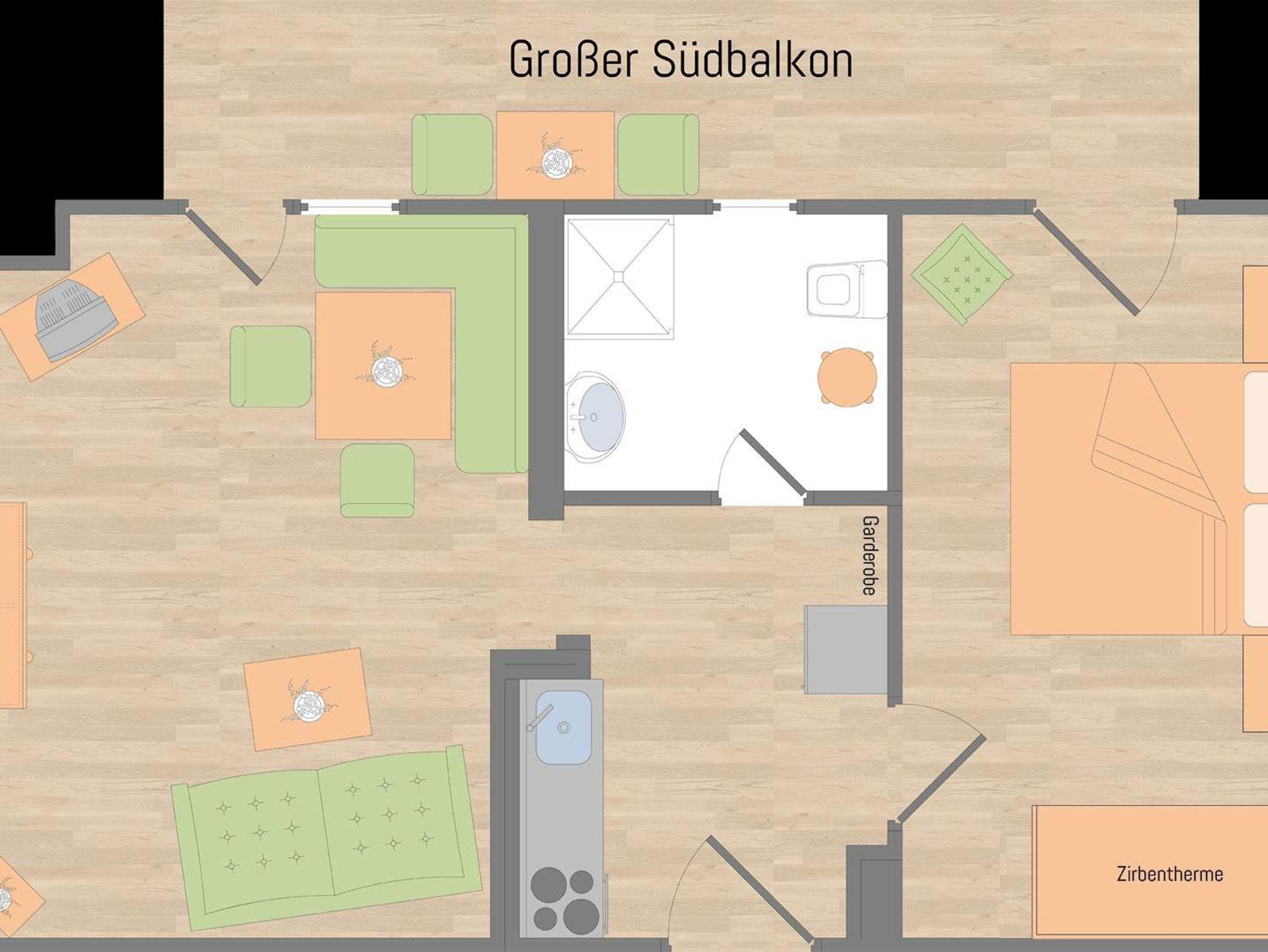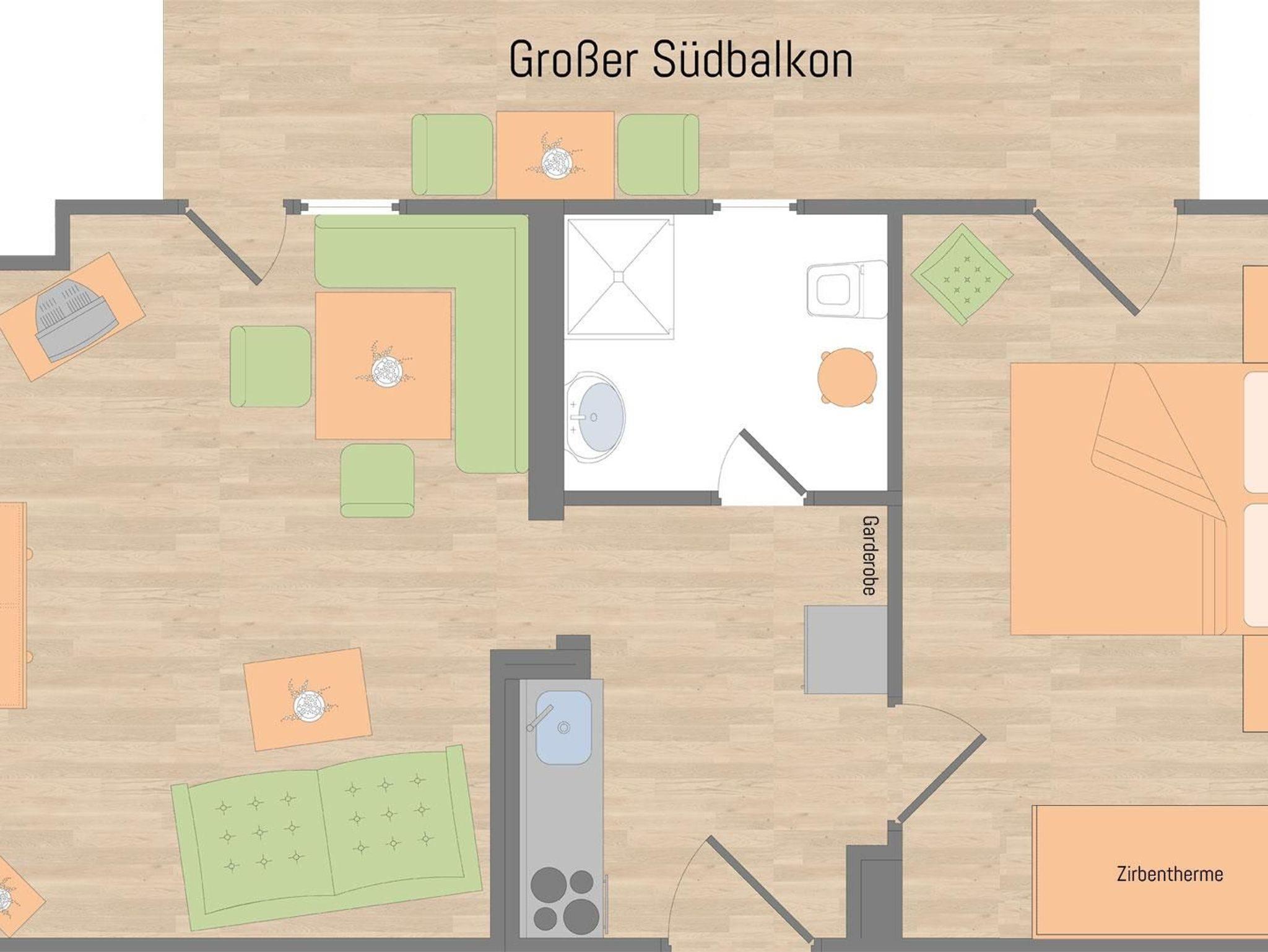 Weitläufig und wohlig. Landleben in natürlicher ländlicher Form. Die Farben, die in der Suite Landleben den Ton angeben, sind weich und warm. Es ist die Heimeligkeit, in der man sich fühlt, als hätte man hier immer schon gelebt. Die Ausstattung lässt keinen Wunsch offen - bis hin zur Zirbentherme mit Schwebeliege, Farblichtregelung und beruhigende Klänge für eine tiefe Entspannung. Glücklich ist, wer hier zu Hause ist.