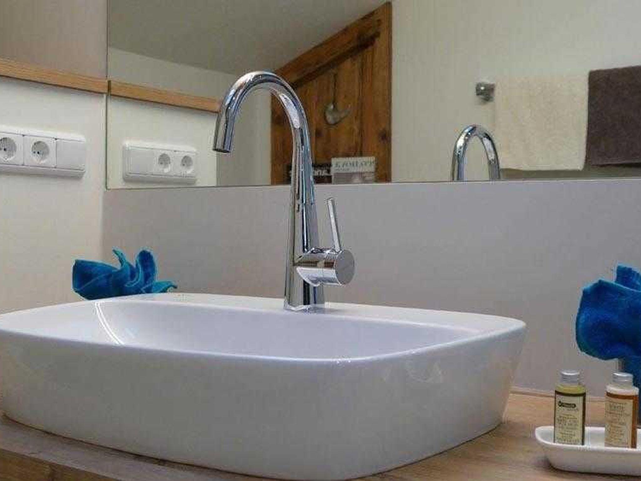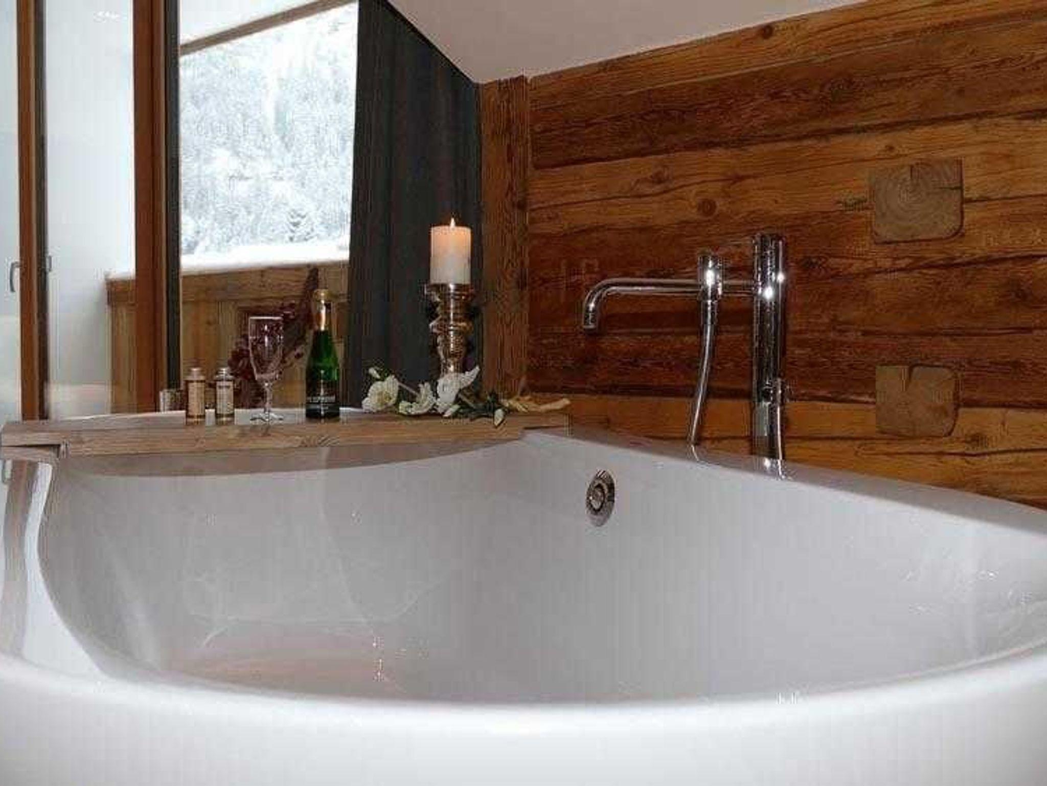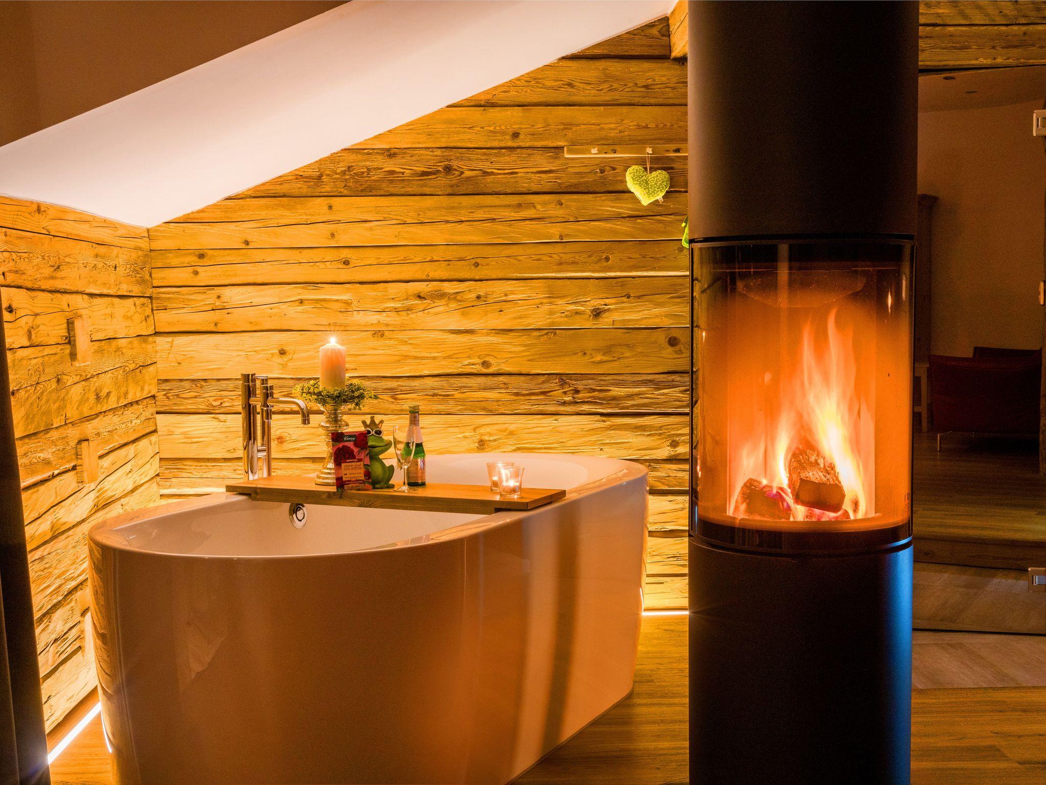 Wer hier im Panoramabad ein Bad mit Ausblick nimmt, hat das himmlische Gefühl direkt zwischen Berge und Tannenwälder zu liegen - so nah scheinen die Tannheimer Naturschönheiten zu sein. Entspannung pur und prickelndes Badevergnügen zu jeder Tages und Nachtzeit. Die Badewanne mit Bergquellwasser füllen, duftende Öle verteilen, eintauchen, die Augen schließen - und von Gipfelerlebnissen träumen. Aber nicht vergessen, von Zeit zu Zeit warmes Wasser zuzugeben!