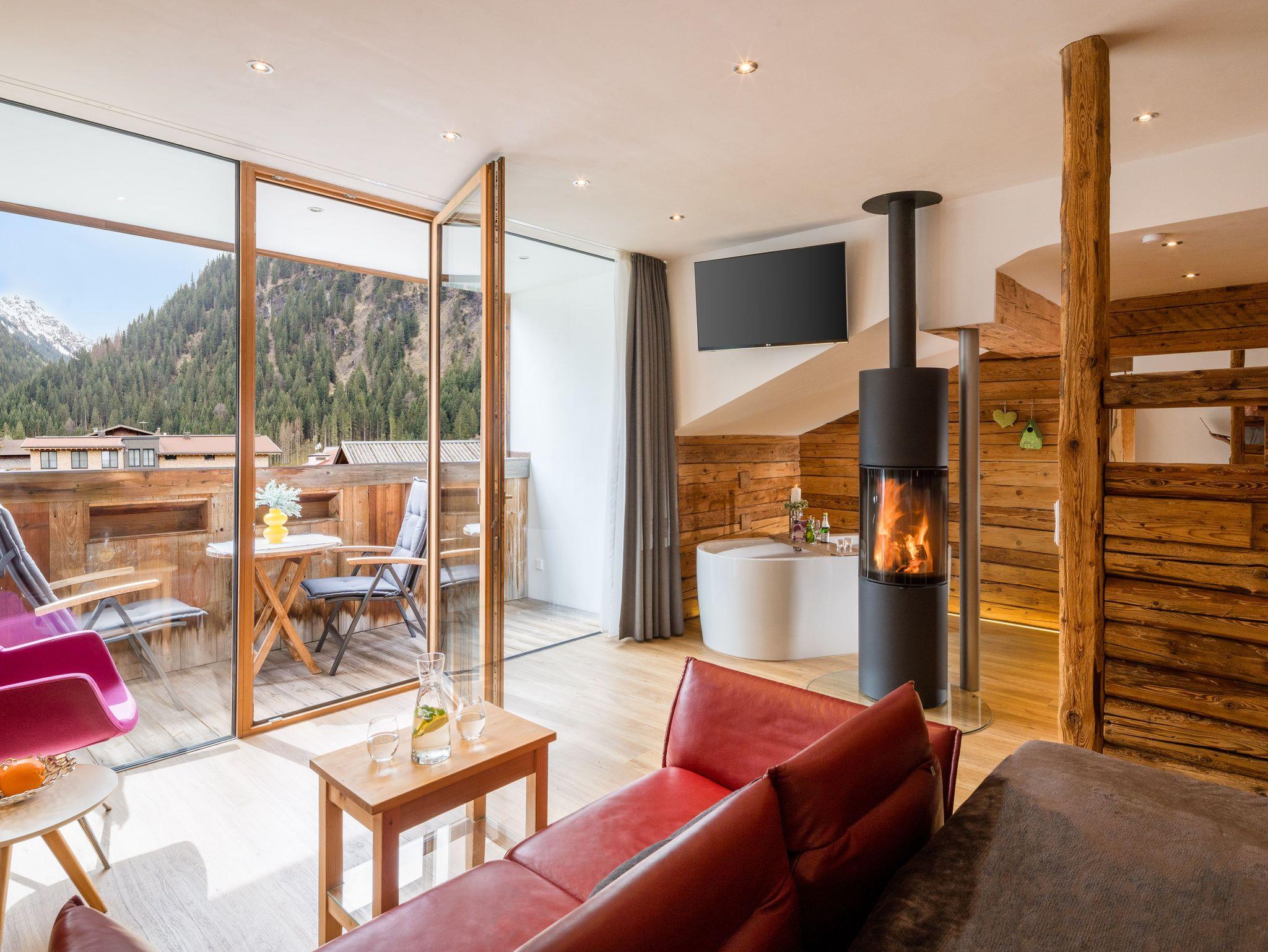 Schon beim Betreten des Gipfelglück sieht man, dass man vor Freude ganz aus dem Häuschen sein wird: Stilvoll wie ein Bergchalet. Mit allem Drum und Dran. Luxuriös und maßgefertigt. Almhüttenkuschelflair, Kamin und Suitenkomfort. Auf das Wesentliche konzentriert, aber mit Hochwertigstem ausgestattet bietet das Gipfelglück Freigefühl und Heimgefühl in Einem.