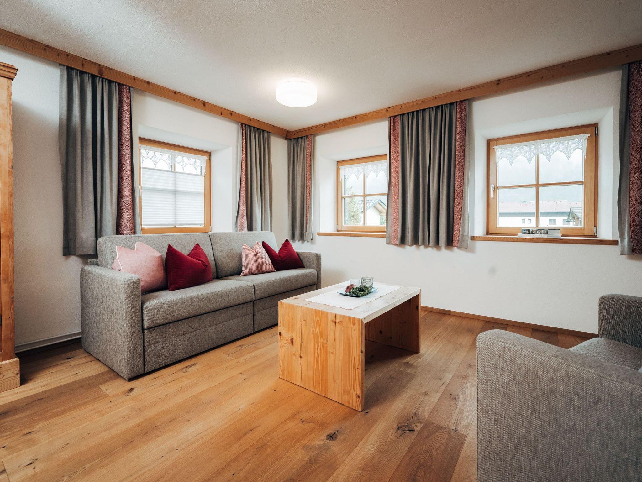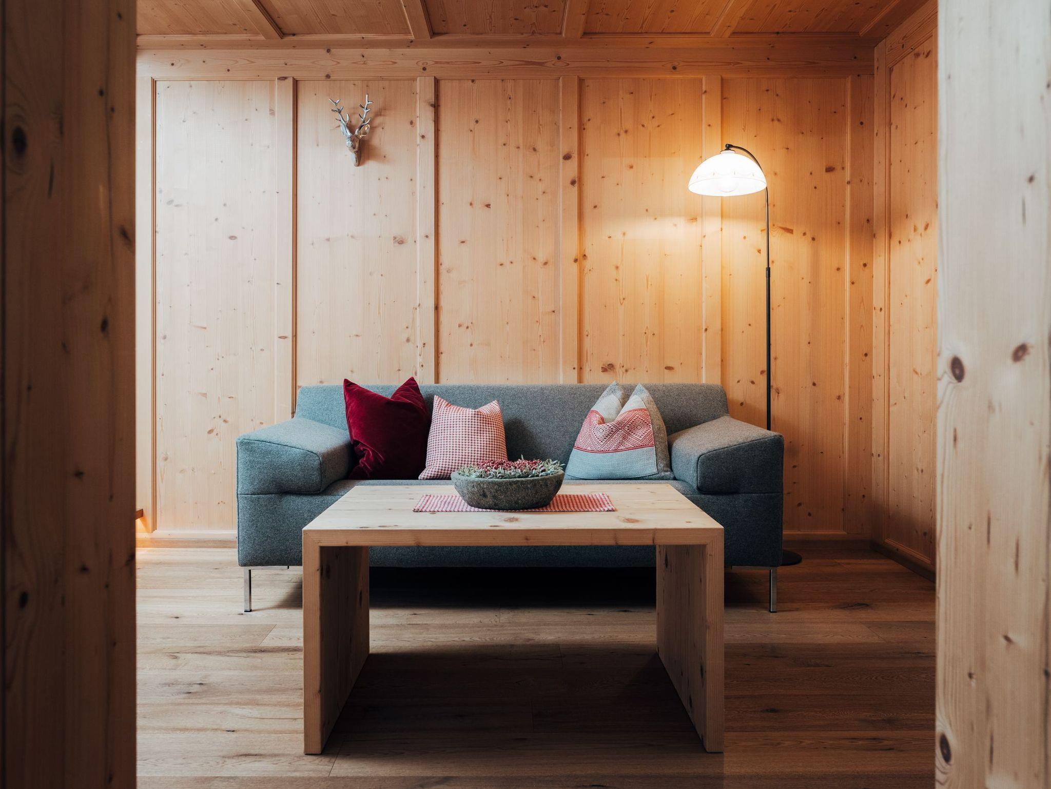 Barfuß auf dem Eichenholzboden, den Duft des Holzes in der Nase. Stilsicher und traditionsbewusst mit Einzelstücken der Großeltern haben wir ein Wohnerlebnis im modernen Alpin-Design geschaffen, um Ihnen unsere schöne Heimat nahe zu bringen. Herzstück dieser Suite ist die Stube mit originalem Bauernofen.