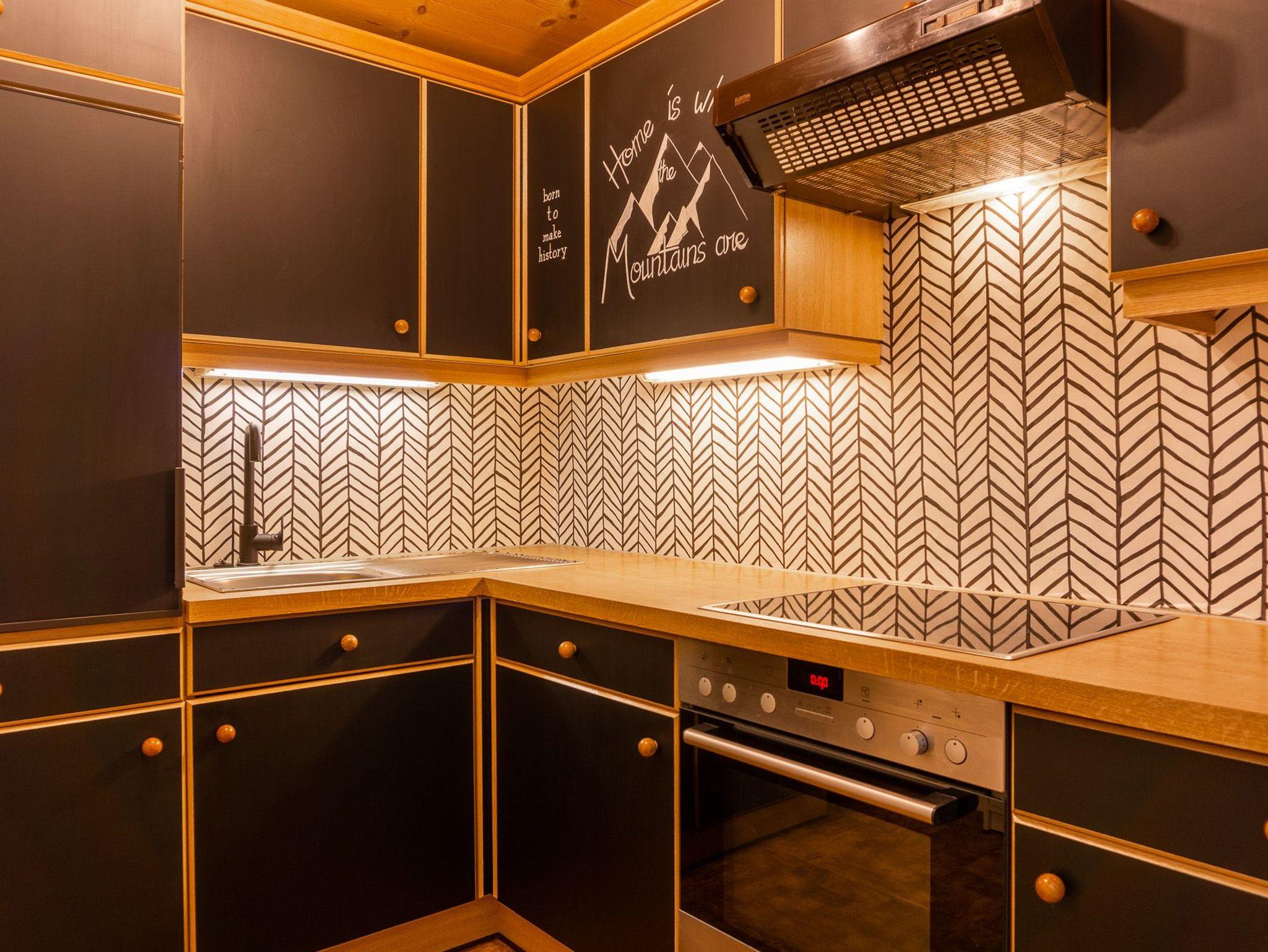 ausgestattete Küche (4-Platten-Herd mit Backrohr, Toaster,