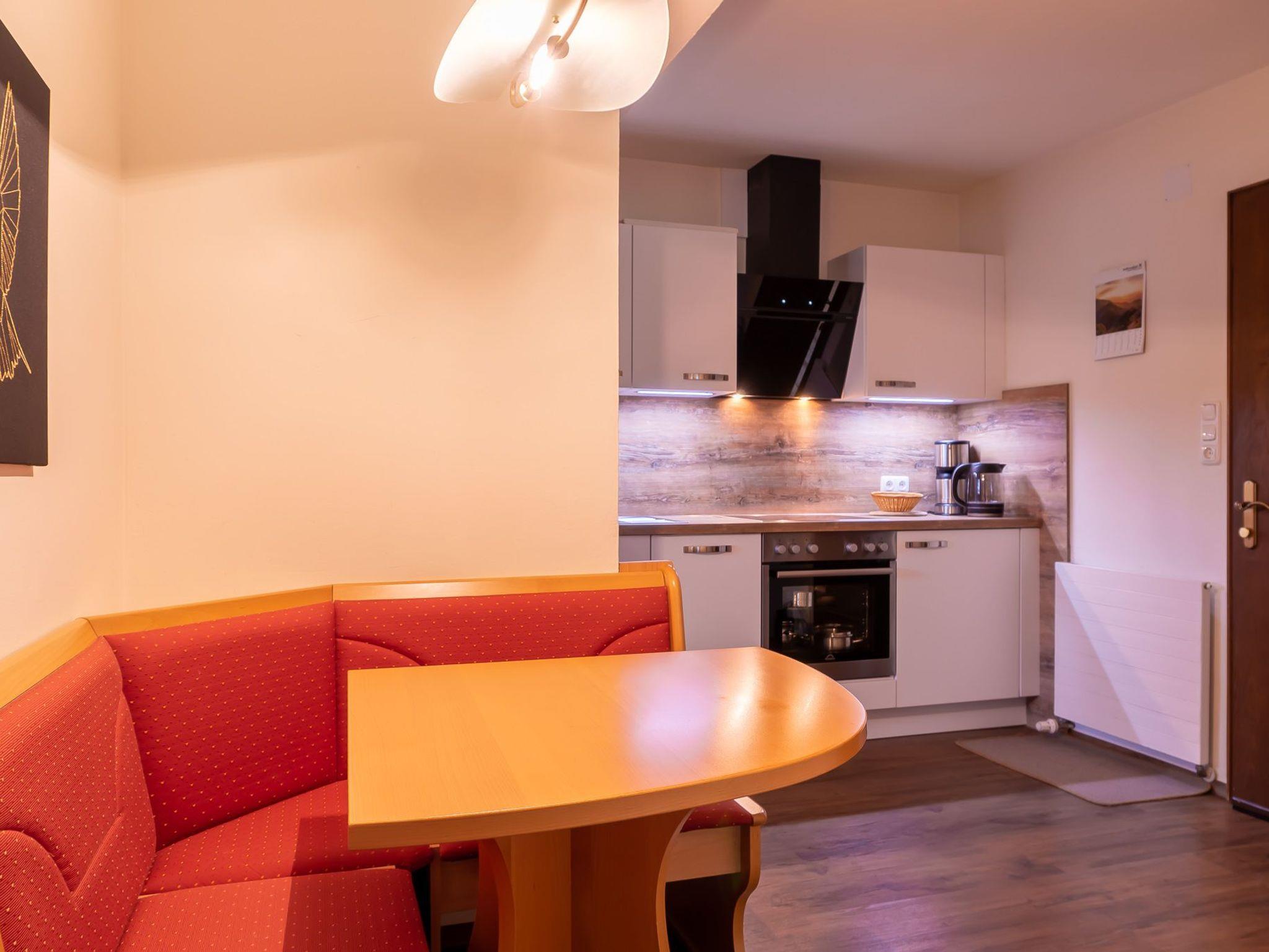 Es erwartet Sie eine geschmackvolle Komfortferienwohnung mit 44 m². Bestehend aus Vorraum mit Garderobe, moderne Küche (Herd mit Backrohr und 4 Platten, Toaster, Wasserkocher, Kaffeemaschine), ein separates Zweibettzimmer, kleiner Essplatz, Badezimmer mit Wanne bzw. Dusche und WC, 1 großes Schrankbett, Wohnsitzcouch, Flat-TV, W-lan gratis, Radio, kleiner möblierter Südbalkon, überdachter Autoabstellplatz, Brötchenservice, komplette Wäsche (Bett-, Tisch-, Bad- und Küchenwäsche). Zusätzlich zur Ferienwohnung können Sie noch ein Doppelzimmer oder Einzelzimmer mit DU/WC buchen.