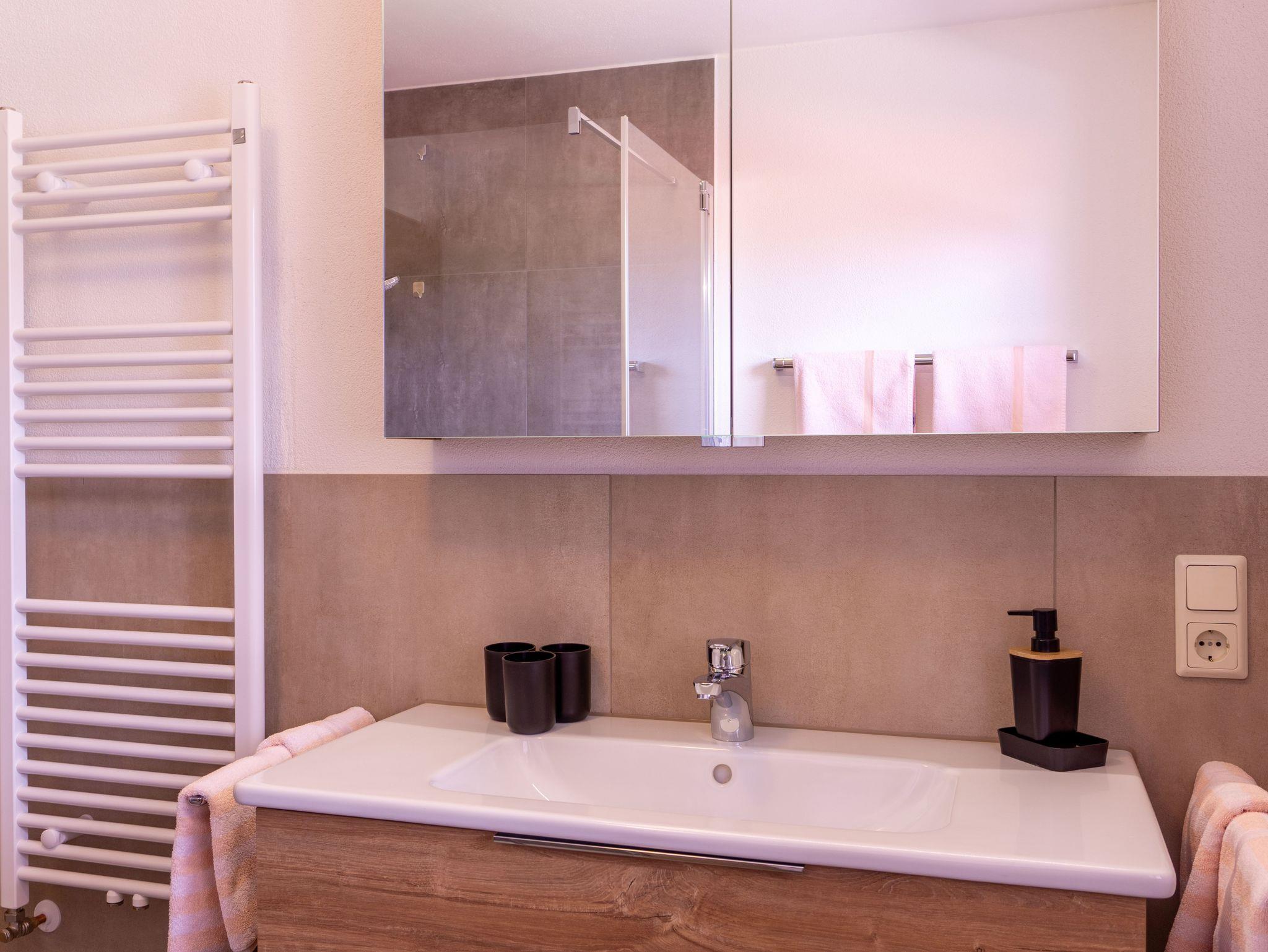 Großzügige, helle Komfortwohnung mit 76 m². Vorraum mit Garderobe, WC, getrenntes, neu renoviertes (Fertigstellung April 2024) Badezimmer mit Dusche, Fön, ein großes Doppelzimmer, ein kleines Zweibettzimmer, 1 WC mit Handwaschbecken, Küche komplett ausgestattet, im Herbst 2023 renoviert (kl. Spülmaschine, Herd mit Backrohr und 4 Platten, Toaster, Wasserkocher, Kaffeemaschine), Wohnzimmer mit separatem Essplatz und großer Wohn-Schlafcouch, SAT-TV, CD-Player, Wlan , großer möblierter Süd-Ostbalkon, komplette Wäsche (Bett-, Tisch-, Bad- und Küchenwäsche), Brötchenservice.