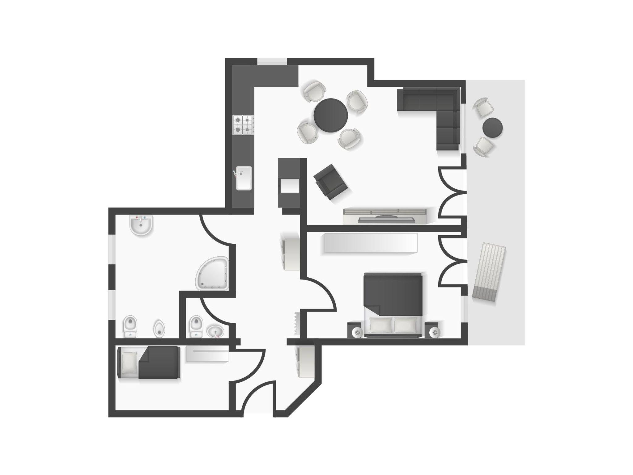 Apartment für 2-3 Personen im Dachgeschoss 70 m²