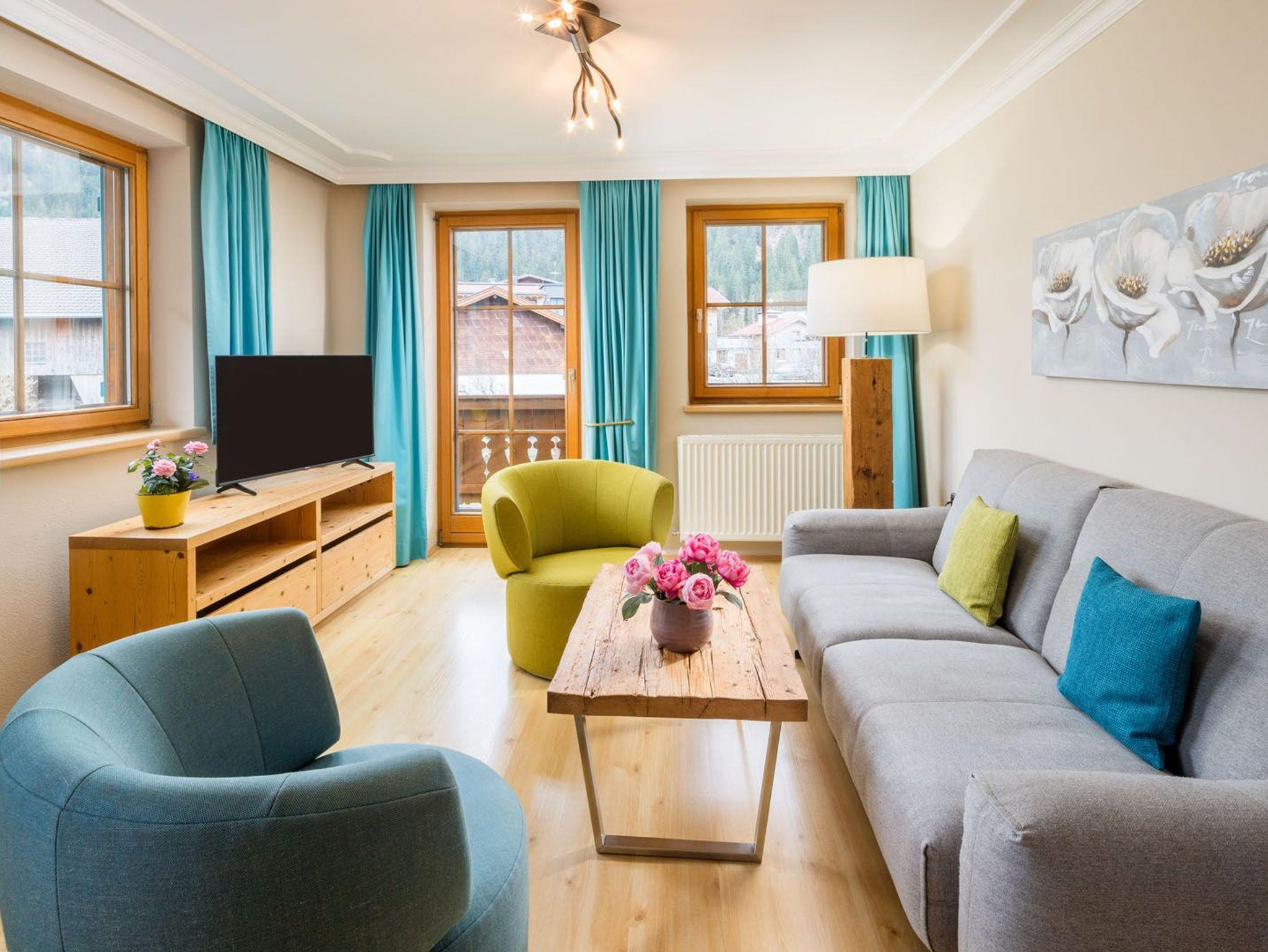 Die sonnendurchflutete Wohnstube lädt zum Verweilen ein. Morgens frische Bergluft auf dem Balkon genießen, dann die Wanderschuhe schnüren und den Tag in vollen Zügen erleben.