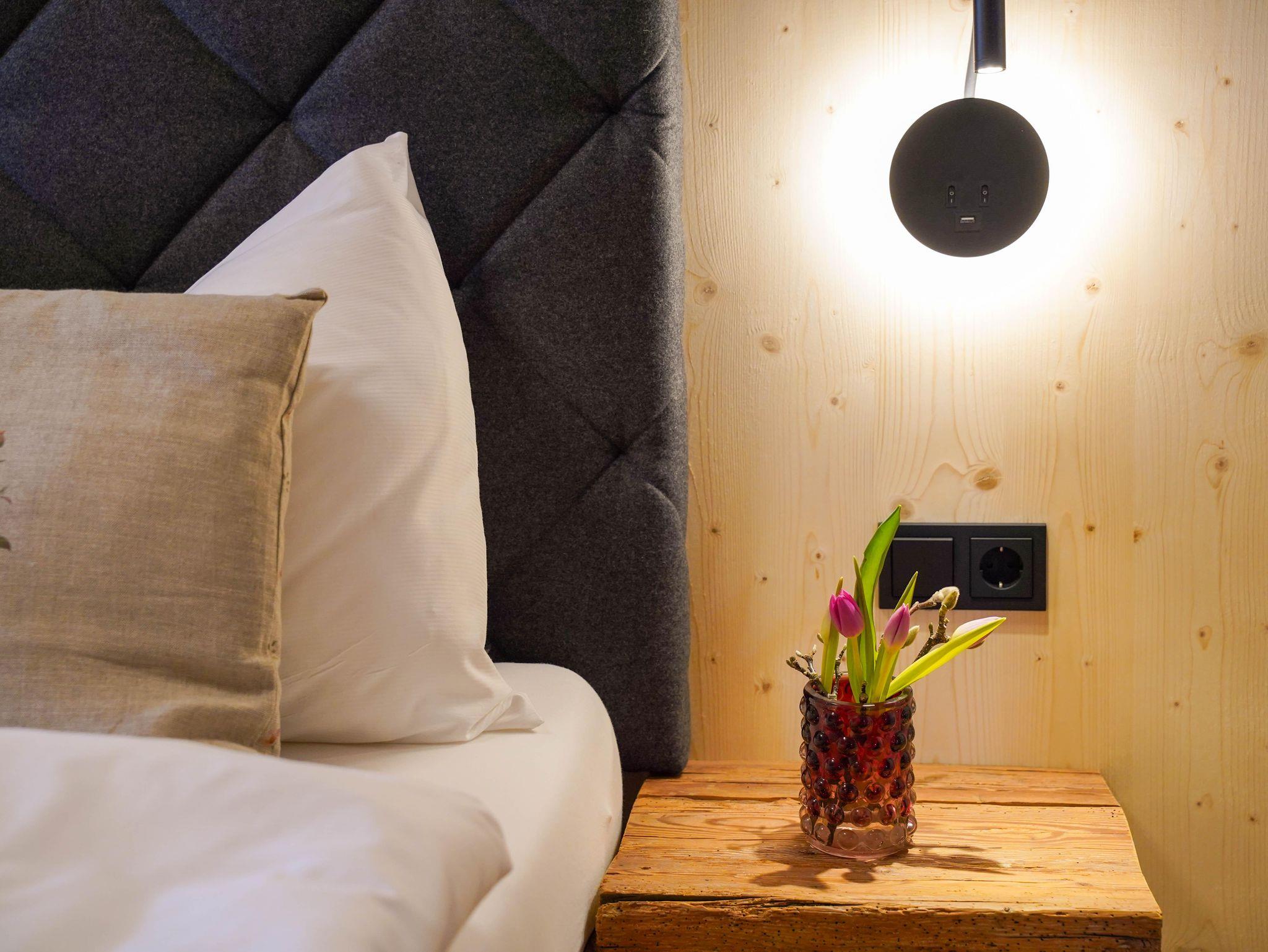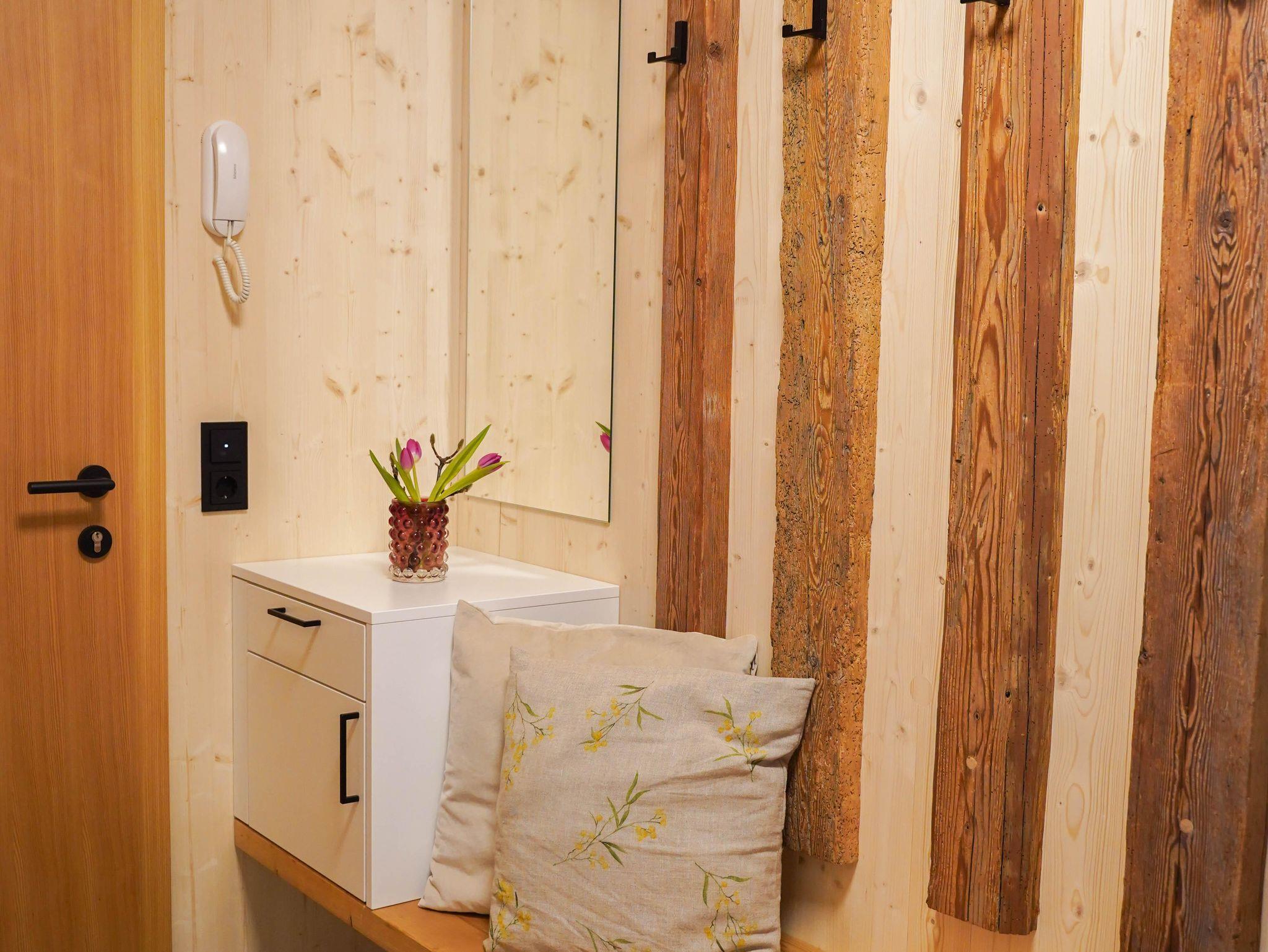 Dabei wurde ein neues Holzhaus im bestehenden Steinmauerwerk eines historischen Wirtschaftsgebäudes aus dem 18. Jahrhundert integriert. Schon beim Betreten des Hauses werden Sie vom wohligen Duft natürlicher Materialien umfangen, der Ihnen einen entspannten Urlaub verspricht.