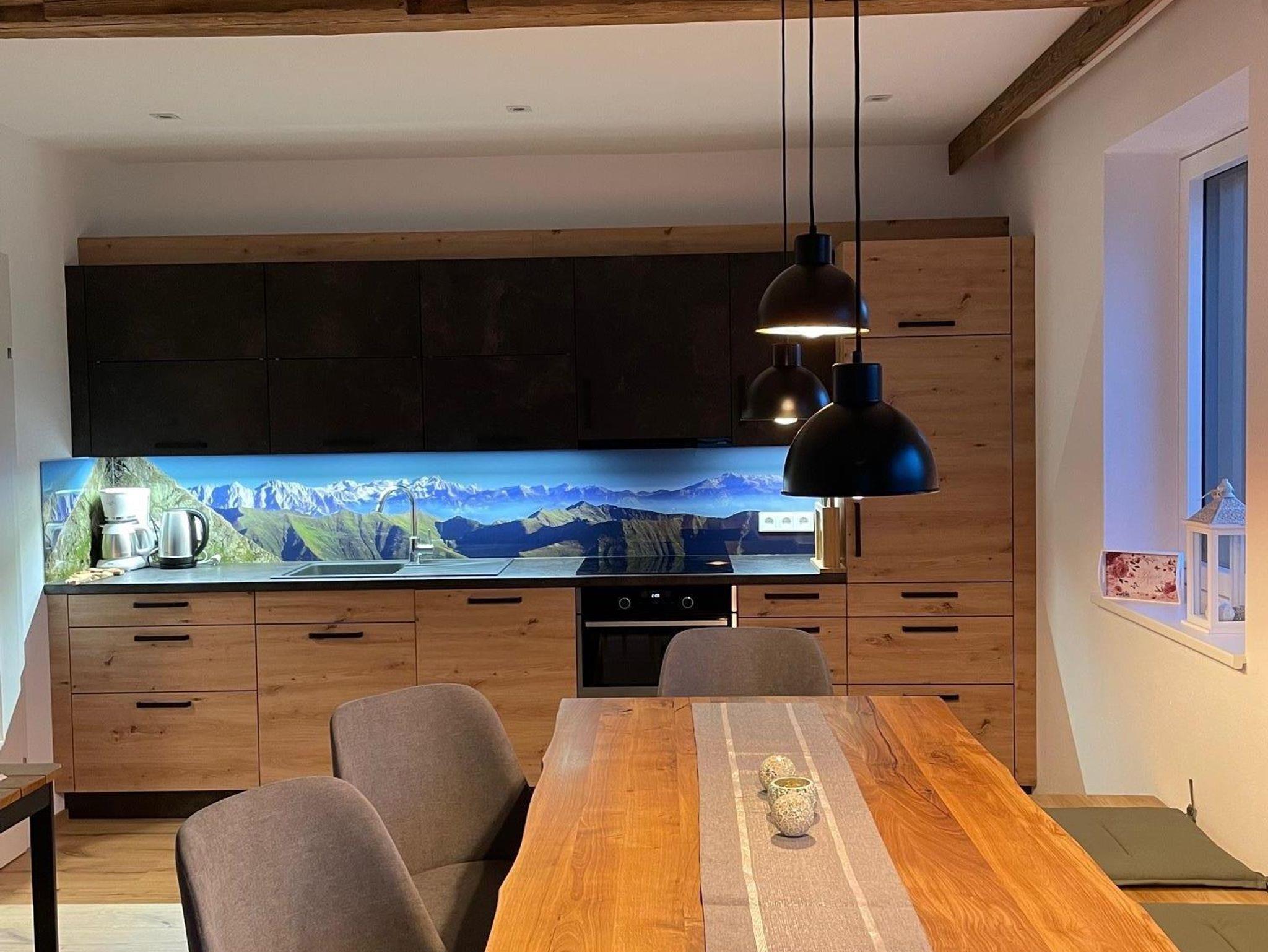 Unsere 2021 erbaute Ferienwohnung ist ca. 75 m² groß und mit viel Liebe und Naturholz ausgestattet.