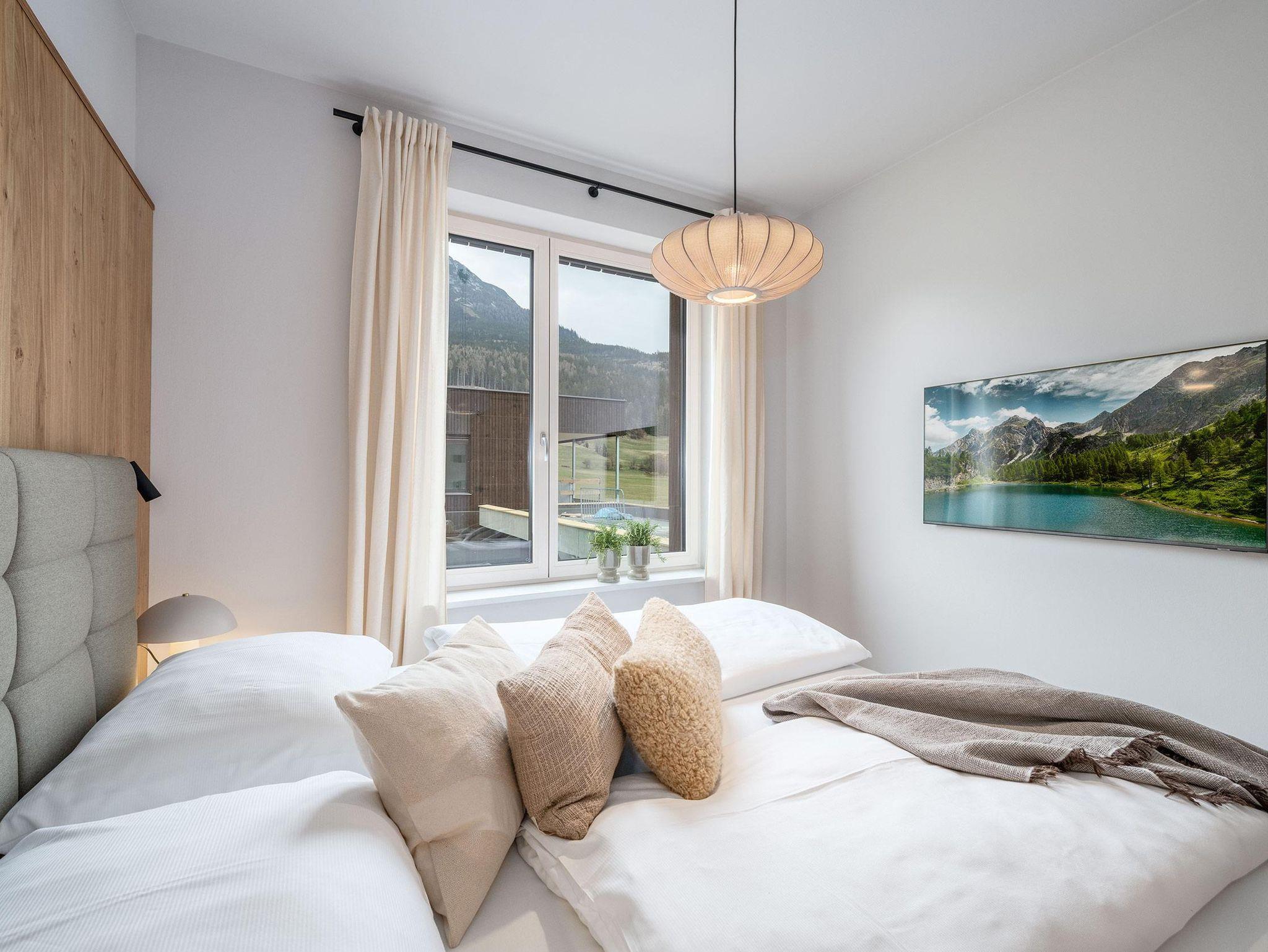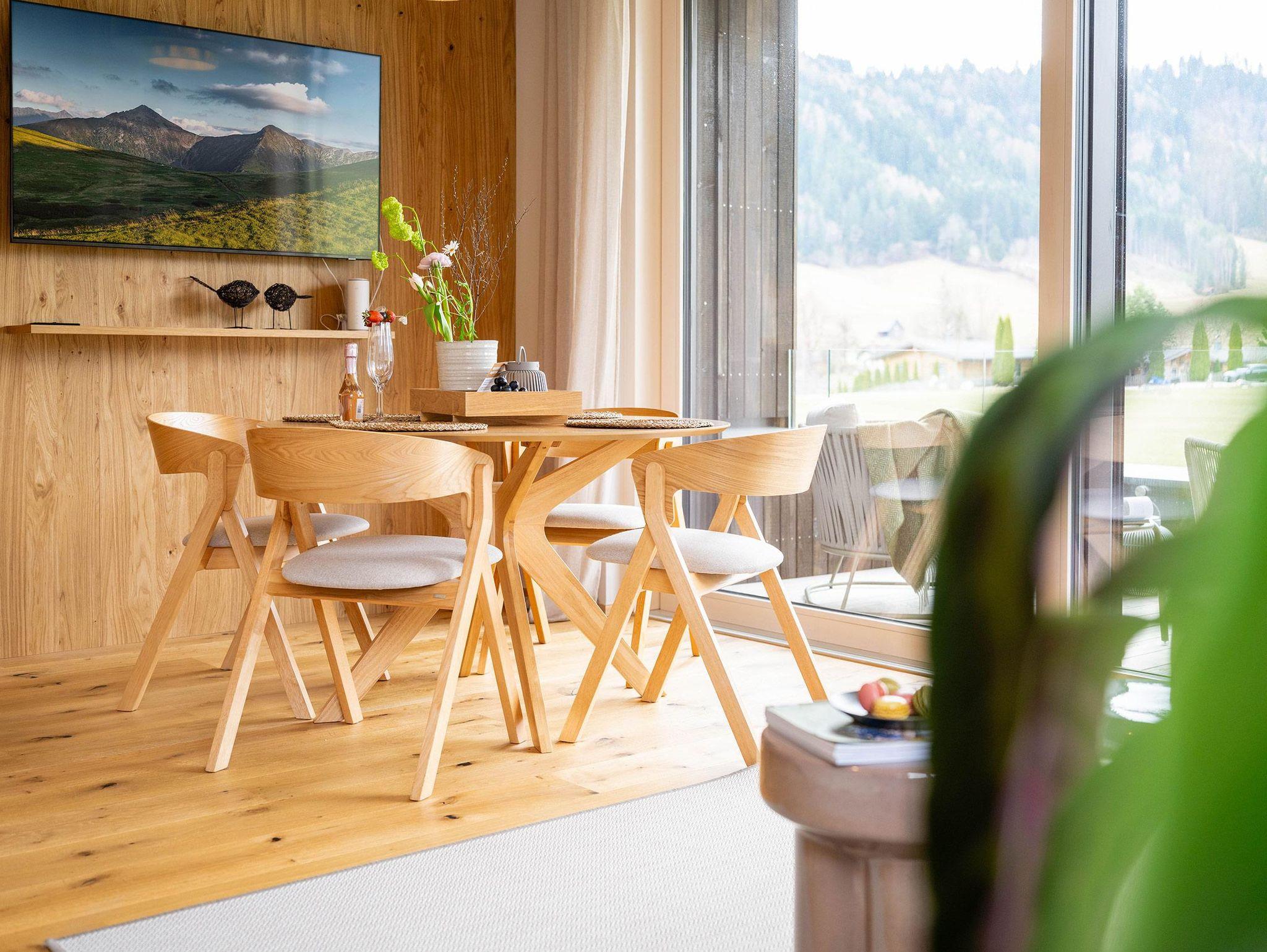 Terrassen oder Balkone eröffnen traumhafte Ausblicke auf die umliegende Bergwelt und laden dazu ein, Sonne und Natur in vollen Zügen zu genießen. Ergänzt wird das Wohngefühl durch praktische Extras wie Ski- und Fahrradabstellmöglichkeiten, Parkplätze direkt bei der Unterkunft sowie moderne technische Ausstattung für einen entspannten Aufenthalt.
