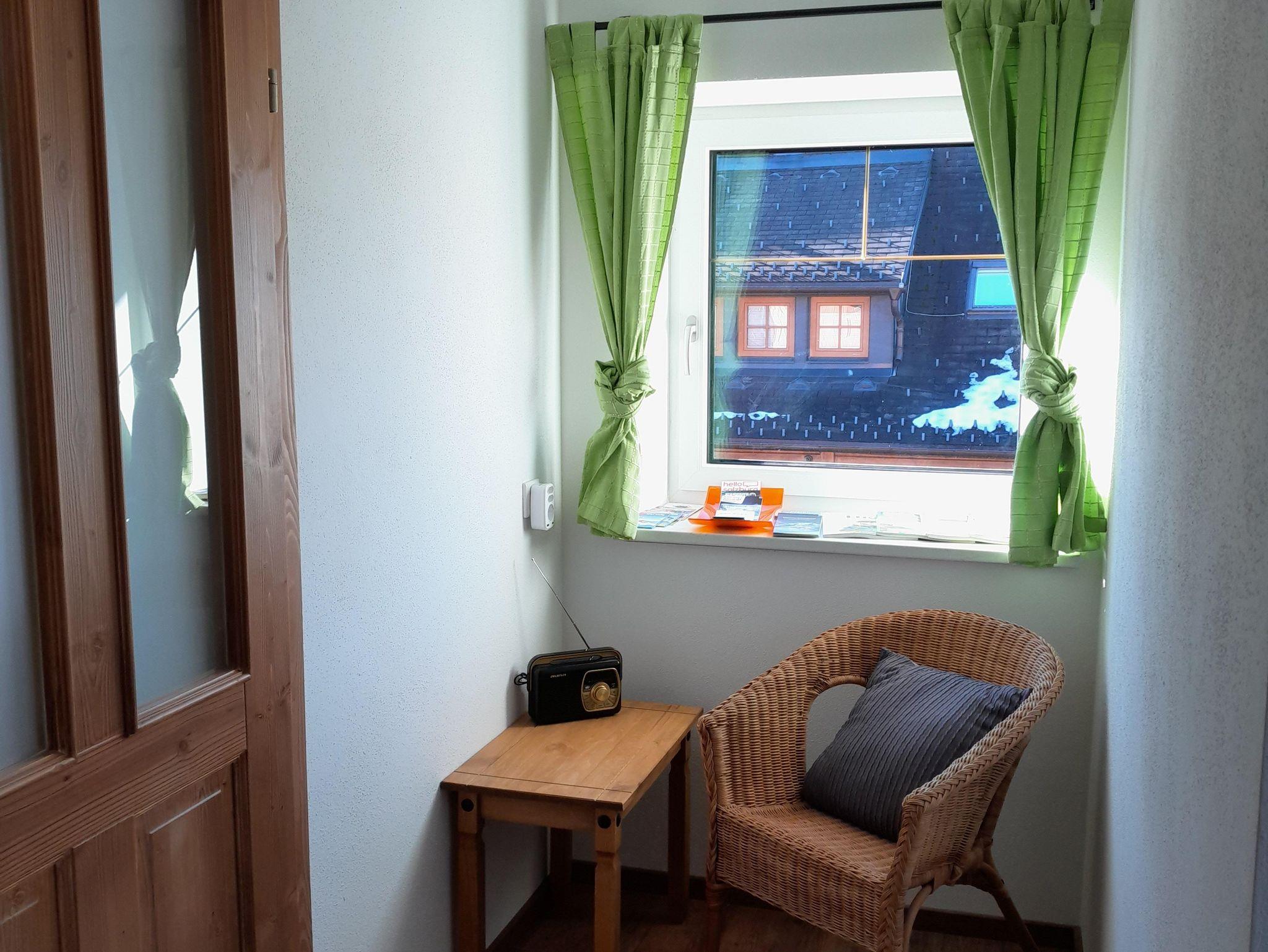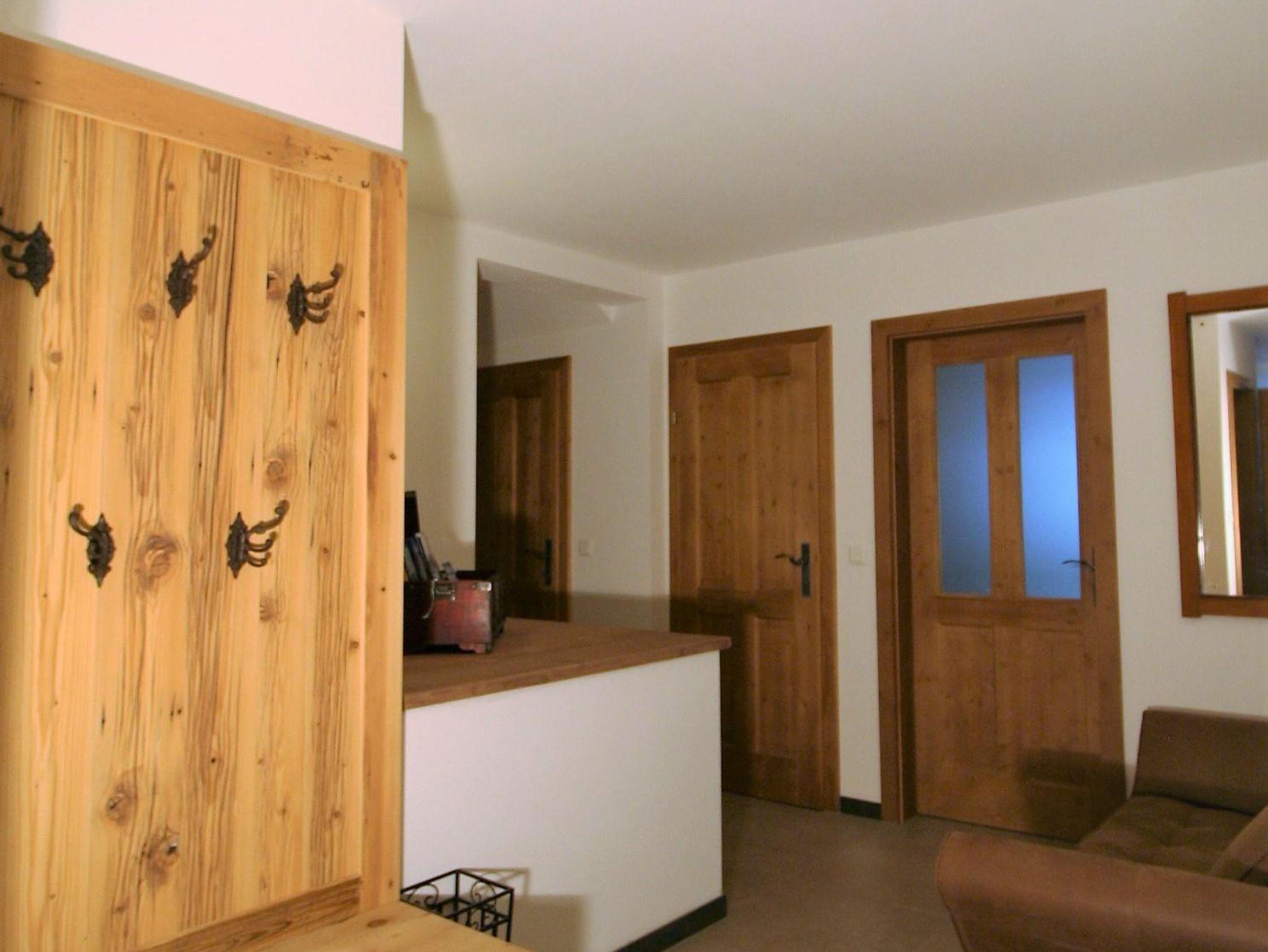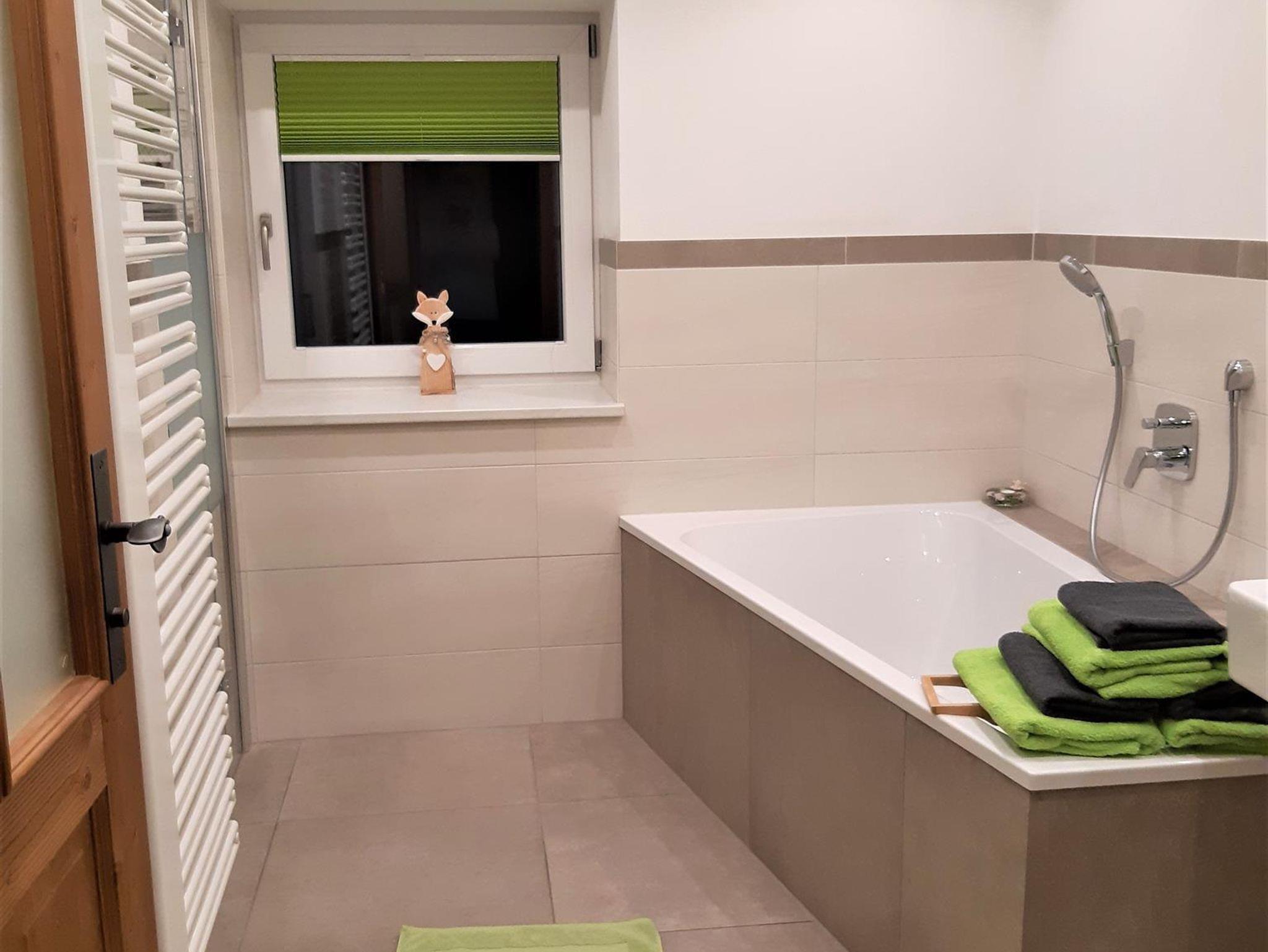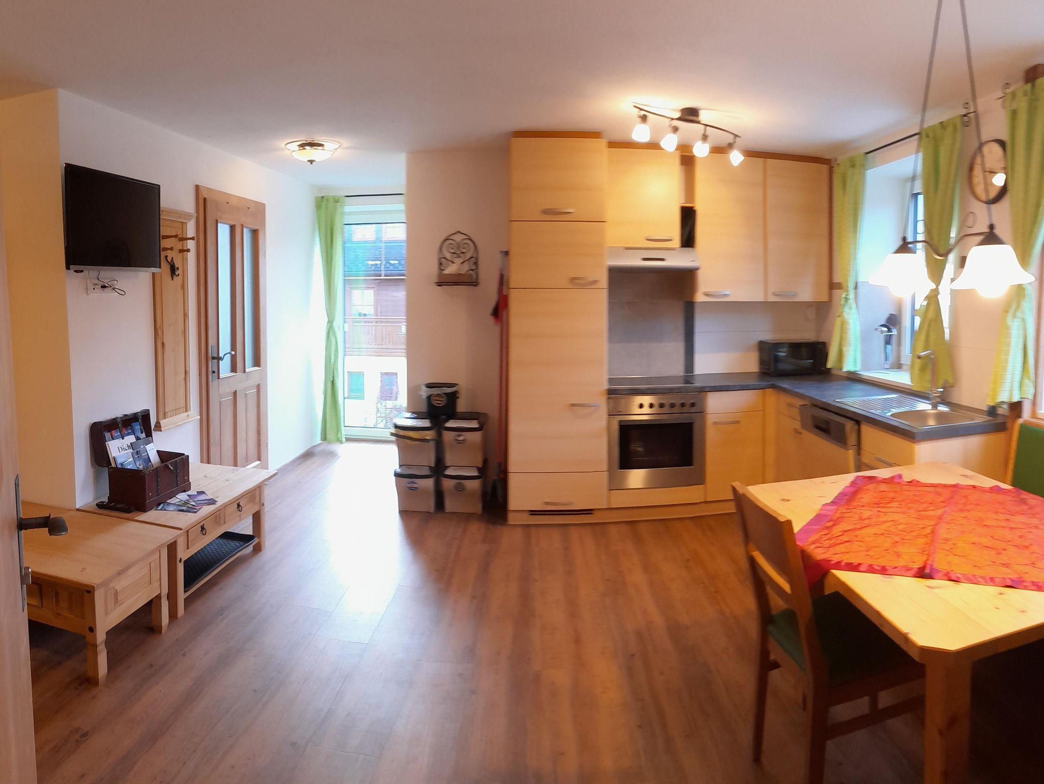Küche mit uriger Eckbank und Tisch zum Sitzen für 10 Personen, Vorraum mit Garderobe und Liegecouch. Badezimmer mit Waschtisch, Badewanne und Dusche und ein extra begehbares WC. Ein Babybett kann auf Anfrage ebenso beigestellt werden.