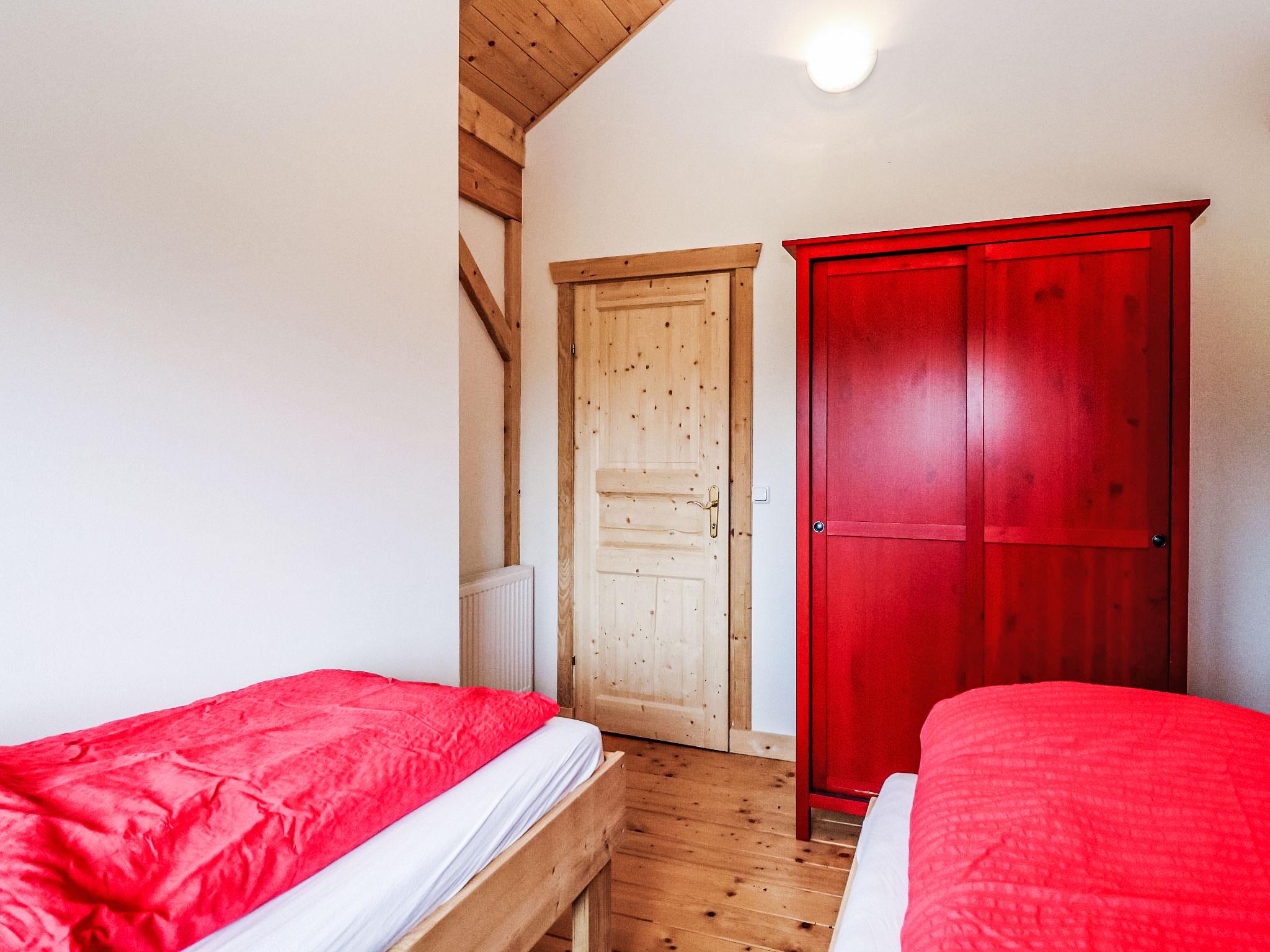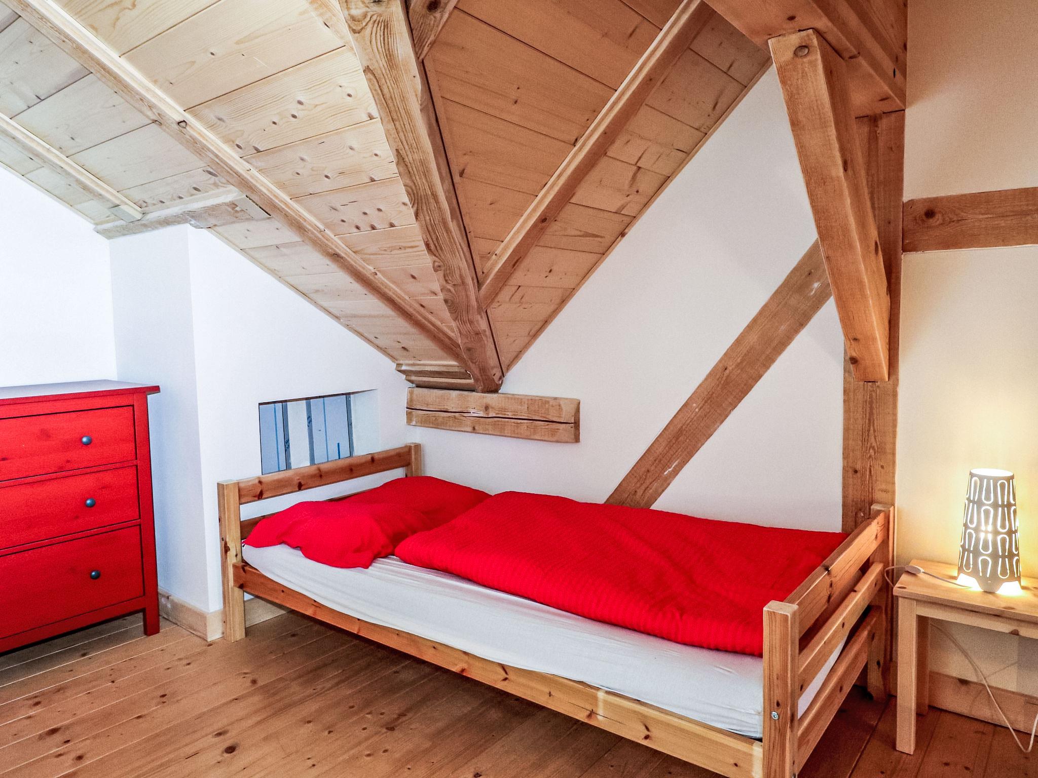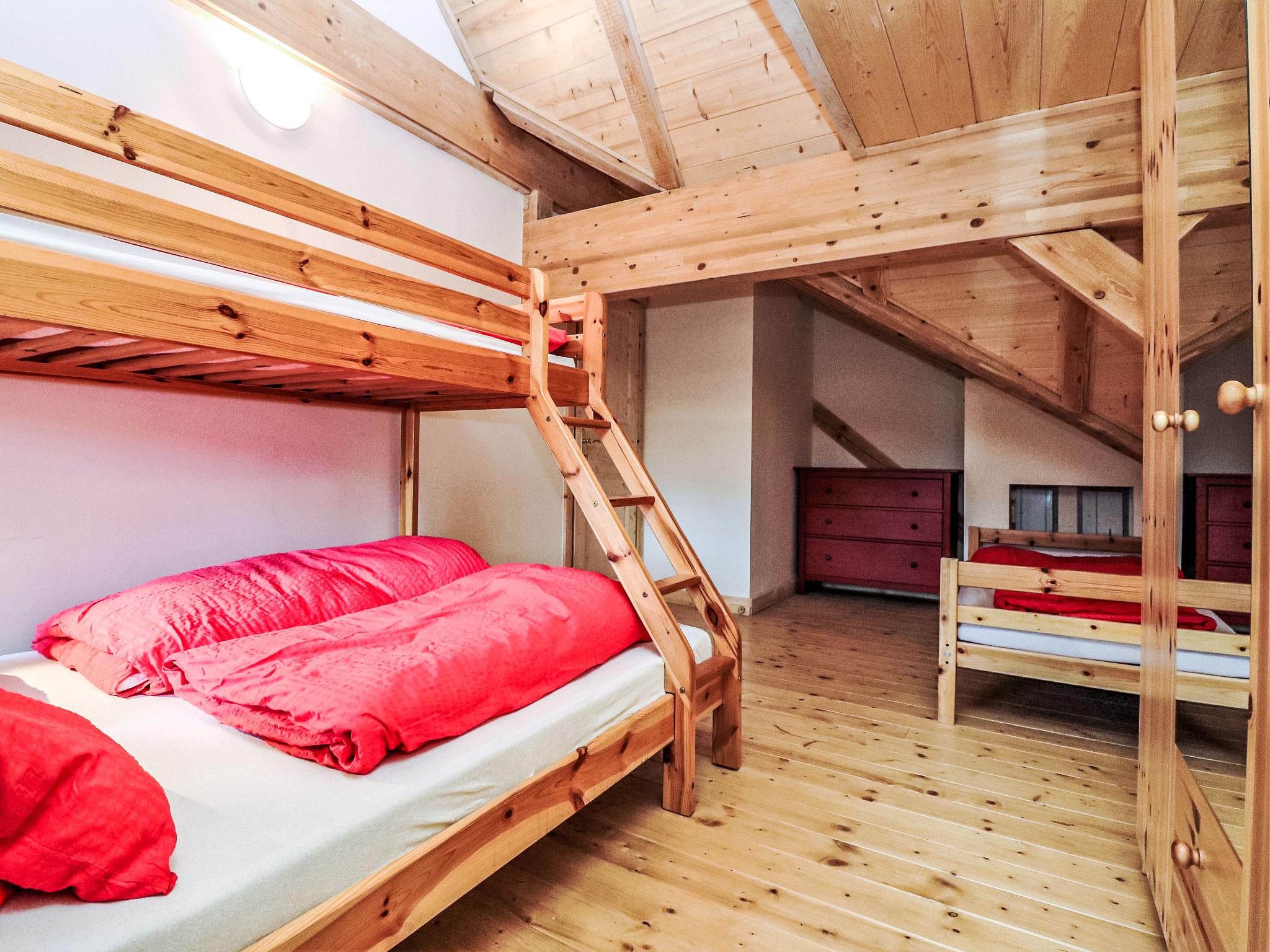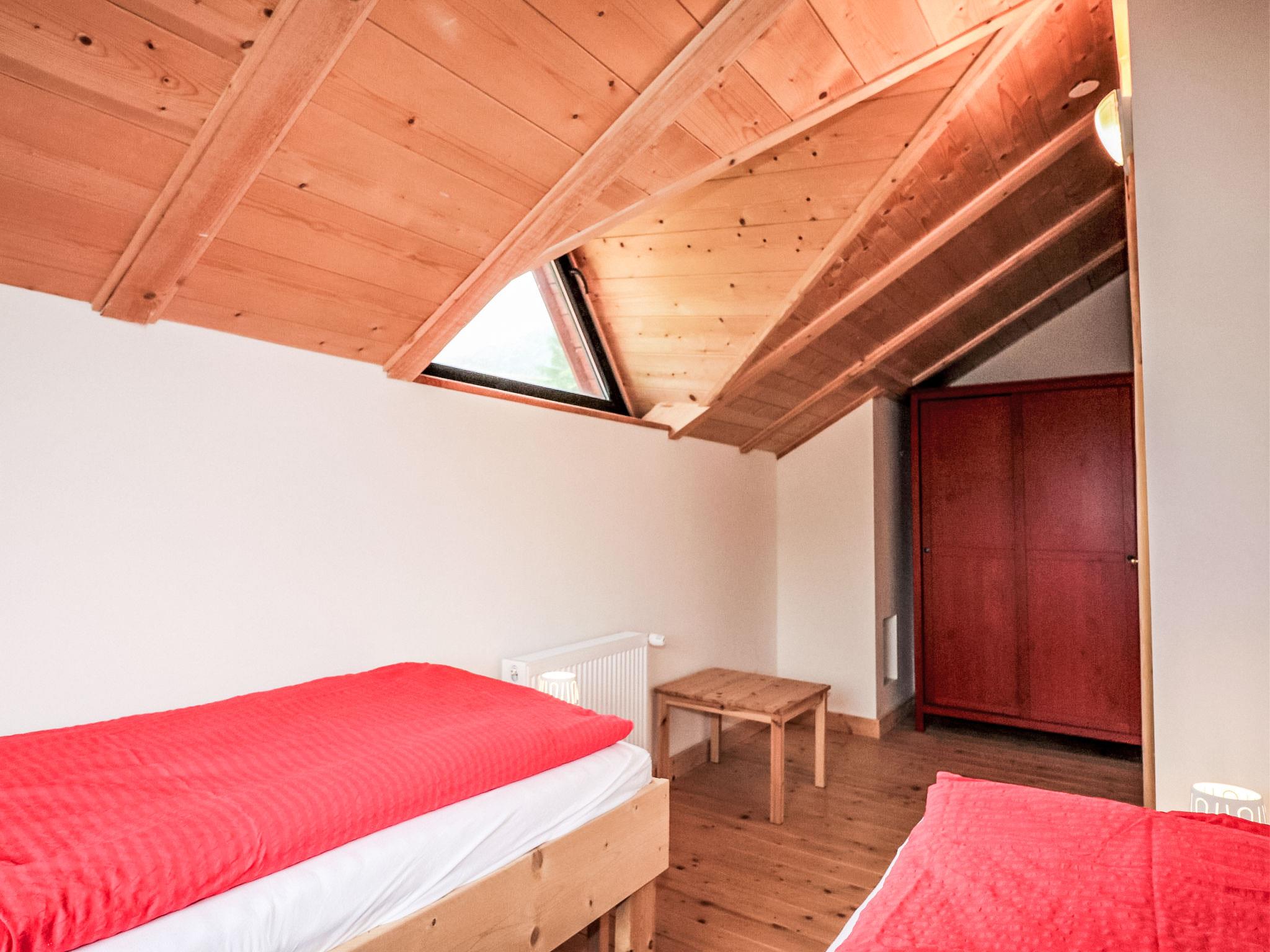 "Bärenhöhle / Top 6", 4-room apartment 118 m2 on 2 levels. Spacious, partly with sloping ceilings, cosy furnishings: living/dining room with dining table, kitchen corner and satellite TV. Open kitchen (oven, dishwasher, 4 ceramic glass hob hotplates, microwave, freezer, electric coffee machine). Shower/WC. Top floor: 2 rooms, each room with 2 beds (80 cm, length 200 cm). 1 room with 2 beds (80 cm, length 200 cm), 1 x 1 bunk beds (80 cm, length 200 cm), 1 double bed (140 cm, length 200 cm). Shower/WC. Beautiful view of the mountains and the resort. Facilities: Internet (WiFi, free). Please note: suitable for families. Non-smokers only. Smoke alarm, fire extinguisher.