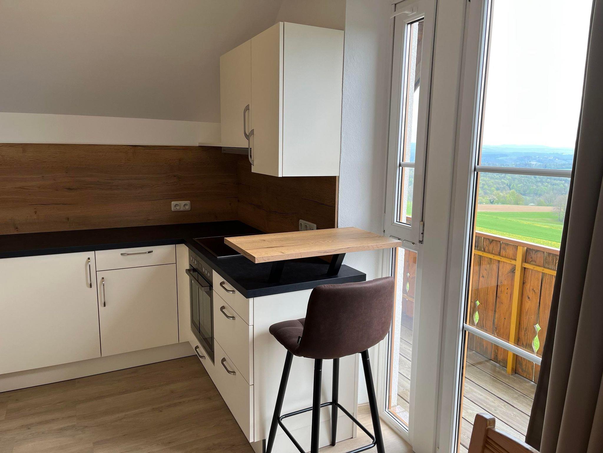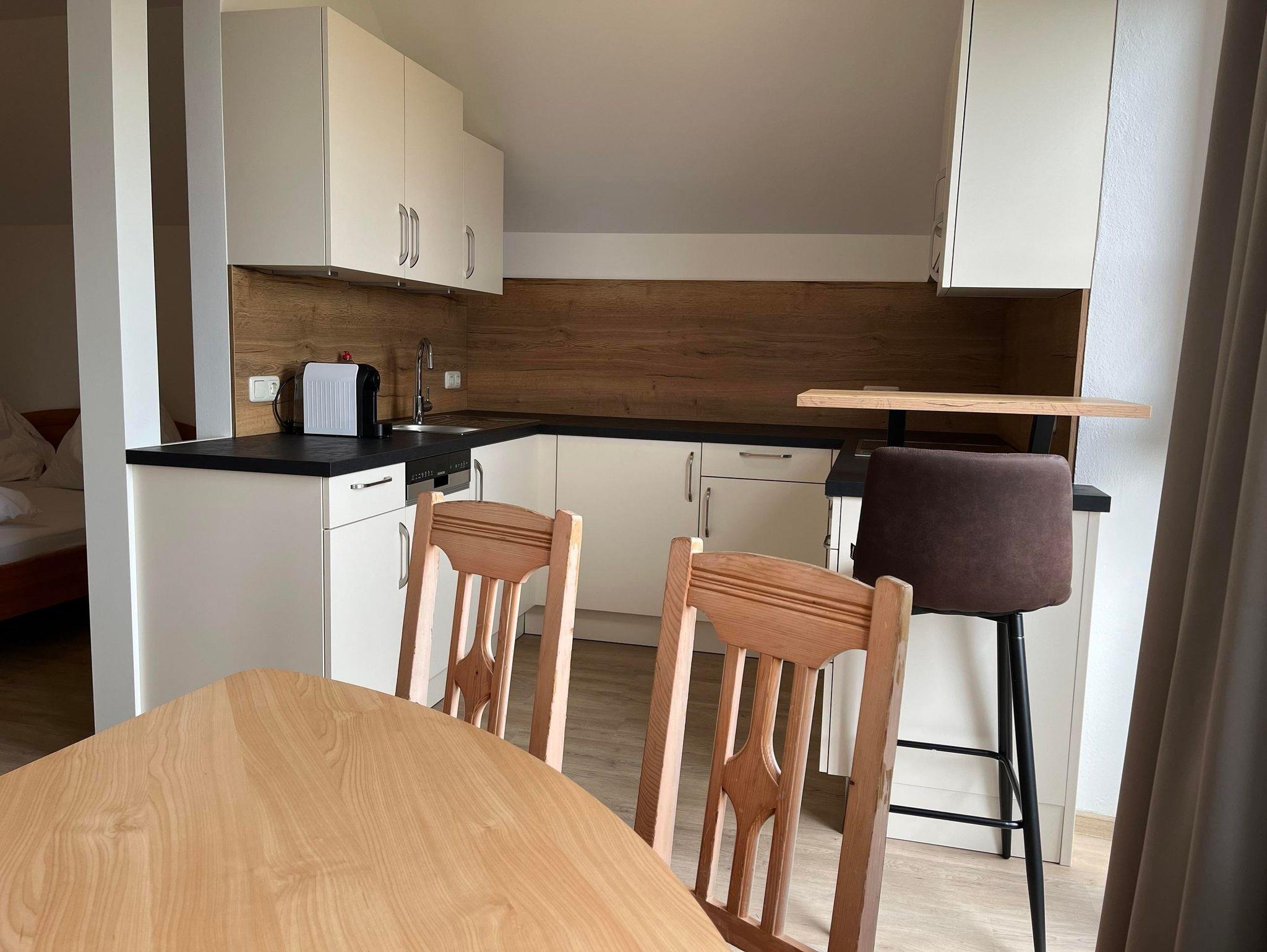 Neu! Studio-Apartment mit Balkon 41 m², Vorraum mit Garderobe, Wohn-und Schlafbereich mit TV, Küche, Esstisch, Dusche und WC getrennt, Badetücher, Haarfön
