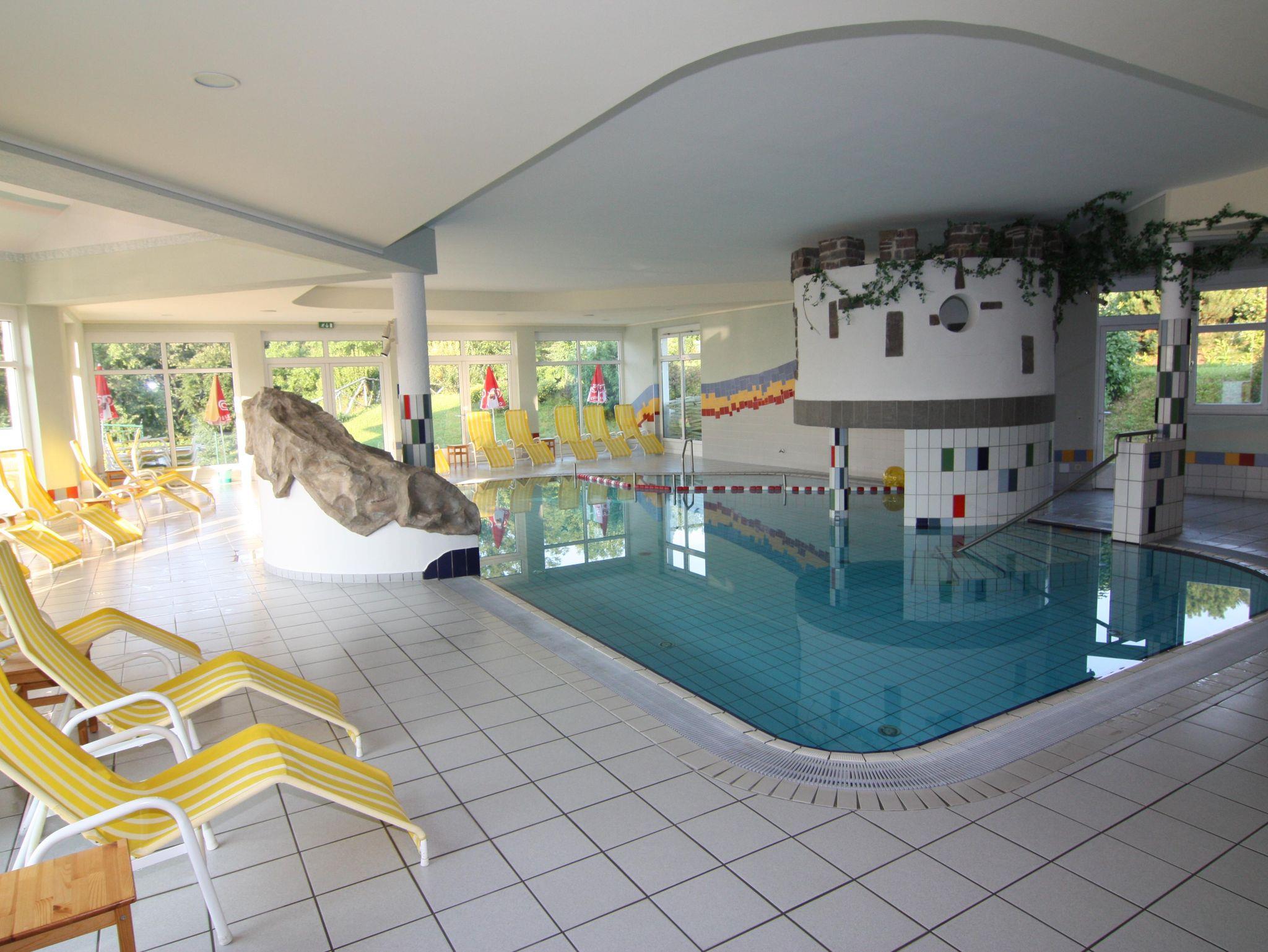 • Panorama-Hallenbad mit Relaxliegen und sonniger Panoramaterrasse.