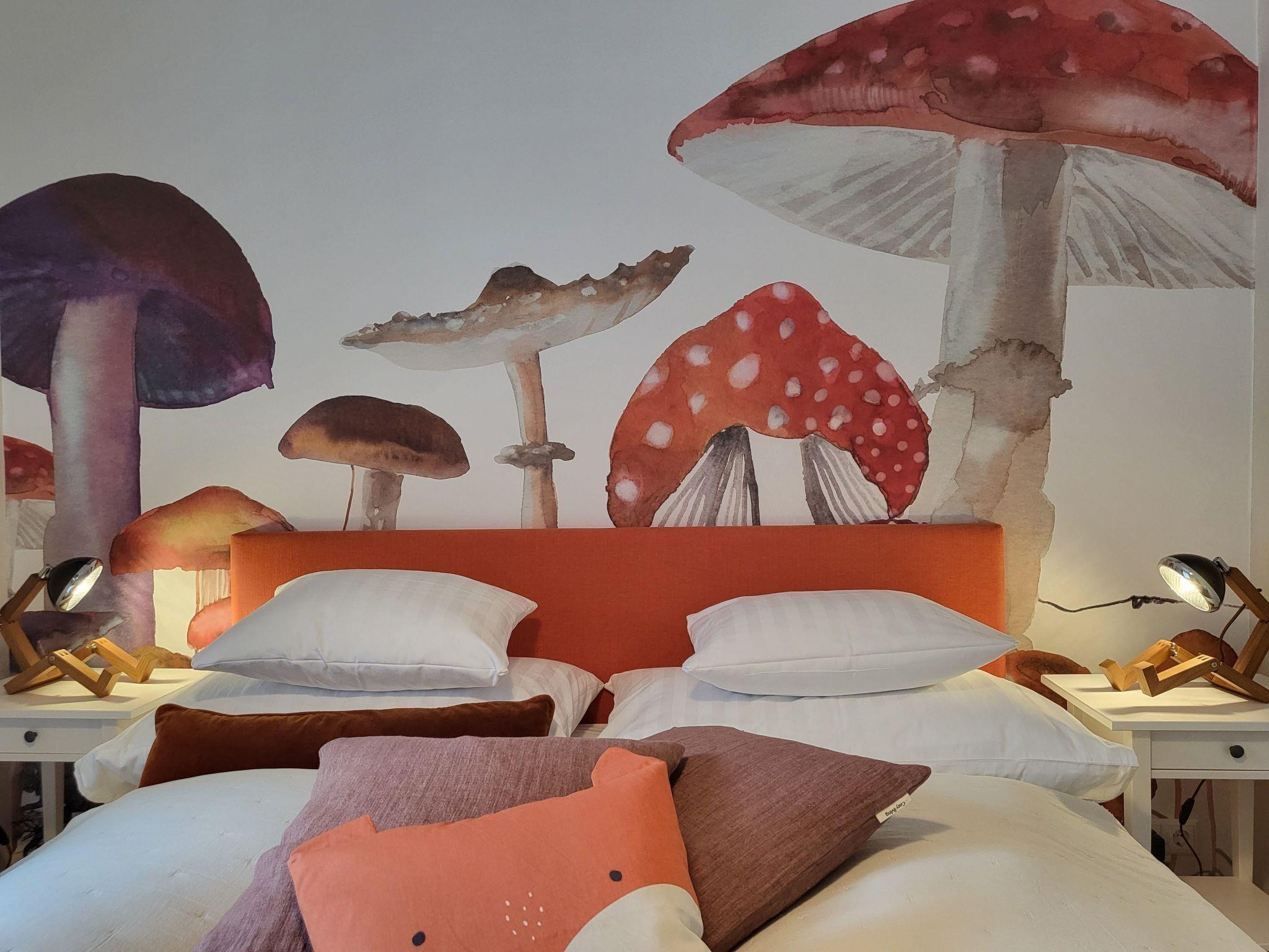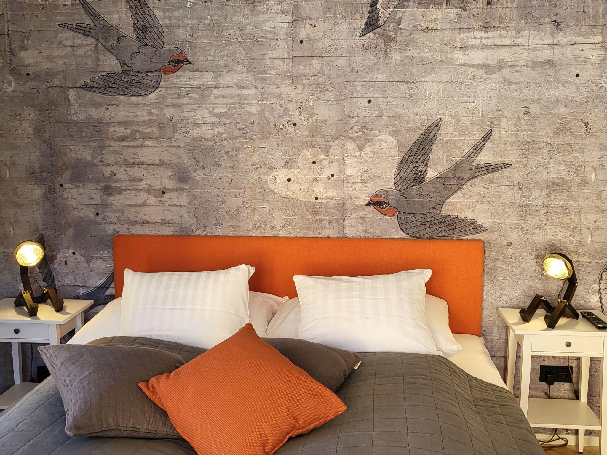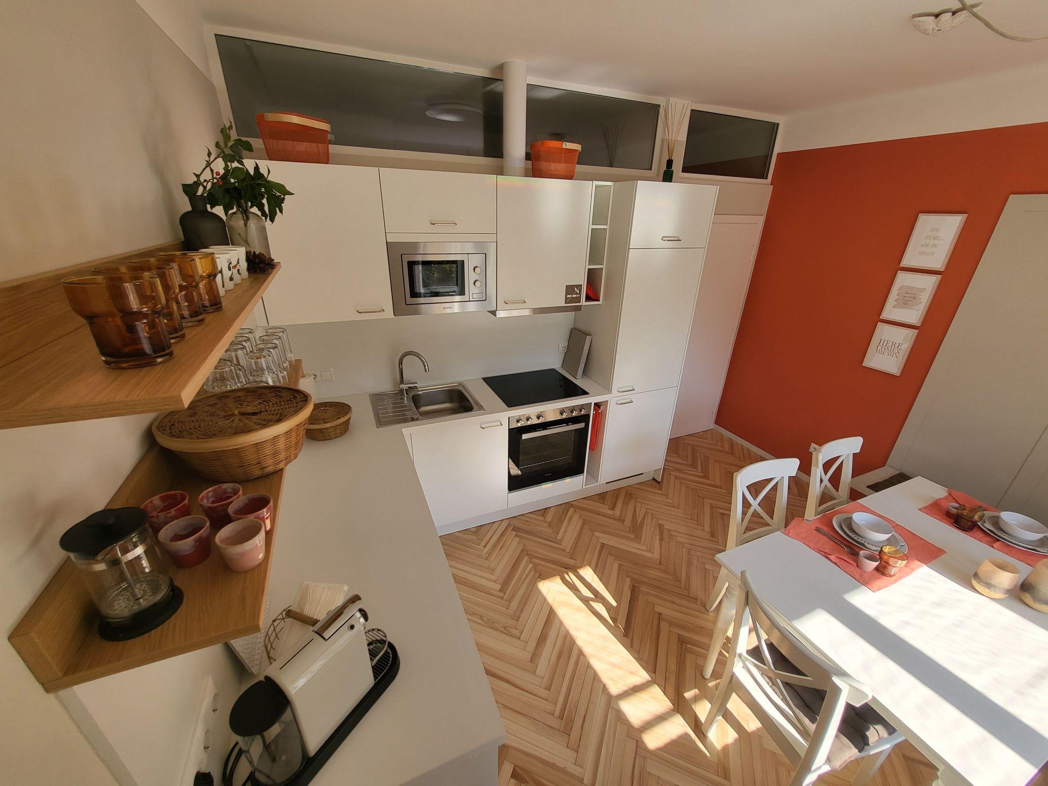 The fully equipped flat with impressive wallpaper, beautiful colours, fun lamps and a new bathroom will be a highlight of your visit to Graz. The perfectly equipped kitchen is also completely new and has a cosy seating area. Smart TV in two rooms and fast internet connect you to the world - nothing is missing. A wonderful flat for arriving, relaxing with lots of light and warmth - just orange.