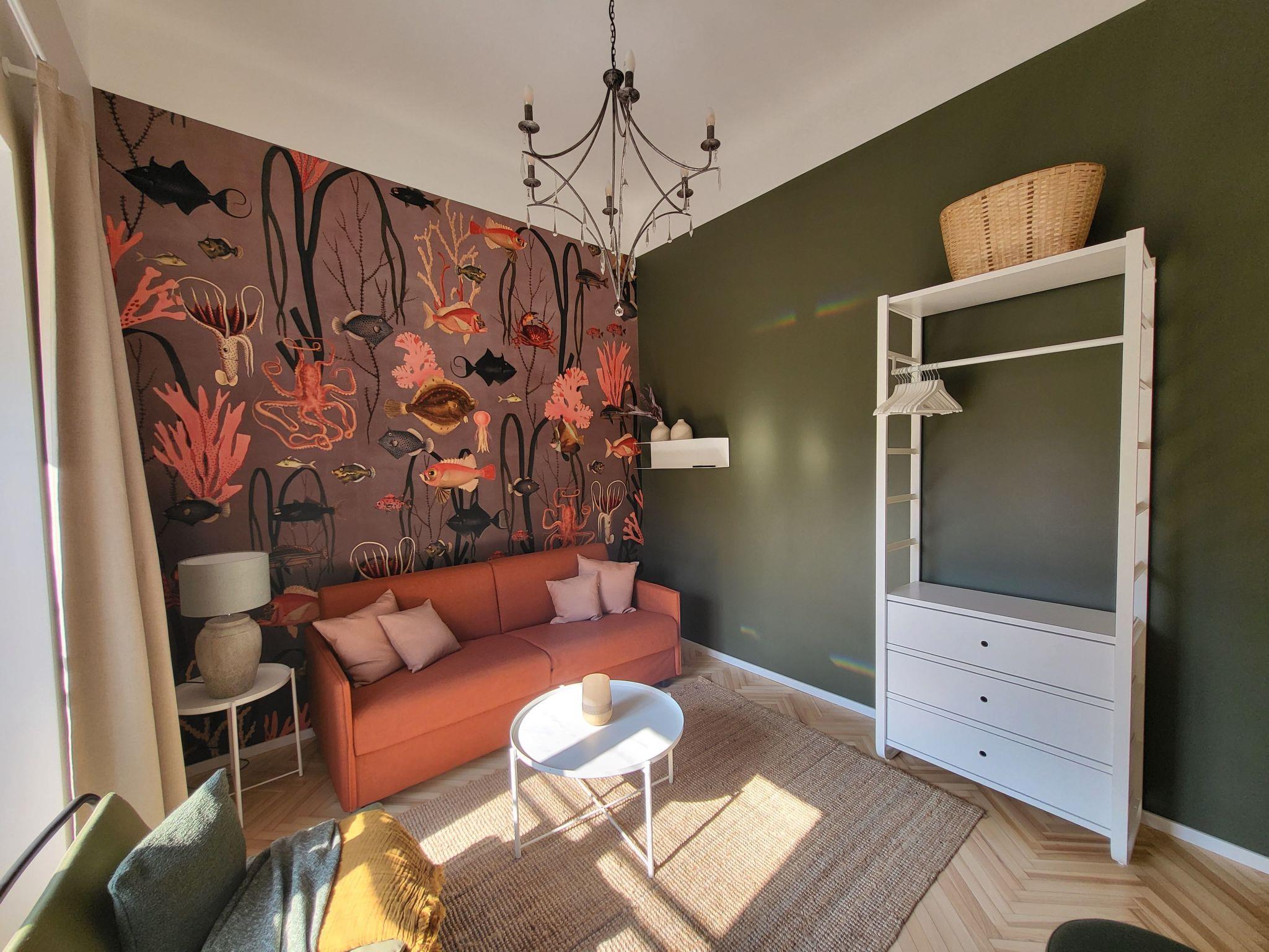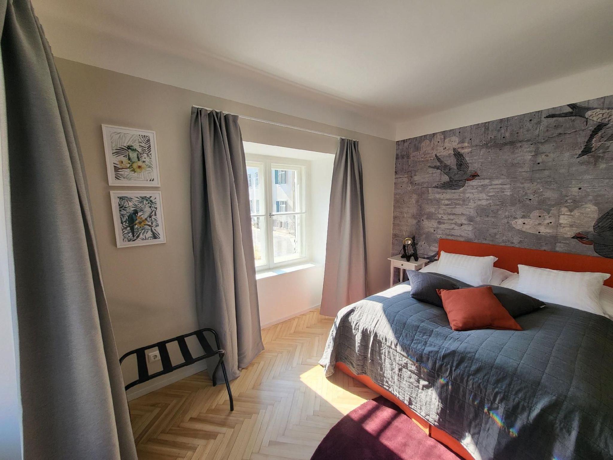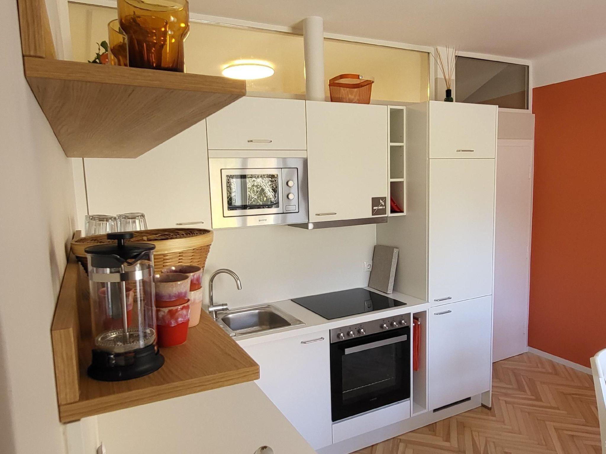 The fully equipped flat with impressive wallpaper, beautiful colours, fun lamps and a new bathroom will be a highlight of your visit to Graz. The perfectly equipped kitchen is also completely new and has a cosy seating area. Smart TV in two rooms and fast internet connect you to the world - nothing is missing. A wonderful flat for arriving, relaxing with lots of light and warmth - just orange.