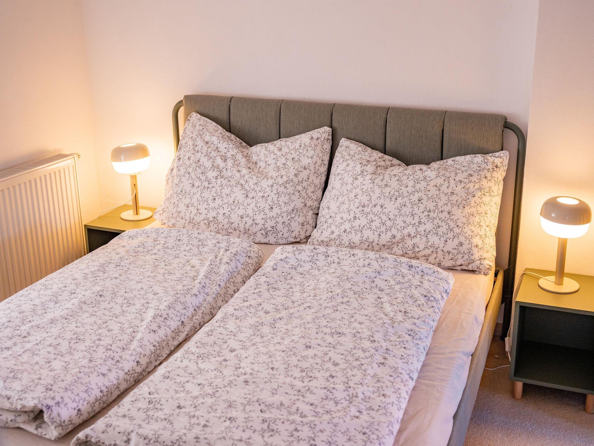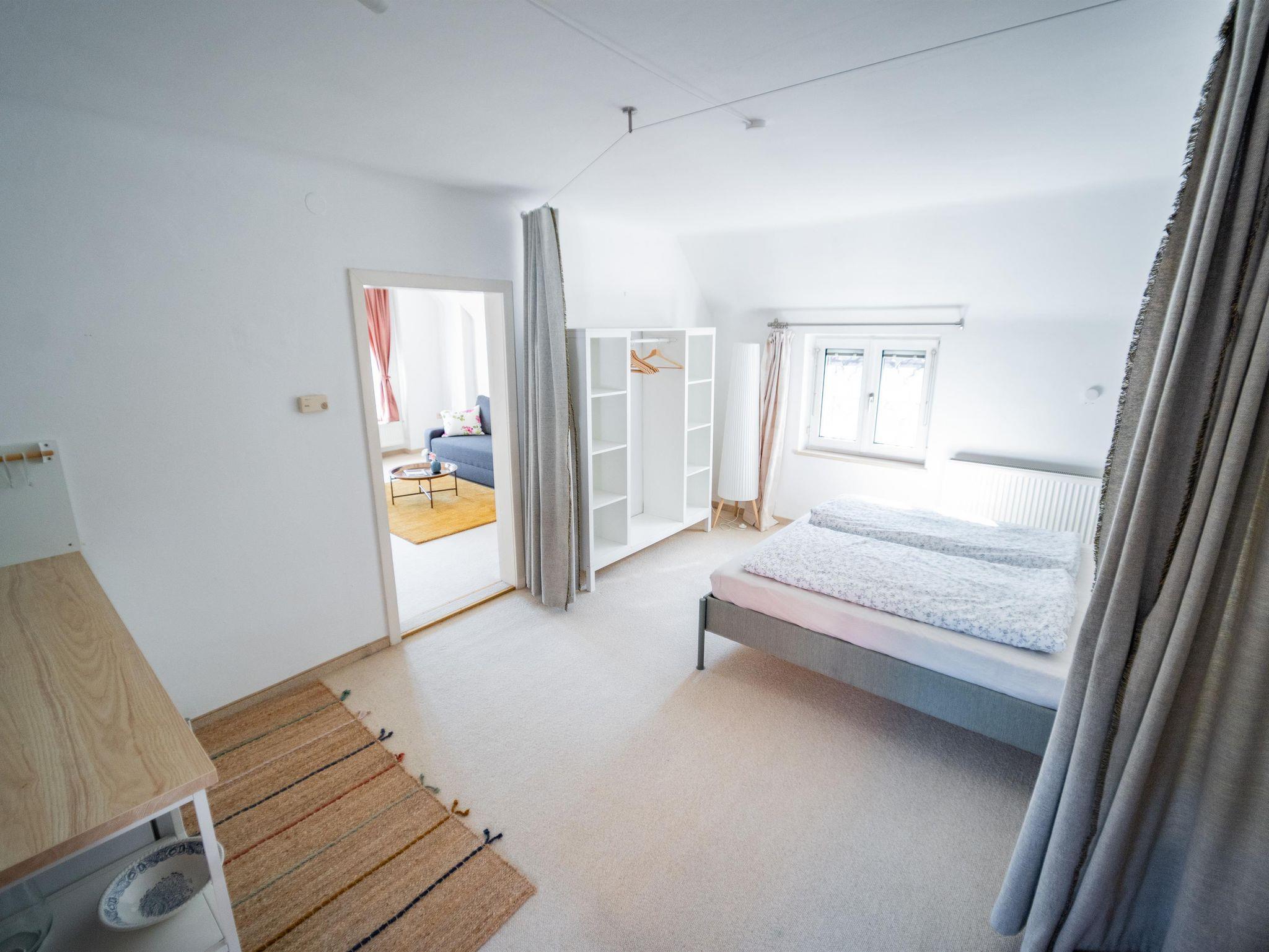 Die beiden Ferienwohnungen verfügen über ein geräumiges Badezimmer, eine praktische Küchenzeile und zwei separate Zimmer. Die zentrale Lage direkt am Donauradweg macht die Unterkunft ideal für Aktivurlauber und Kulturinteressierte.