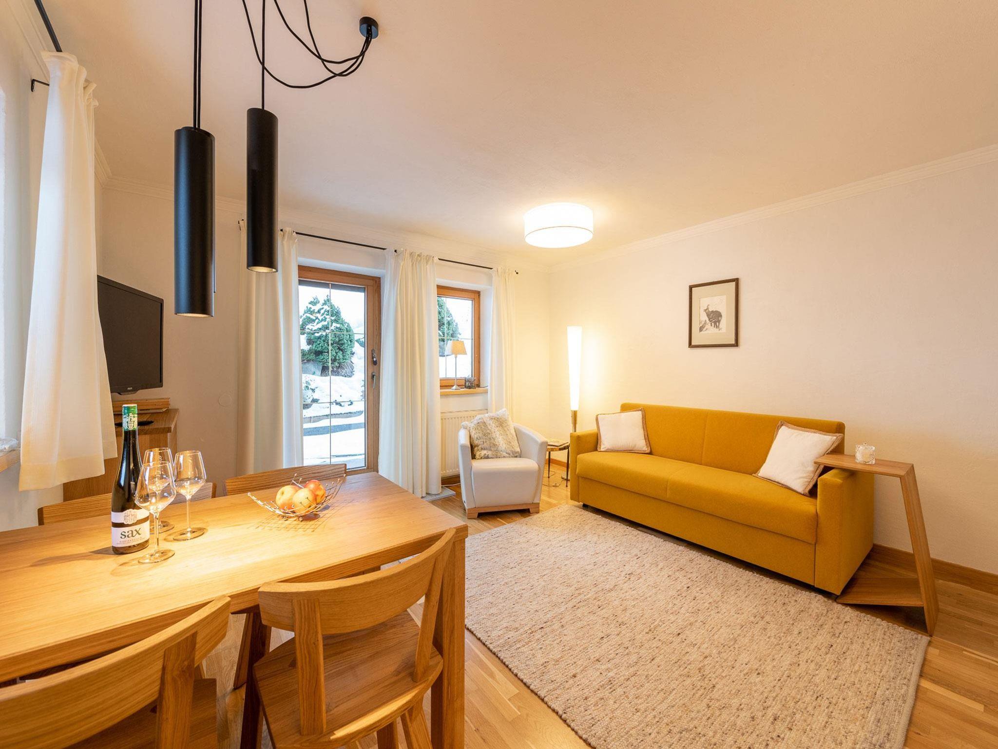 Das exklusive Bauernhaus verfügt über 3 Ferienwohnungen für bis zu 6 Personen, ausgestattet mit traditionellen Möbeln aus Zirbenholz.