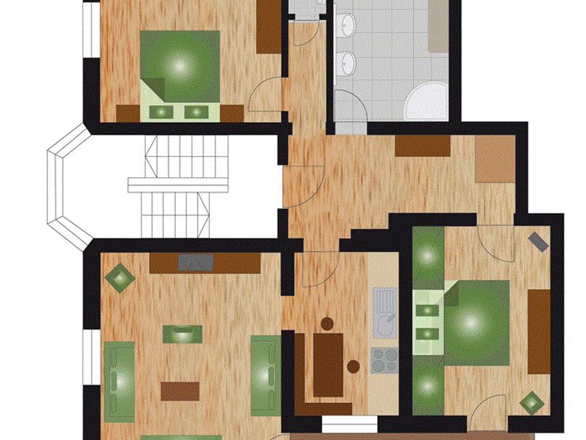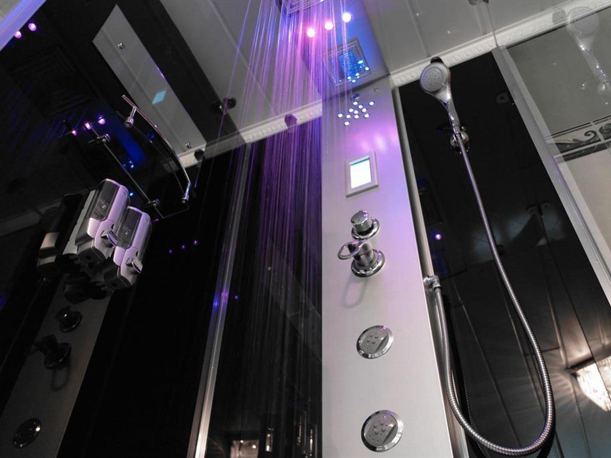 -SZ Doppel-2 Hochbetten SAT Balkon -SZ Boxspringbett Doppelcouch Balkon -Wohnküche -WZ Couchen SAT Balkon -Whirlpool, Dampfdusche, Waschmaschine, Doppelwaschbecken -Diele Infrarotkabine WC -3 WCs im Allgemeinbereich