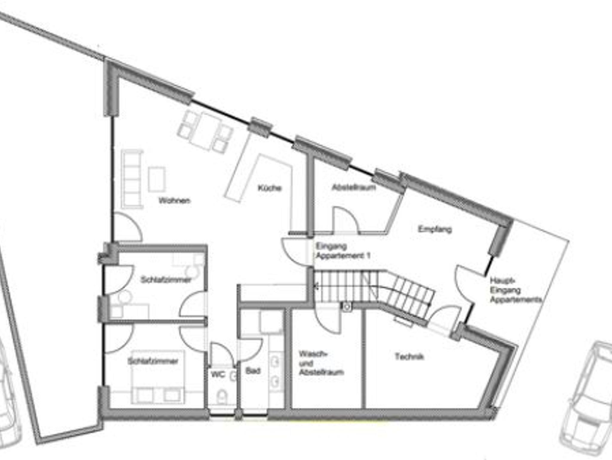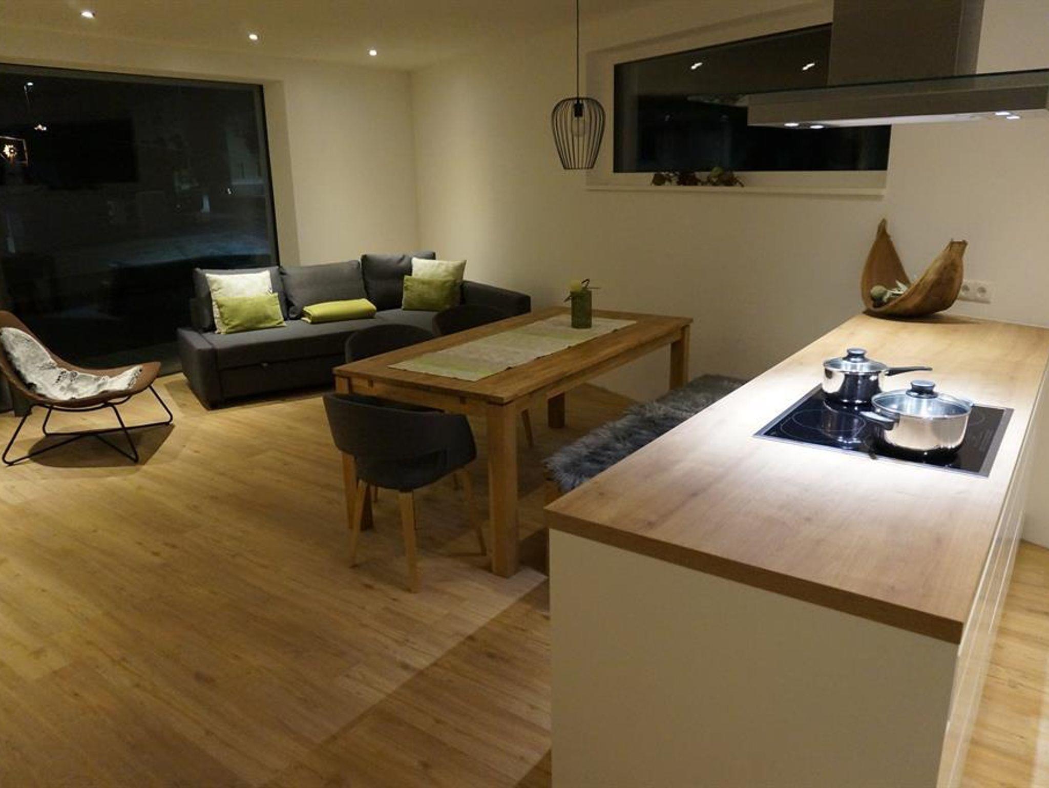 Das Appartement 1 (72m²) befindet sind im Erdgeschoss mit Garten und Terrasse – optimal für 2 – 4 Personen. Ausgestattet mit einer exklusiven Wohnküche und 2 separaten Schlafzimmern.