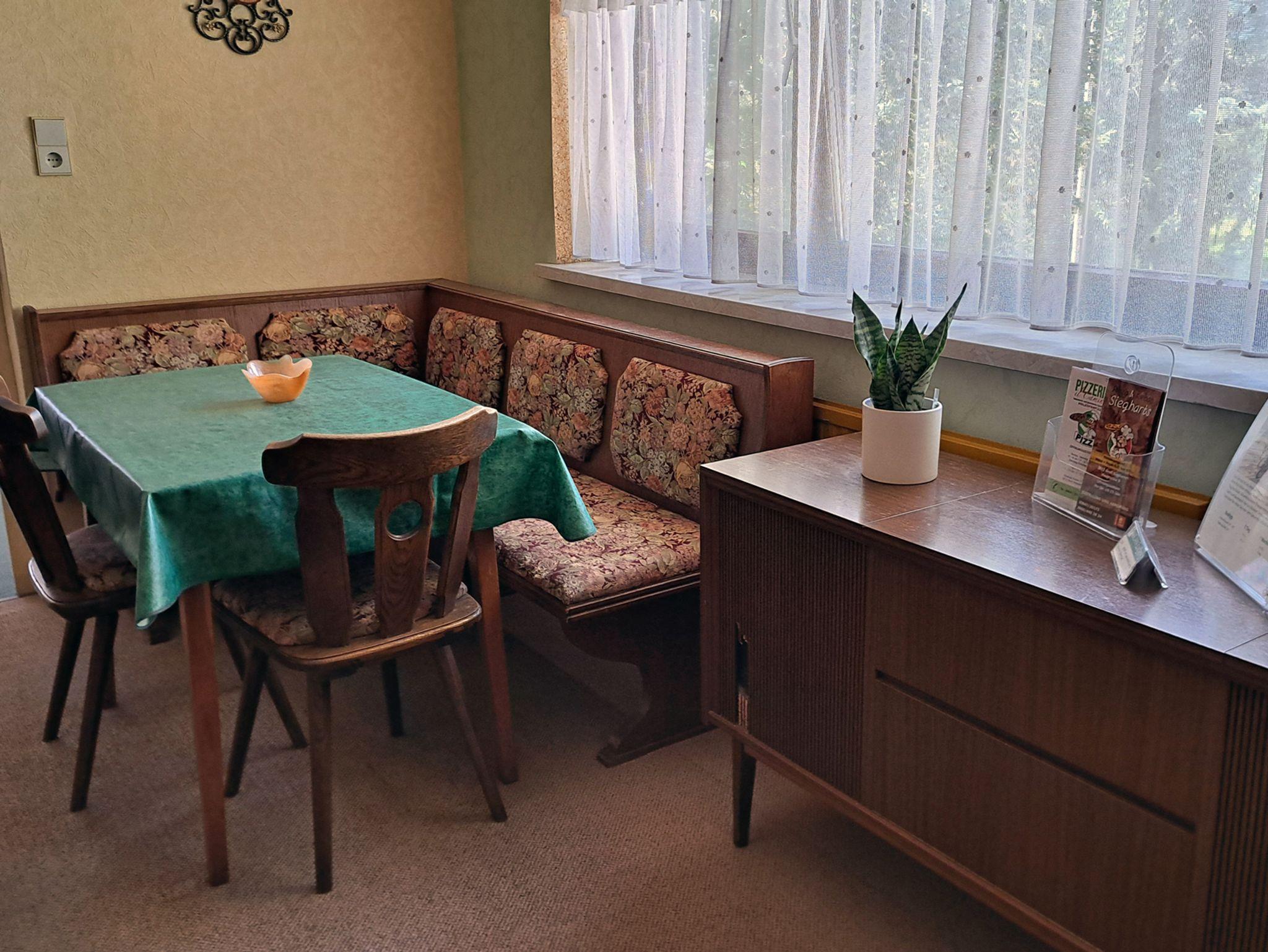 Unser familiäres Apartment liegt in Groß-Siegharts direkt am Radweg Thayarunde. Innerhalb 5 Gehminuten befinden Sie sich im Ortszentrum. Neben 6 Schlafzimmer gibt es eine vollwertig ausgestattete Küche mit einer Essecke. Im ersten Schlafzimmer befindet sich ein Einzelbett(1,20x1,90m) so wie ein Schreibtisch. Im zweiten Zimmer steht für Sie ein Doppelbett (1,80x2,00m) zur Verfügung. Das dritte Zimmer ist mit einem Einzelbettbett (0,90x1,90m) und einem Schreibtisch ausgestattet. Das vierte und größte Zimmer beherbergt ein Einzelbett (0,90x1,90m) und ein Doppelbett(1,80x1,90). Im fünften Zimmer steht für Sie ein Doppelbett (1,80x2,00m) und ein Sofa zur Verfügung. Das sechste Zimmer ist mit einem Doppelbett (1,80x2,00m) ausgestattet. Im Badezimmer befindet sich eine Dusche und eine Badewanne so wie eine Waschmaschine. Das WC ist extra und beides steht für das gesamte Apartment zur Verfügung. Internet können Sie per W-Lan in jedem Zimmer nutzen. Eine große Terrasse mit Glasüberdachung ladet zum entspannen an der Frischen Luft ein.