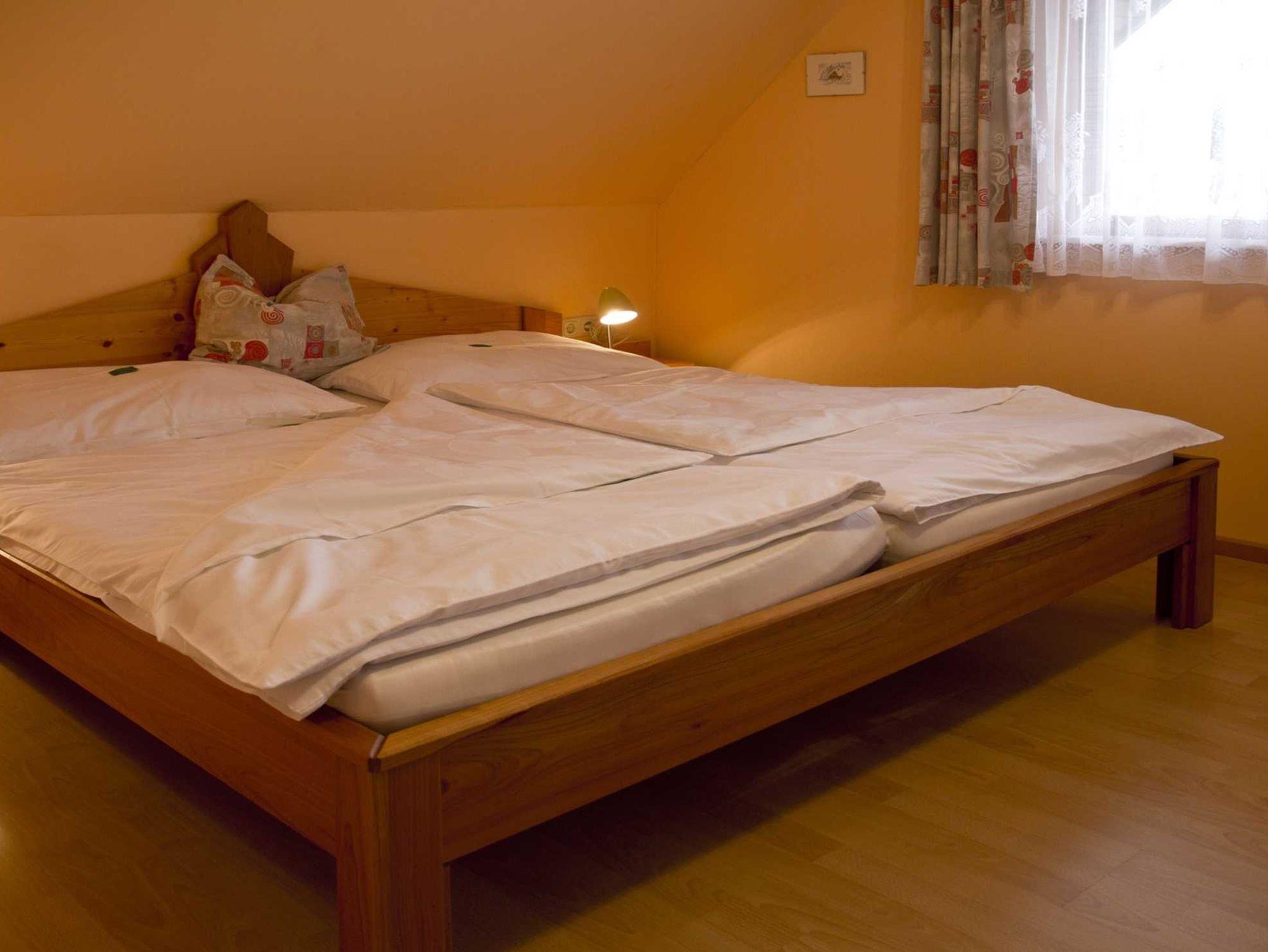 Ferienwohnung mit Wohnküche, Badezimmer, ein Doppelzimmer und ein Zimmer mit zwei Einzelbetten. Gitterbett bzw. ausziehbare Couch wären ebenfalls vorhanden. Großer Aufenthaltsraum im Erdgeschoss. Carport für Auto steht zur Verfügung.