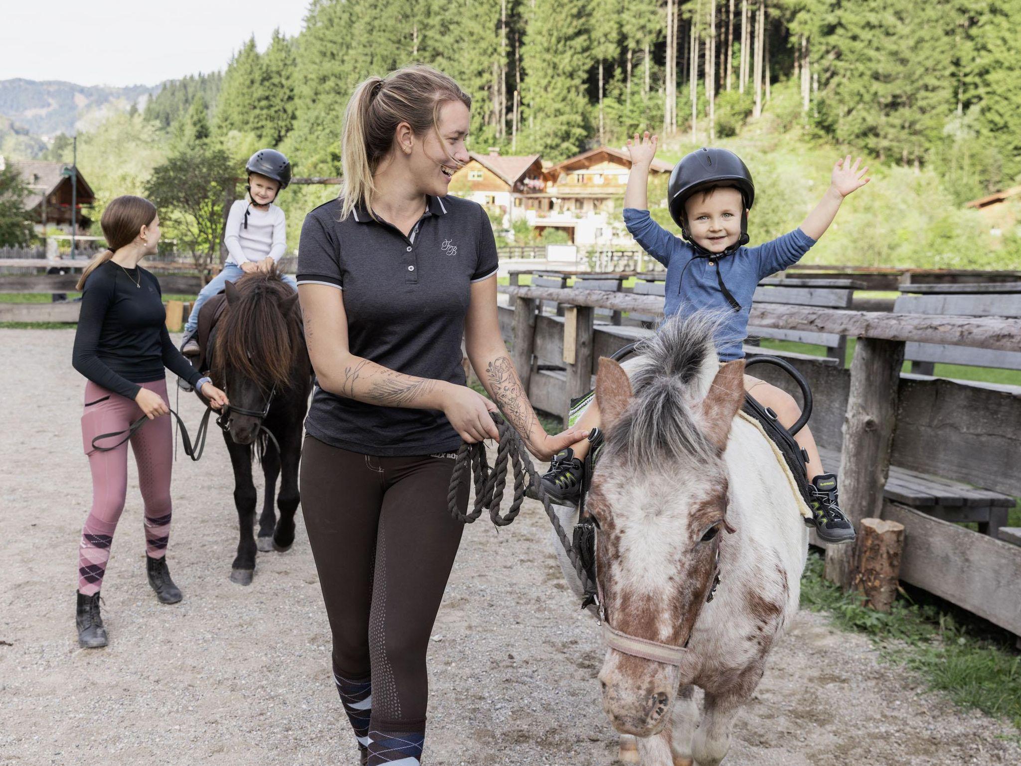 Ein Feriendorf und viele Abenteuer für die ganze Familie: Mithelfen am Bauernhof, Streichelzoo, mehrmal in der Woche kostenloses Reiten, Fußballplatz, Ponys, Spielplatz, Go-Karts und mitten drin im Wanderparadies Großarltal. Das lässt Kinderherzen höher schlagen.