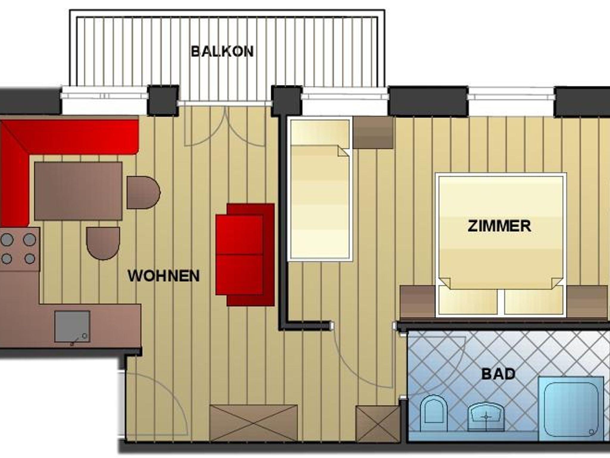 Das Appartement Nest hat 1 Schlafzimmer, 1 Badezimmer und 1 Wohnküche, wo eine Couch mit Federkernqualität ausgzogen werden kann. Die Küche ist komplett mit Backrohr, E-Herd mit Cerankochfeld, Geschirrspüler, Wasserkocher, Kaffeemaschine und Kühlschrank mit Gefrierschrank ausgestattet.