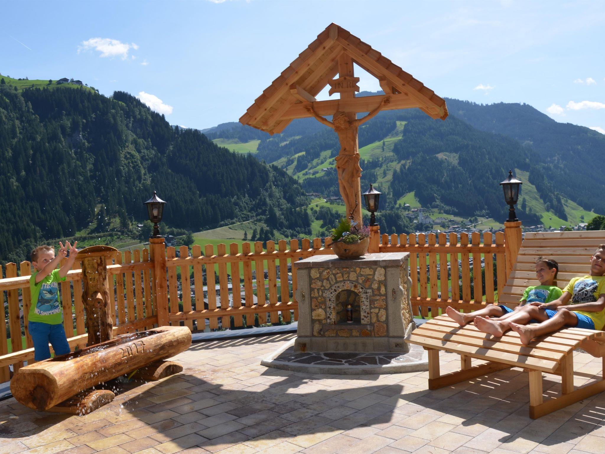 Unser Appartementhaus befindet sich direkt an der Skipiste auf einer kleinen Anhöhe mit herrlichem Panoramablick auf Großarl.