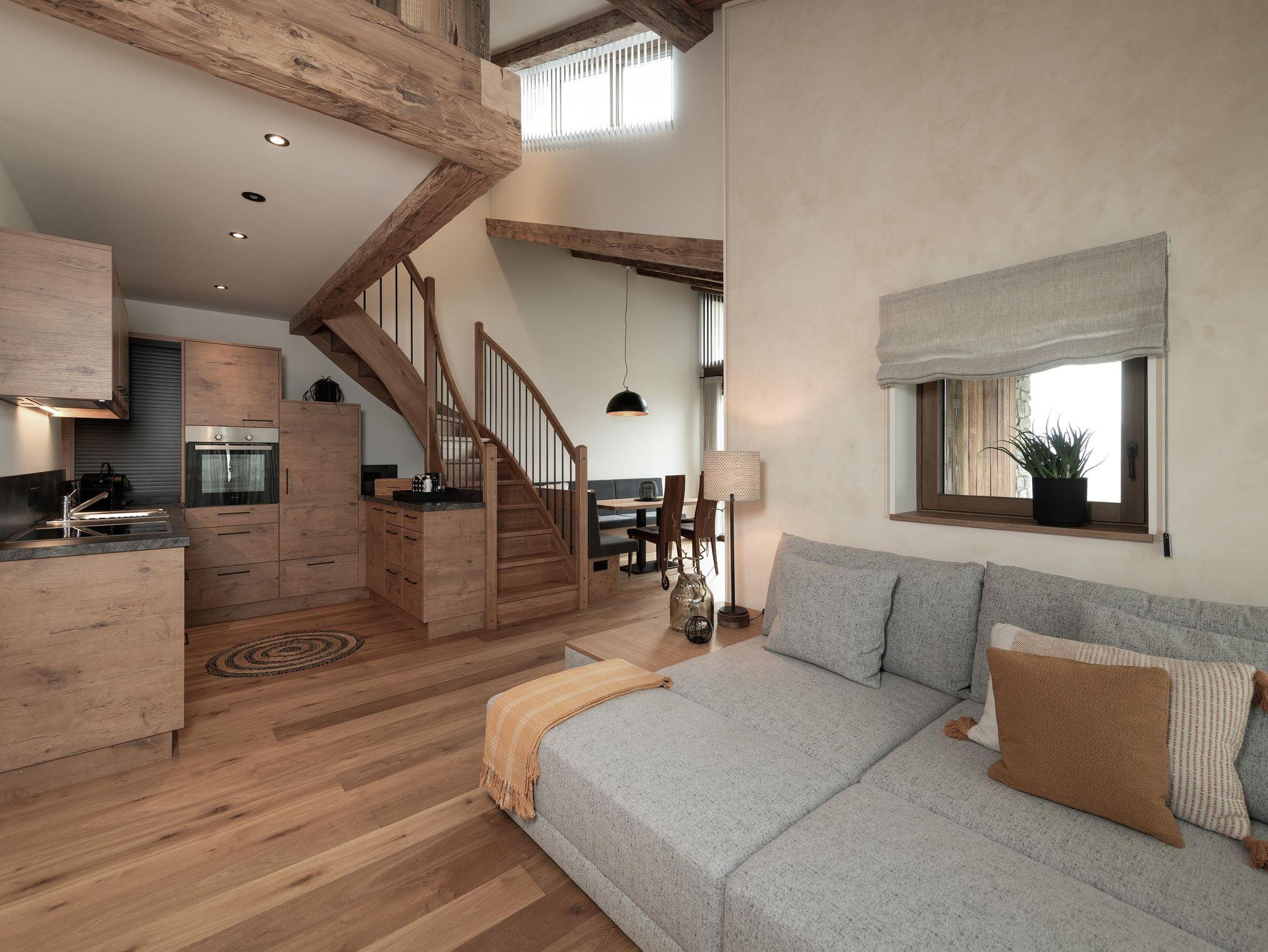 Willkommen in der Loft Mia, Deinem perfekten Rückzugsort für einen erholsamen Aufenthalt. Das 75 m² Apartment befindet sich 2. Stock und bietet 1 Doppelzimmer, einen gemütlichen, modernen Wohnbereich (mit Doppelschlafcouch) aus hochwertigen, heimischen Holz inklusive Küche und Flat-TV sowie Galerie (Doppelschlafcouch). Das Bad verfügt über Dusche und WC. Genieße den Komfort einer eigenen Unterkunft und entspanne in ruhiger Umgebung. Der Balkon hat wunderbaren Ausblick.