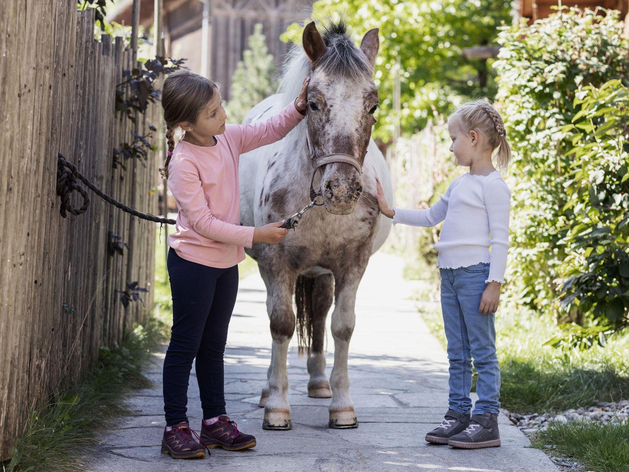 Wir haben auch besondere Angebote für unsere kleinen Gäste. Mehrmal in der Woche können die Kinder auf unseren Ponys reiten und zusätzlich befindet sich vor dem Haus ein großzügiger Kinderspielplatz.