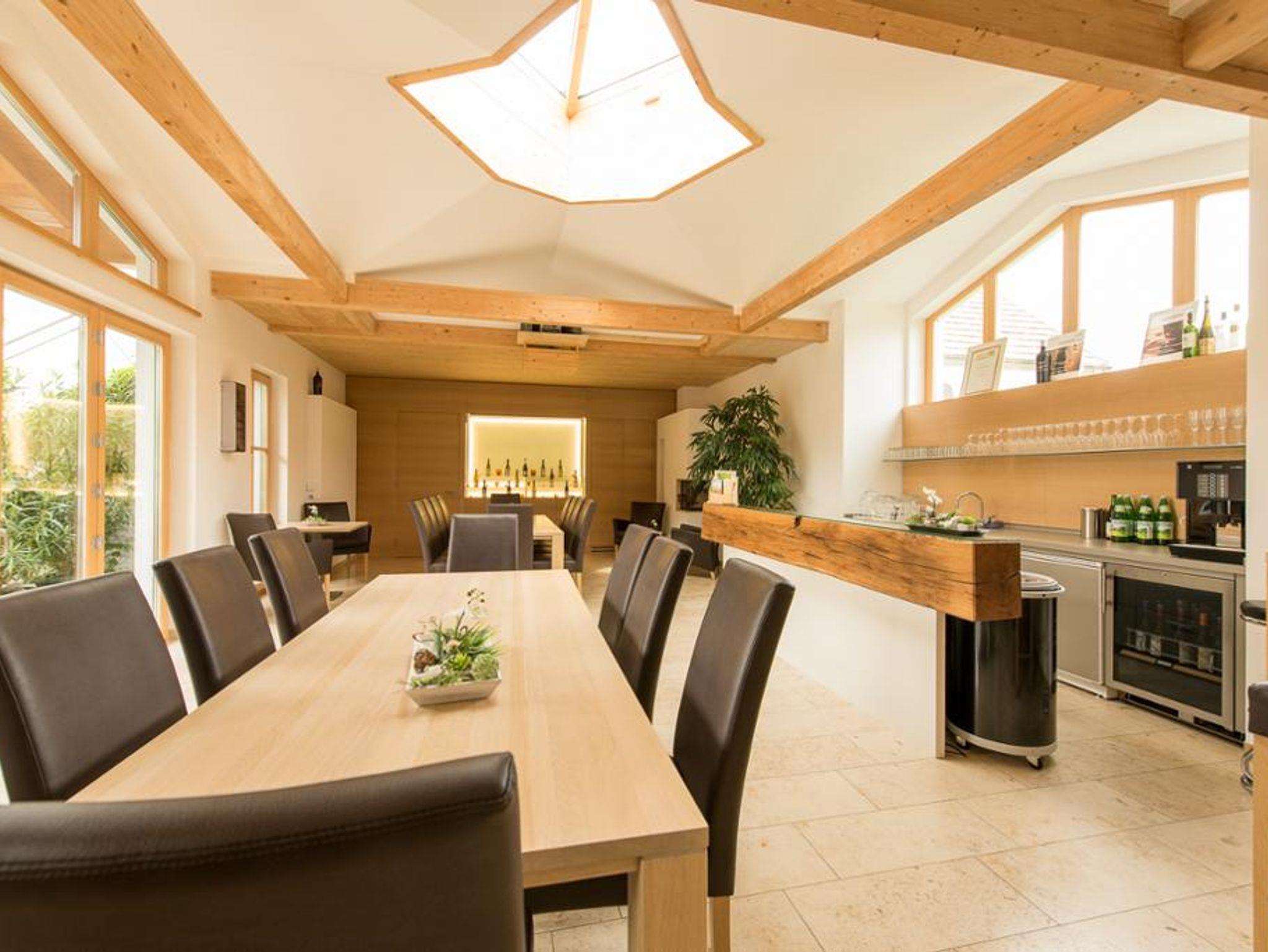 Der Verkostungsraum, in dem erlesene Weine, Edelbrände und alkoholfreie Getränke angeboten werden, verwandelt sich morgens in einen Frühstücksraum, in dem regionale Köstlichkeiten serviert werden. Die Umgebung lädt zu Erkundungstouren zu Fuß oder mit dem Fahrrad ein, mit gut ausgeschilderten Wegen durch malerische Weingärten. E-Bikes können für längere oder anspruchsvolle Radtouren ausgeliehen werden. Ob als Zwischenstopp oder für einen längeren Aufenthalt, um den Wagram oder die nahegelegenen Städte Tulln und Krems zu besuchen, das Gästehaus der Familie Bauer ist ein einladendes Ziel. Das Weingut ist auch für seine edelsten Weine bekannt, insbesondere den Blauen Burgunder Eiswein und den Grünen Veltliner Eiswein. Eine kommentierte Weinverkostung mit Jausenbuffet kann für Gruppen ab acht Personen arrangiert werden.