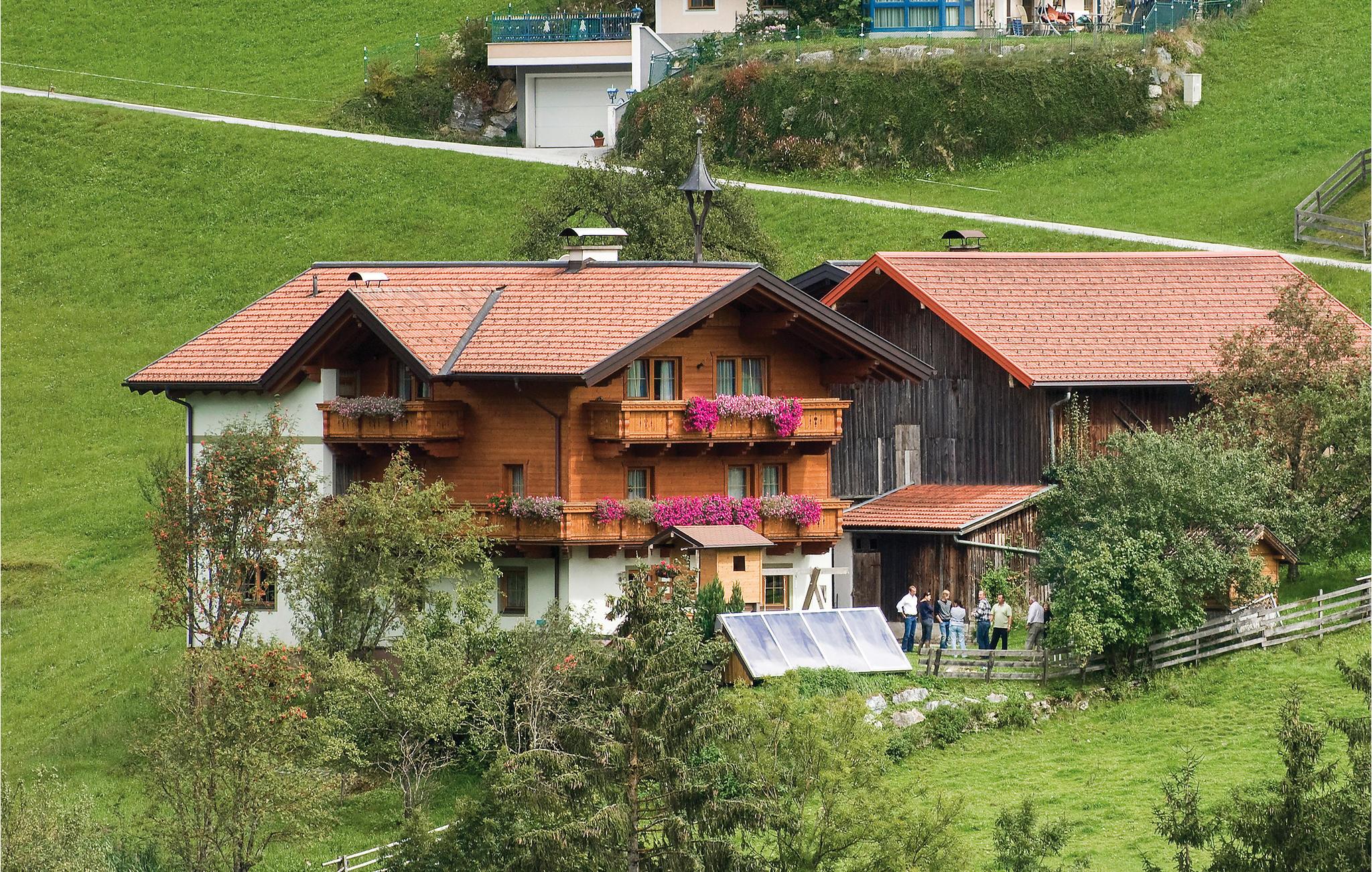 I begyndelsen af Großarltal ligger denne bondegård smukt placeret i det grønne landskab. På 2. etage finder I denne ferielejlighed, der er indrettet med store, lyse rum og pænt møblement. Fra balkonen mod syd har I et pragtfuldt syn til bjergområdet. I huset forefindes en sauna, der er gratis til rådighed for gæsterne to gange om ugen. Hvis I ønsker det, kan I mod forespørgsel leje yderligere to dobbeltværelser med badeværelse og toilet på samme etage, så I har hele anden sal for jer selv. Ved huset findes en god legeplads. Tag hele familien med på en vandretur til de smukt beliggende sætere, flere steder ligger en lille hytte hvor I kan få serveret en traditionel 'Brettljausen' (et lille mellemmåltid bestående af f.eks. brød, skinke, ost, tomat). Morgenmadsbestilling muligt. Vaskemaskine/tørretumbler mod betaling.