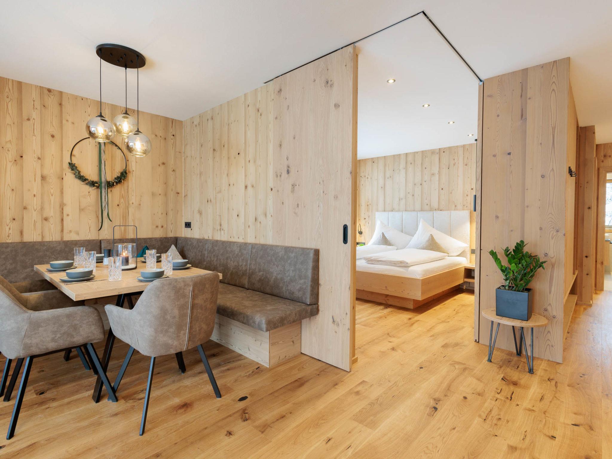 "Mountain Suite Nr 201", 3-room apartment 73 m2 on 1st floor. Tasteful and wooden furniture furnishings: living/dining room with 1 double sofabed, dining nook, kitchen corner, satellite TV and international TV channels (flat screen). Exit to the balcony. 1 double bedroom with shower. Exit to the balcony. 1 room with 1 bed and 1 double bed. Open kitchen (oven, 4 ceramic glass hob hotplates, toaster, kettle, microwave, electric coffee machine, Capsules for coffee machine (Nespresso) extra). Shower/WC, sep. WC. Underfloor heating. Wooden floors. 2 balconies. Balcony furniture. Very beautiful panoramic view of the mountains and the resort. Facilities: safe, hair dryer. Internet (WiFi, free). Garage (1 car). E-charging station. Please note: non-smokers only. 50411-008165-2024